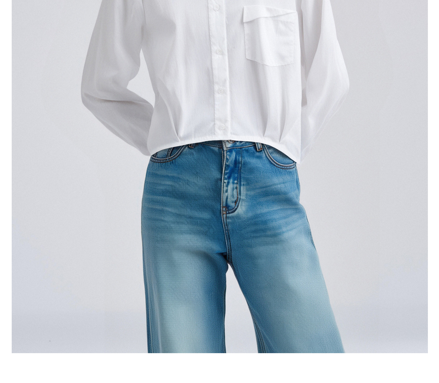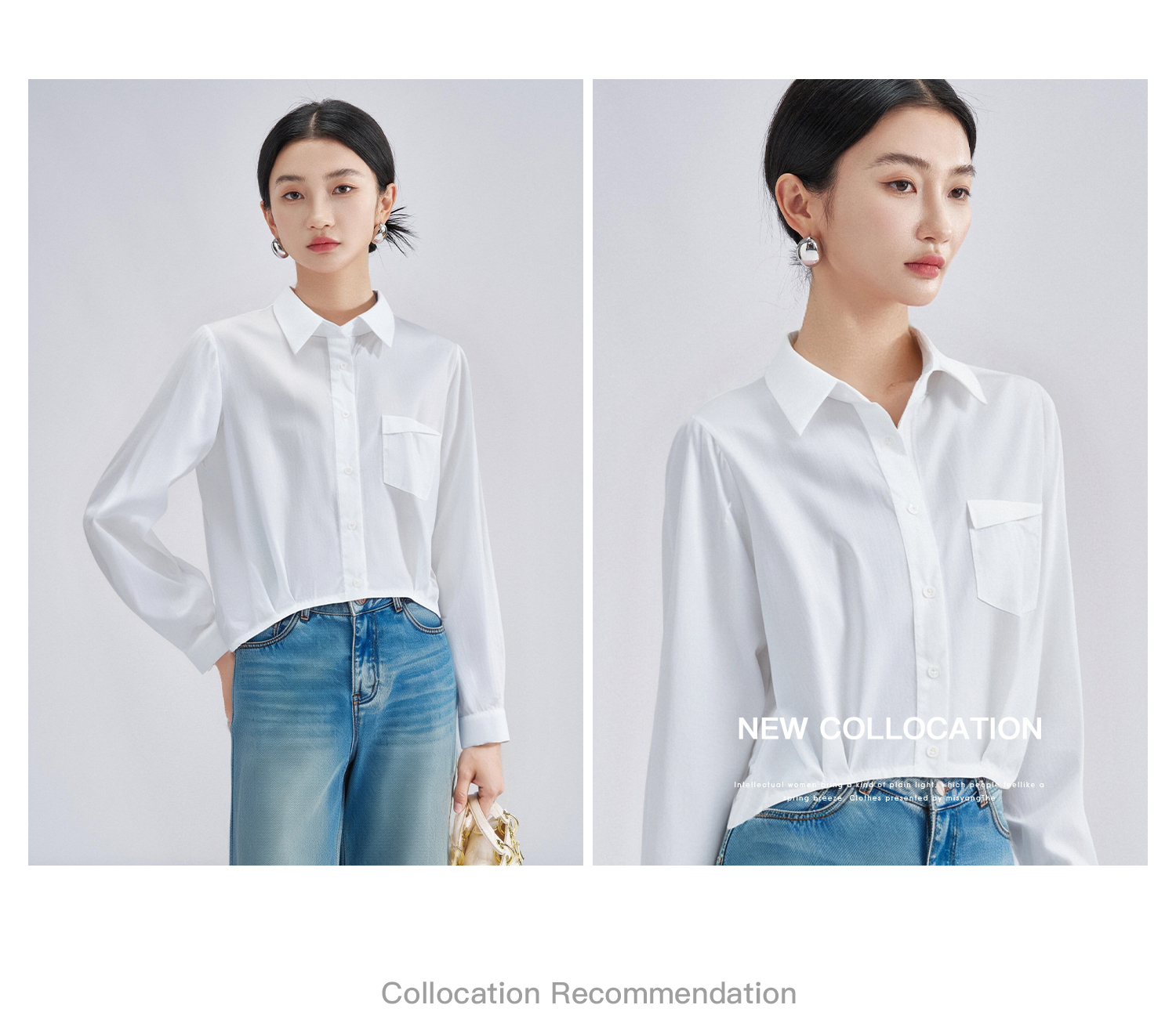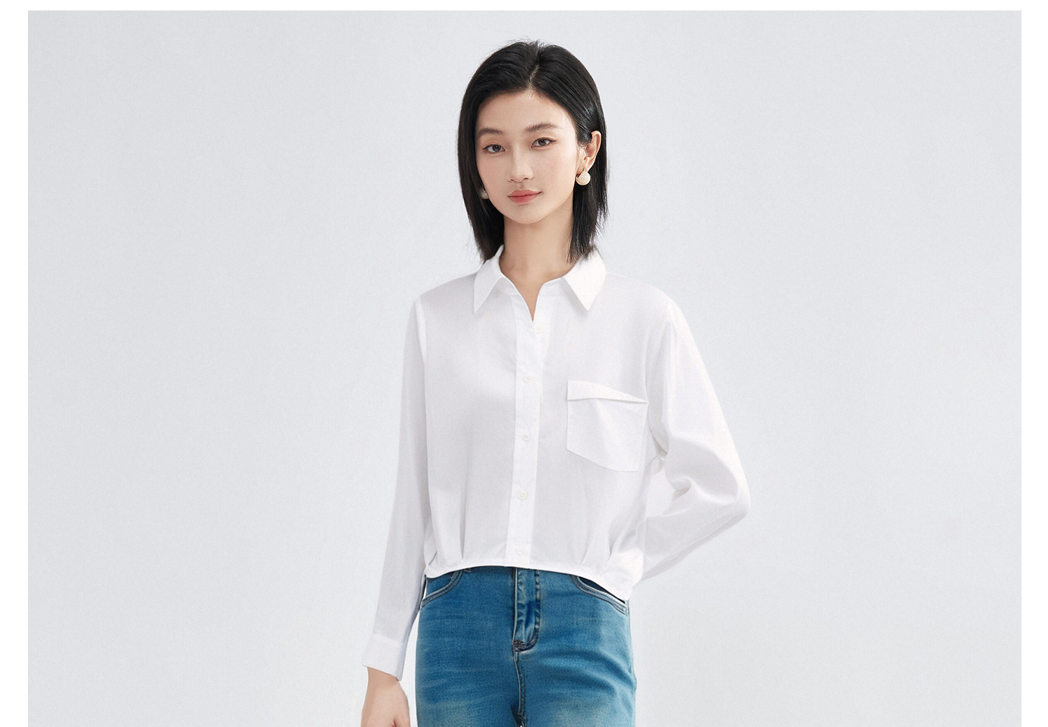 剩L/XL 米思阳2026春季气质白衬衫口袋装饰短款休闲百搭透气棉衬衣女4304