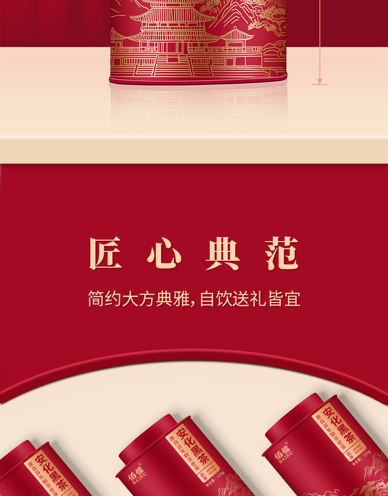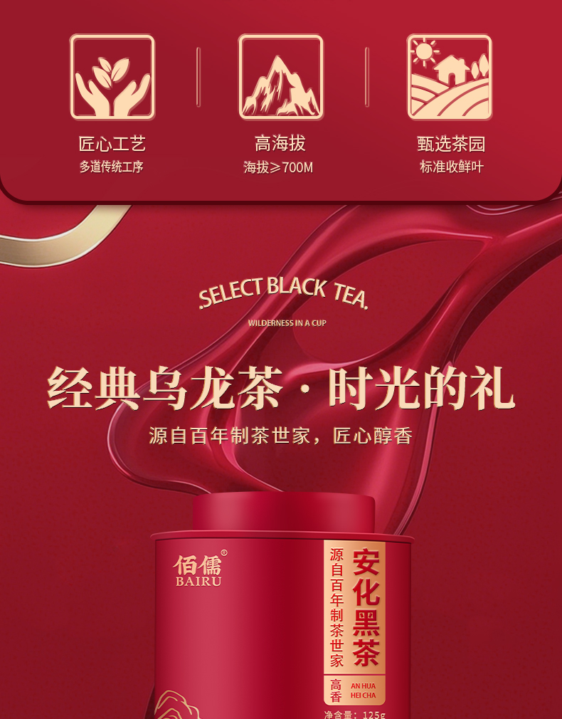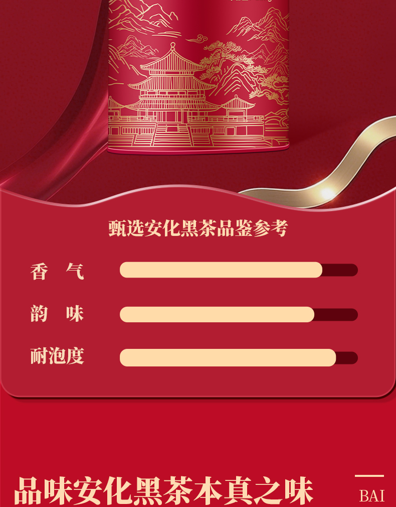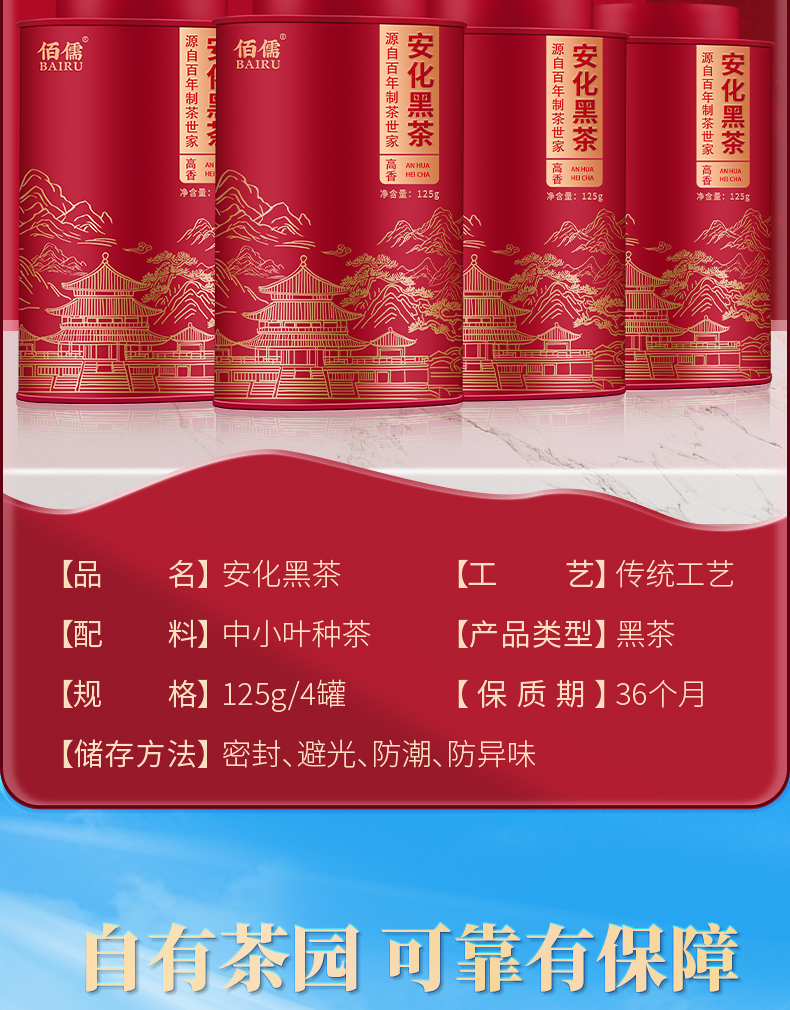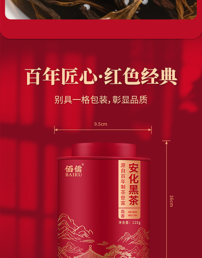 佰儒 黑茶安化黑茶金花茯茶陈香熟茶茶叶口粮茶罐装茶叶500g