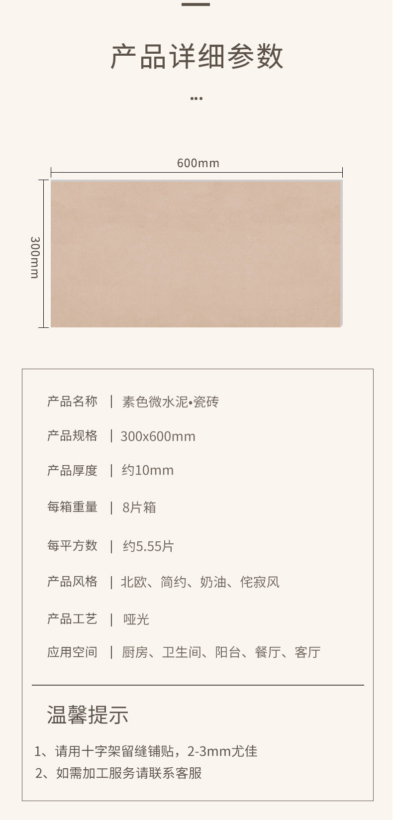 素色厨卫哑光侘寂风瓷砖水泥墙砖阳台通体微奶油300x600地砖 商品图4