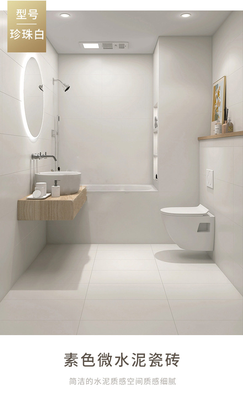 素色厨卫哑光侘寂风瓷砖水泥墙砖阳台通体微奶油300x600地砖 商品图1