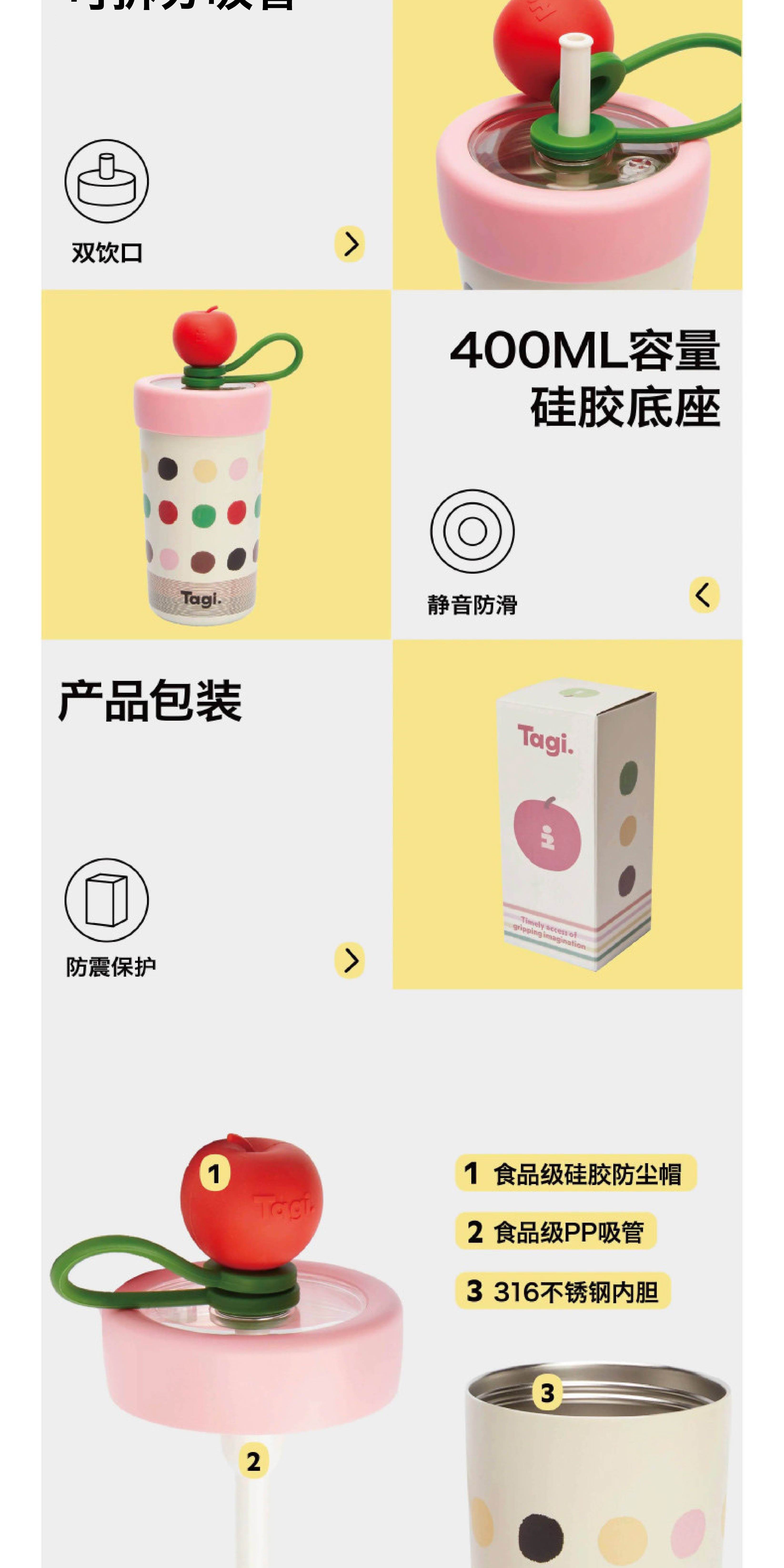 Tagi 想象苹果保温保冷杯 大容量吸管不锈钢保冷杯水杯