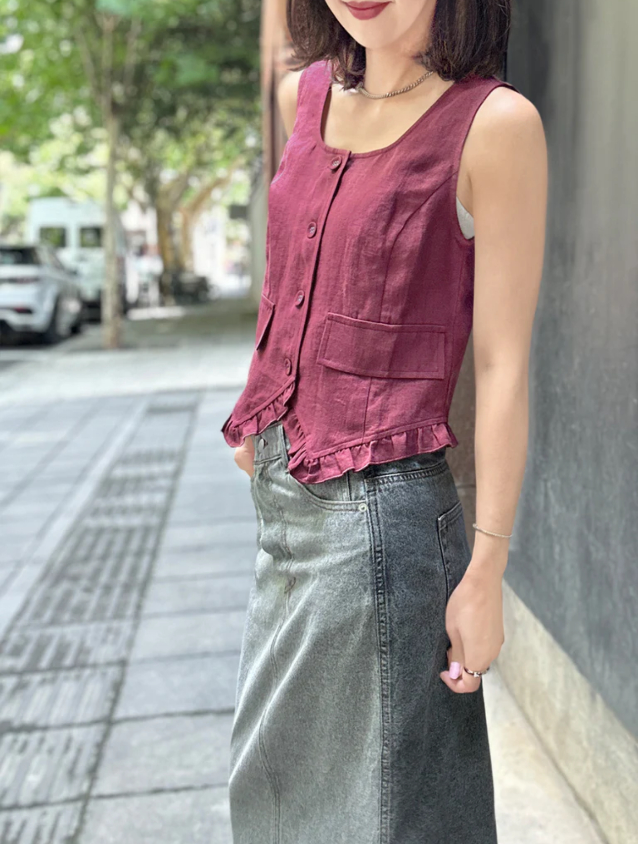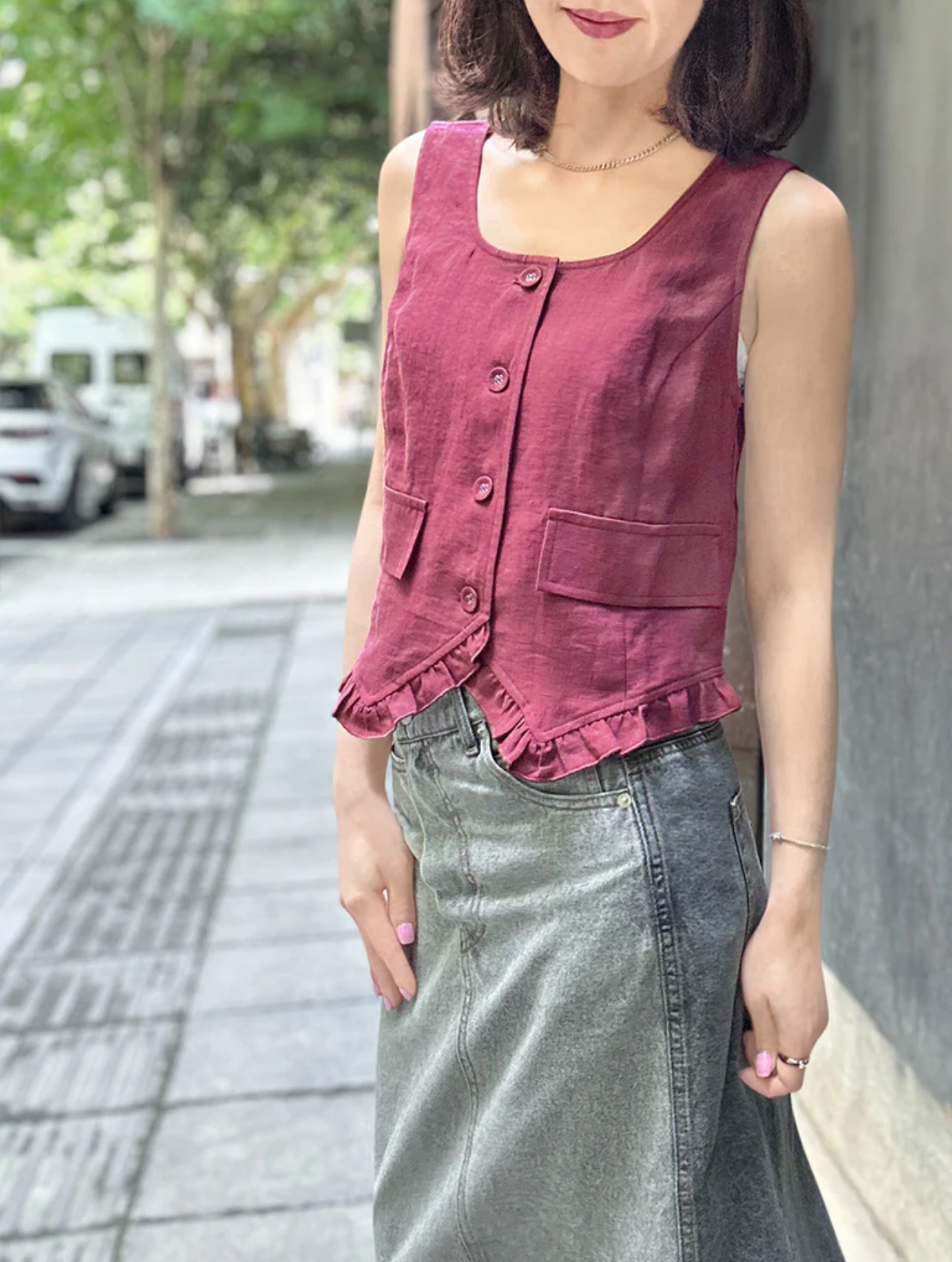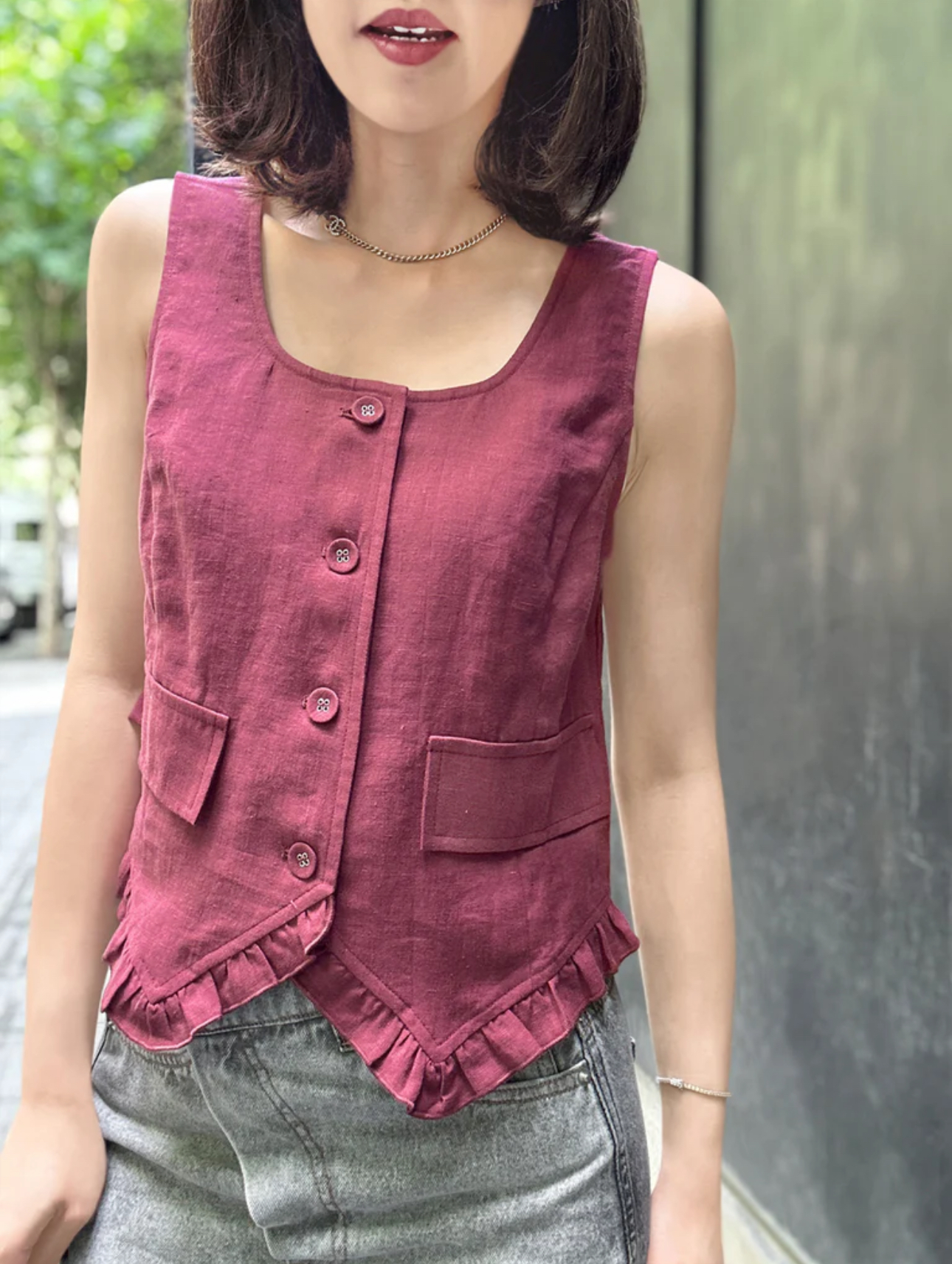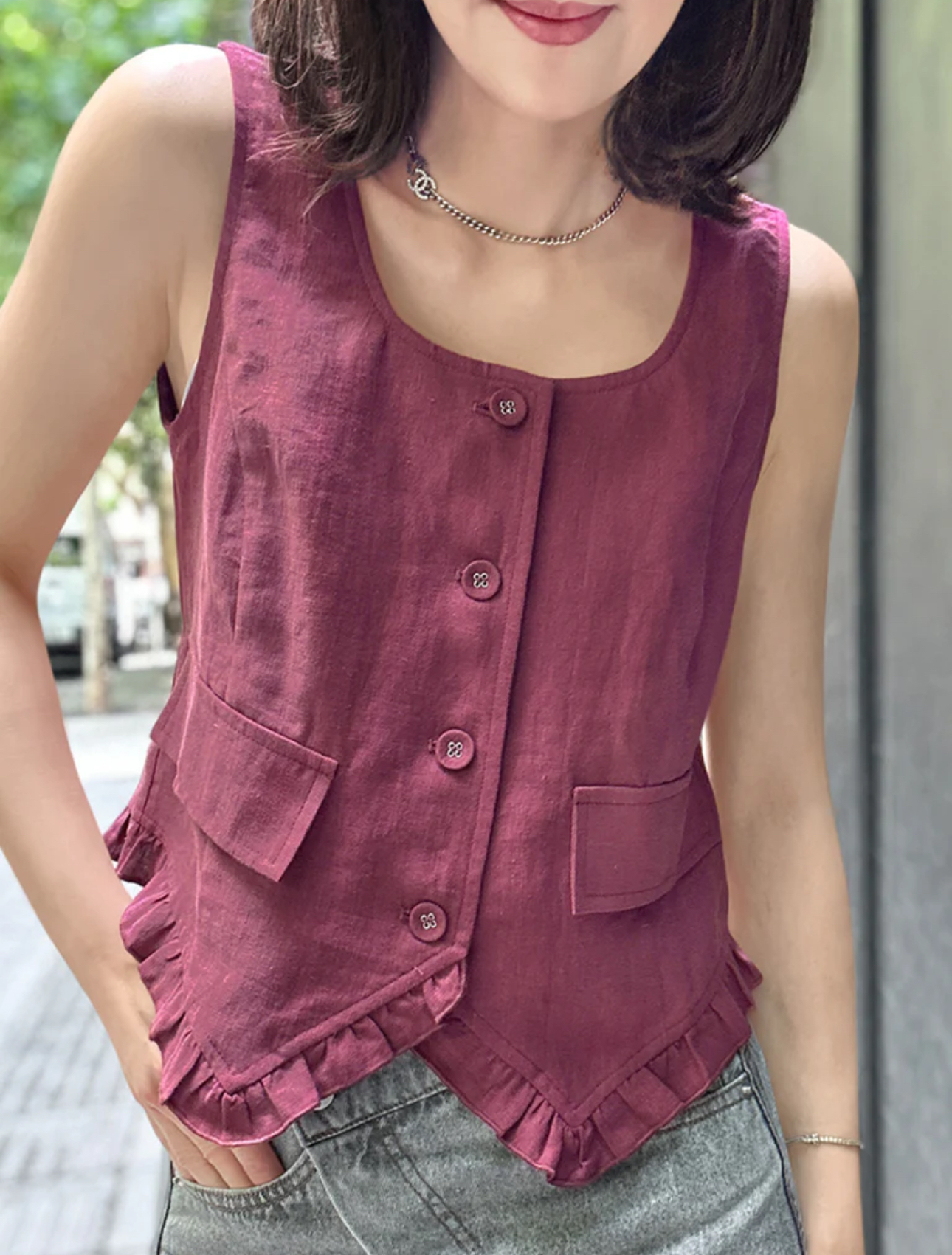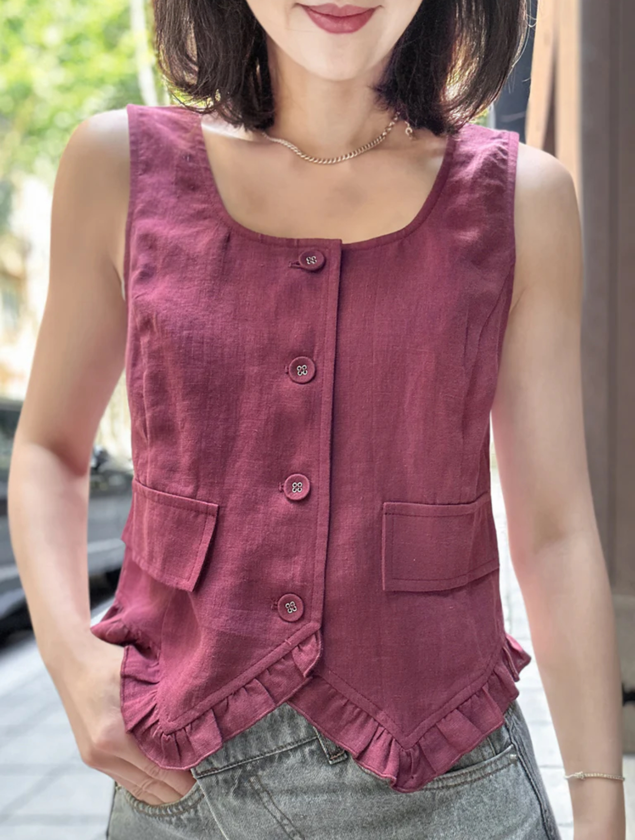 TYNVIE荷叶边领口背心-紫色