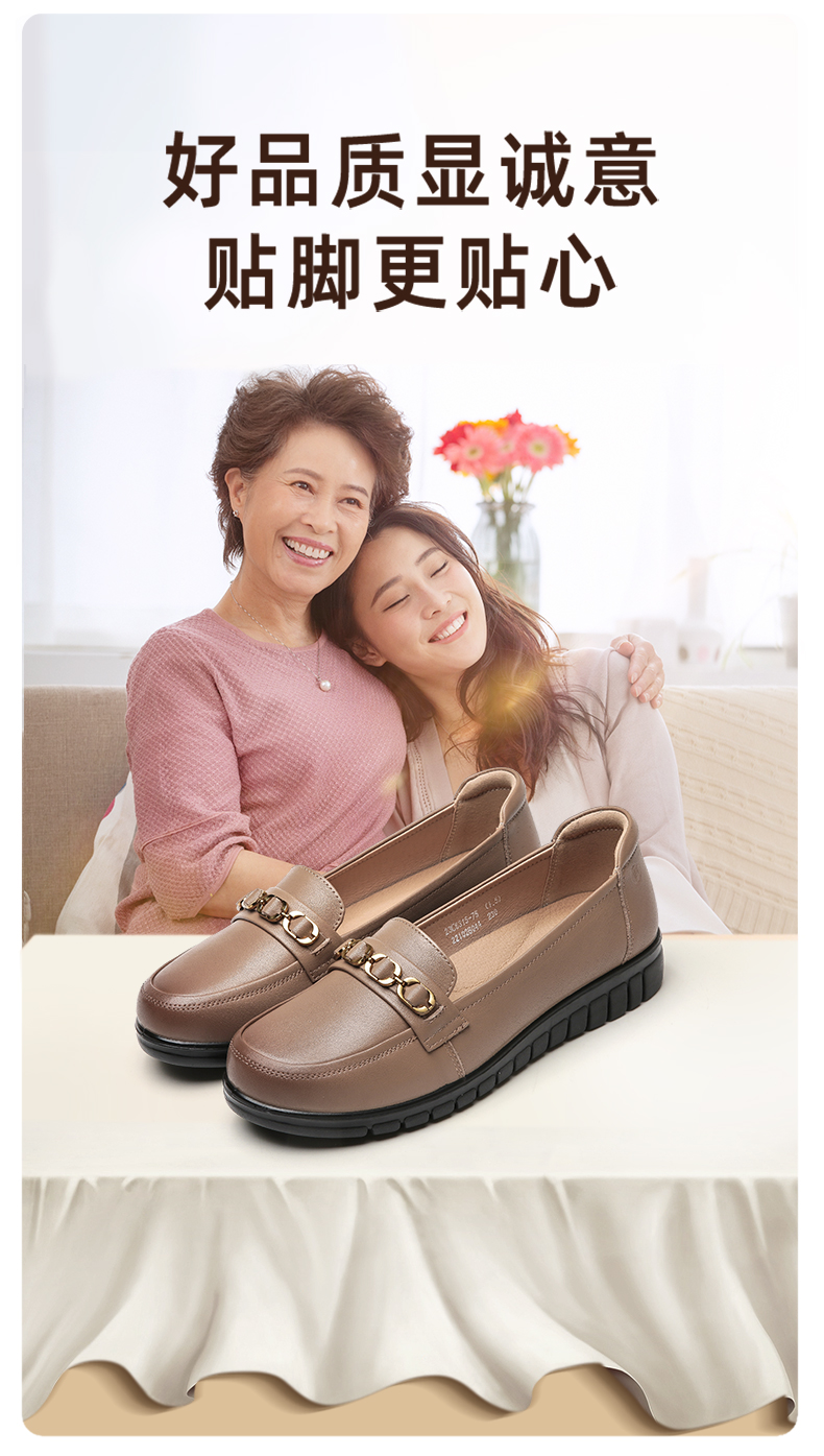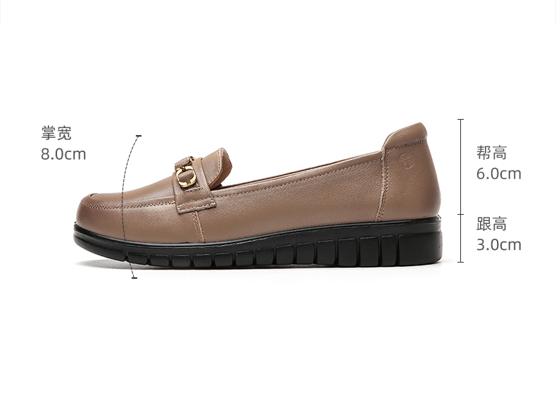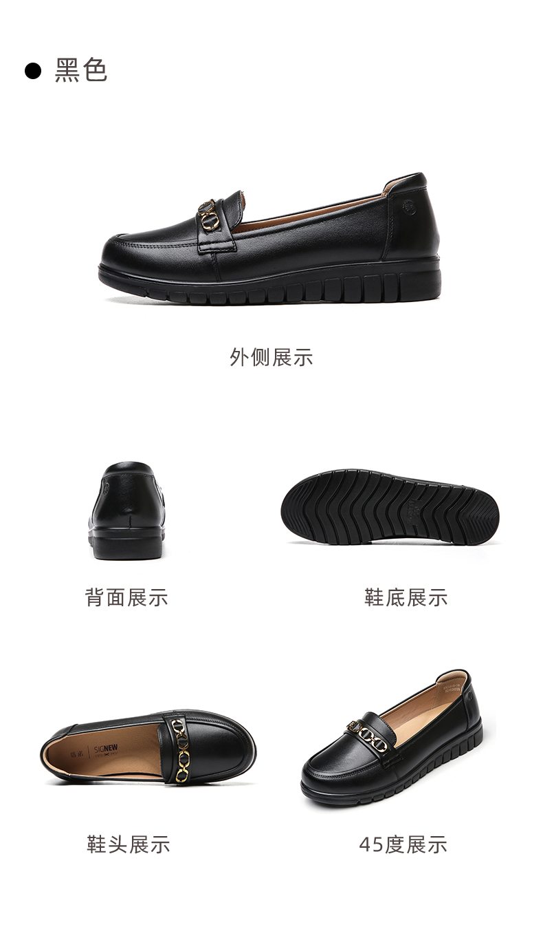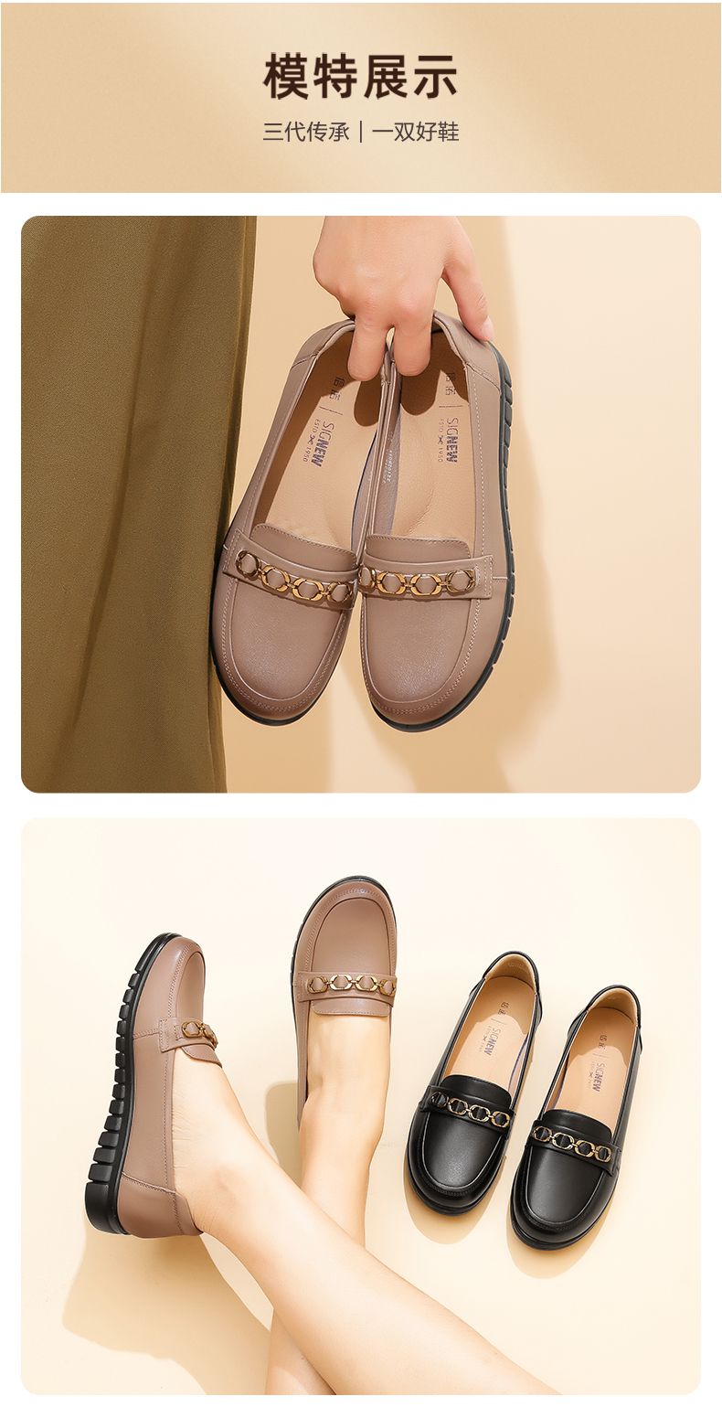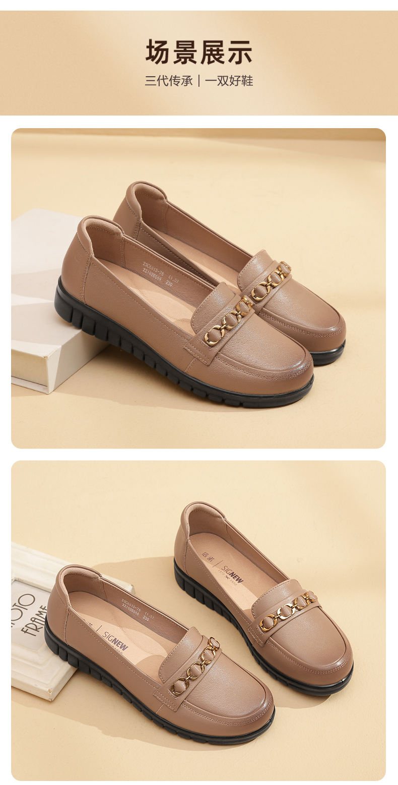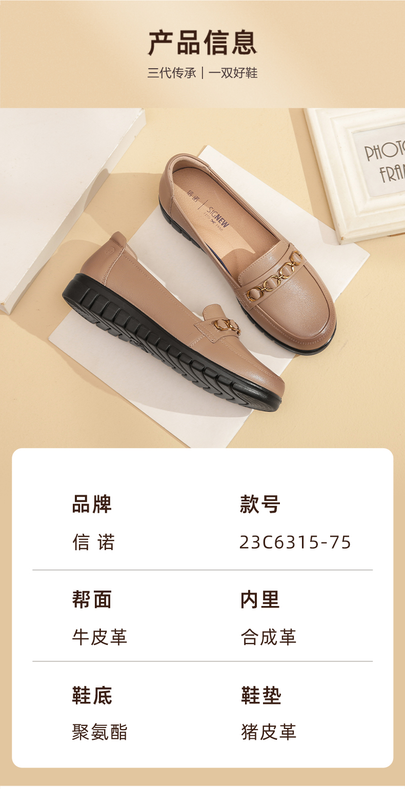 信诺真皮舒适女鞋2023新款春季中年妈妈鞋女士款平底单鞋乐福鞋子23C6315-75