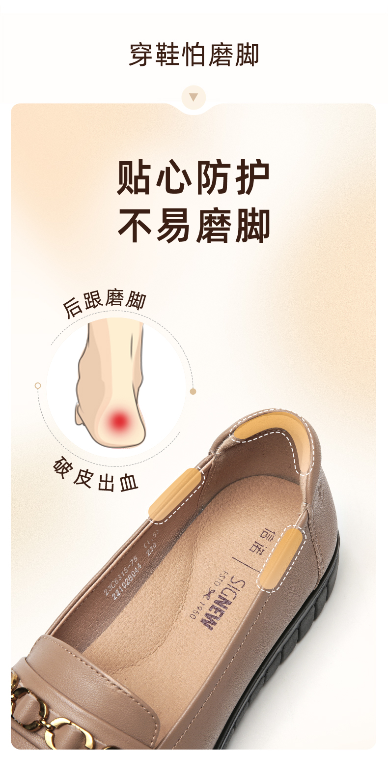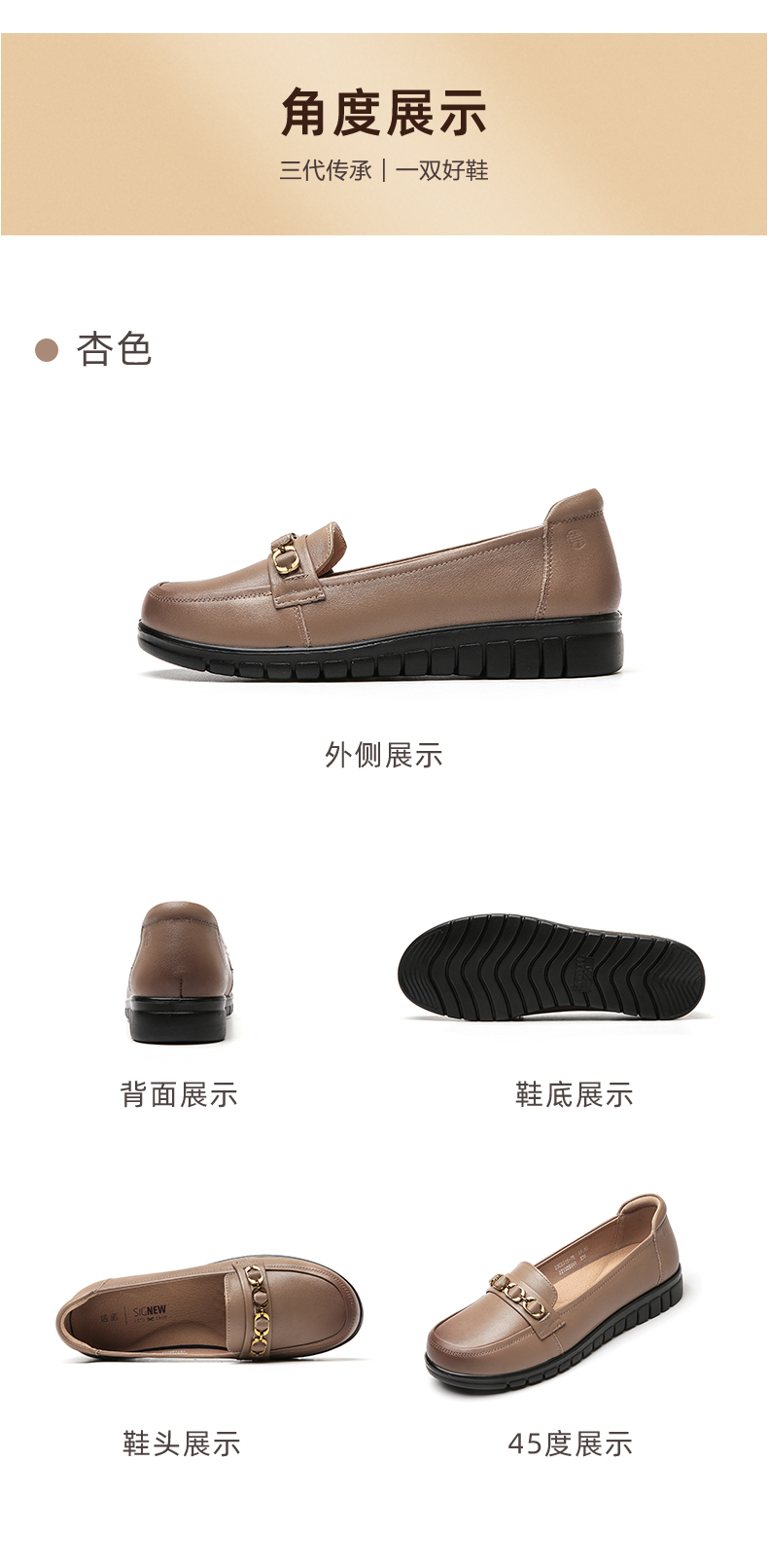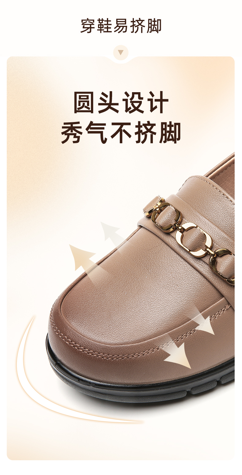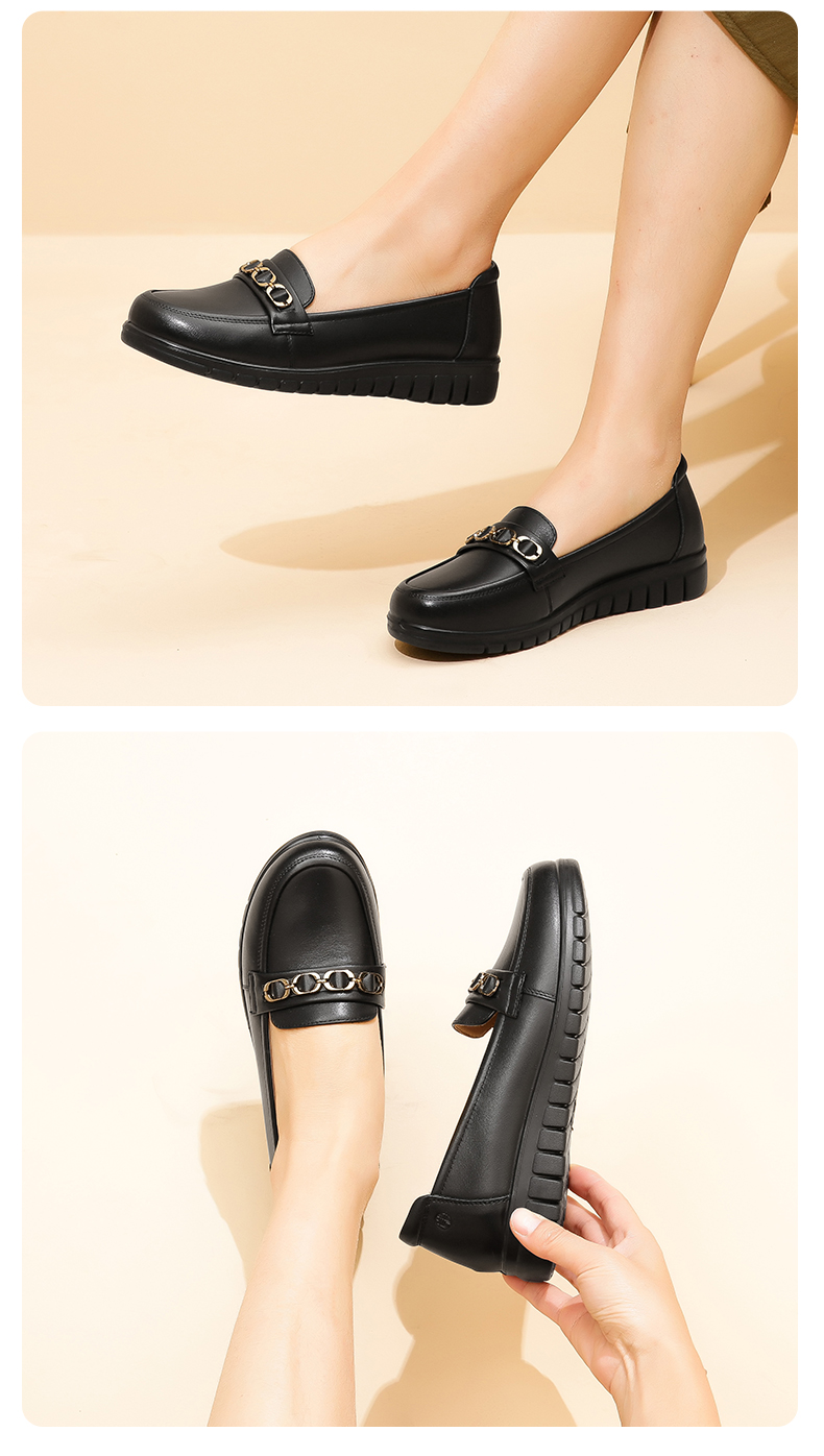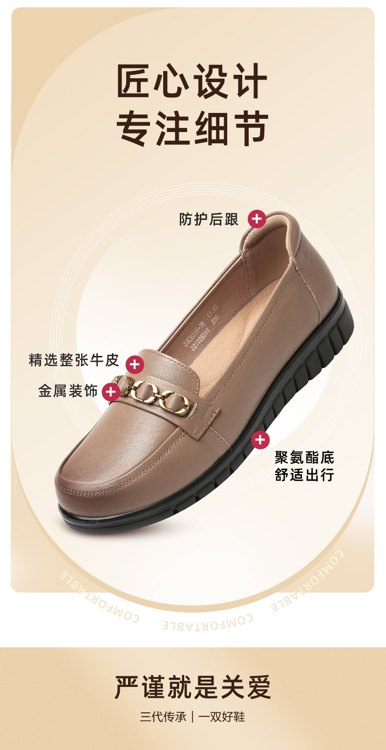 信诺真皮舒适女鞋2023新款春季中年妈妈鞋女士款平底单鞋乐福鞋子23C6315-75