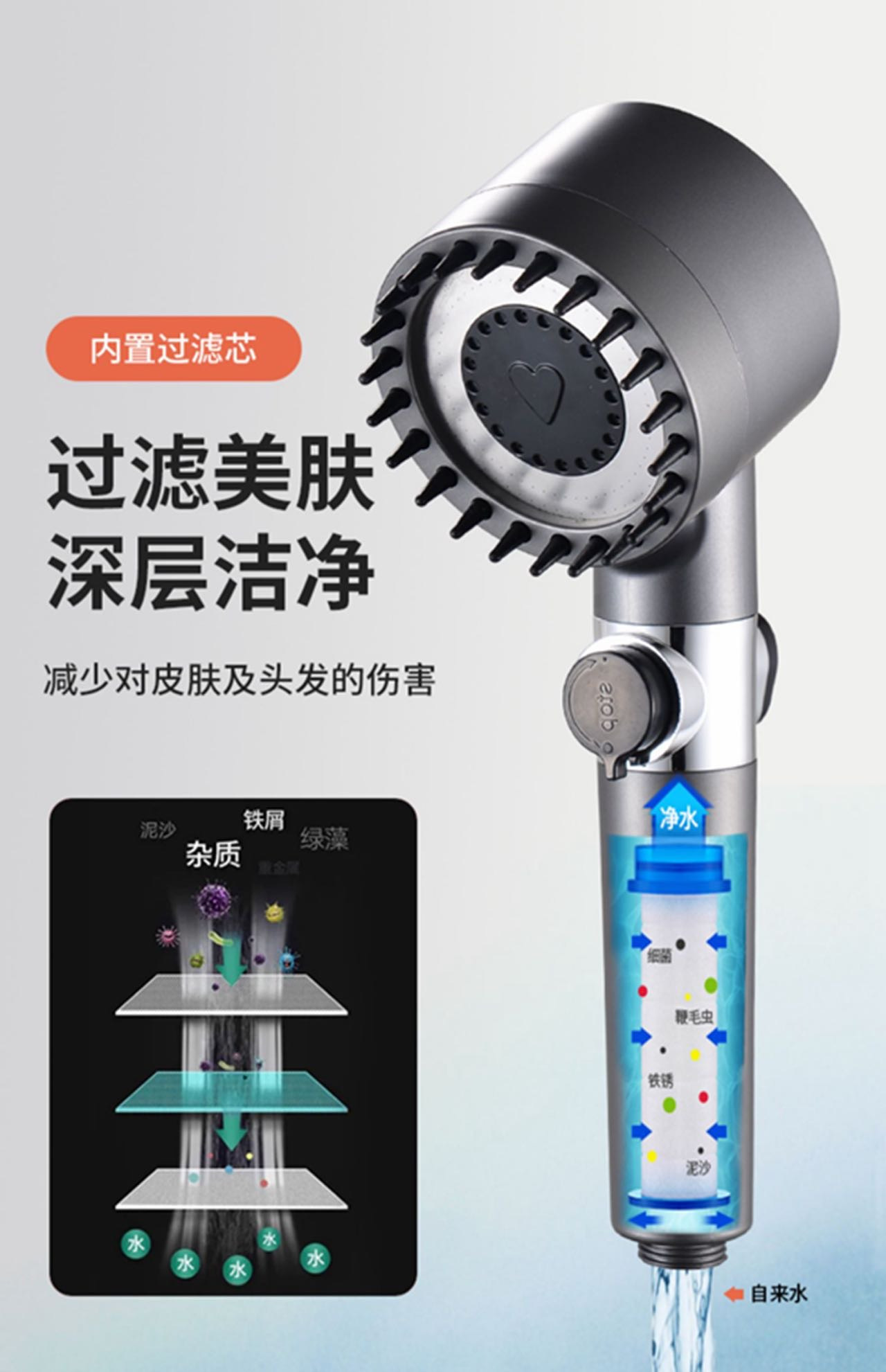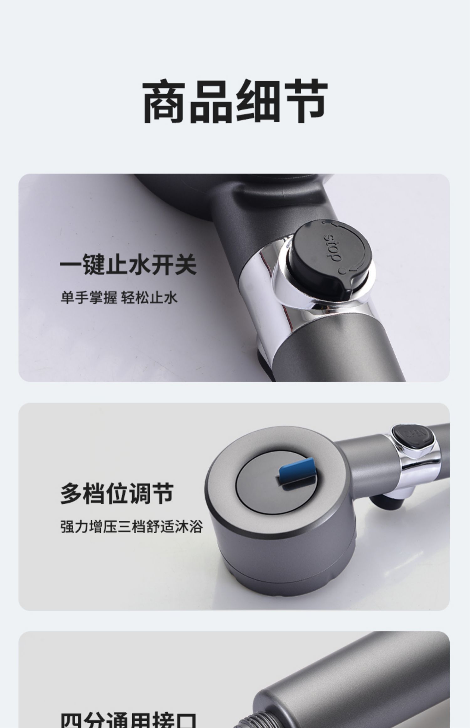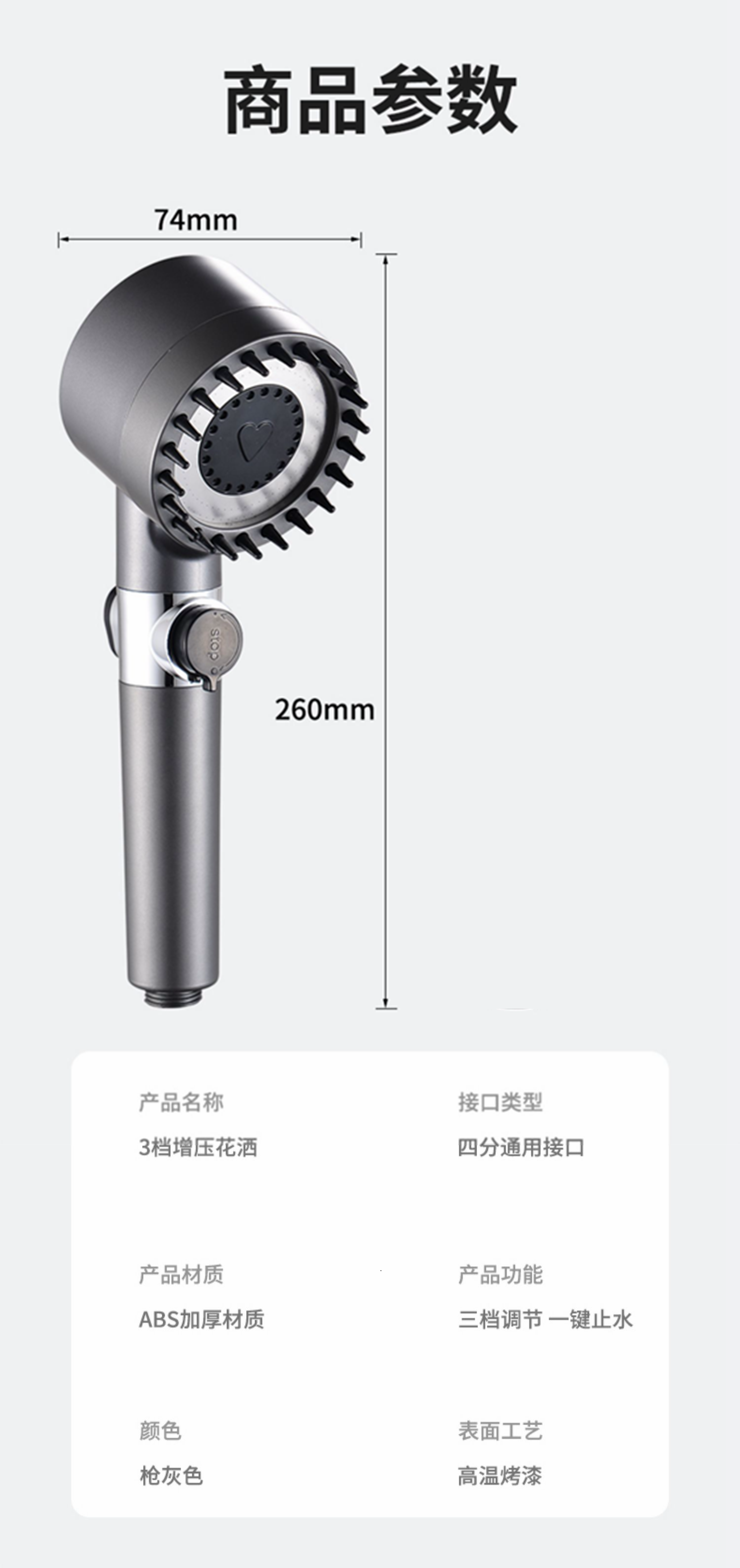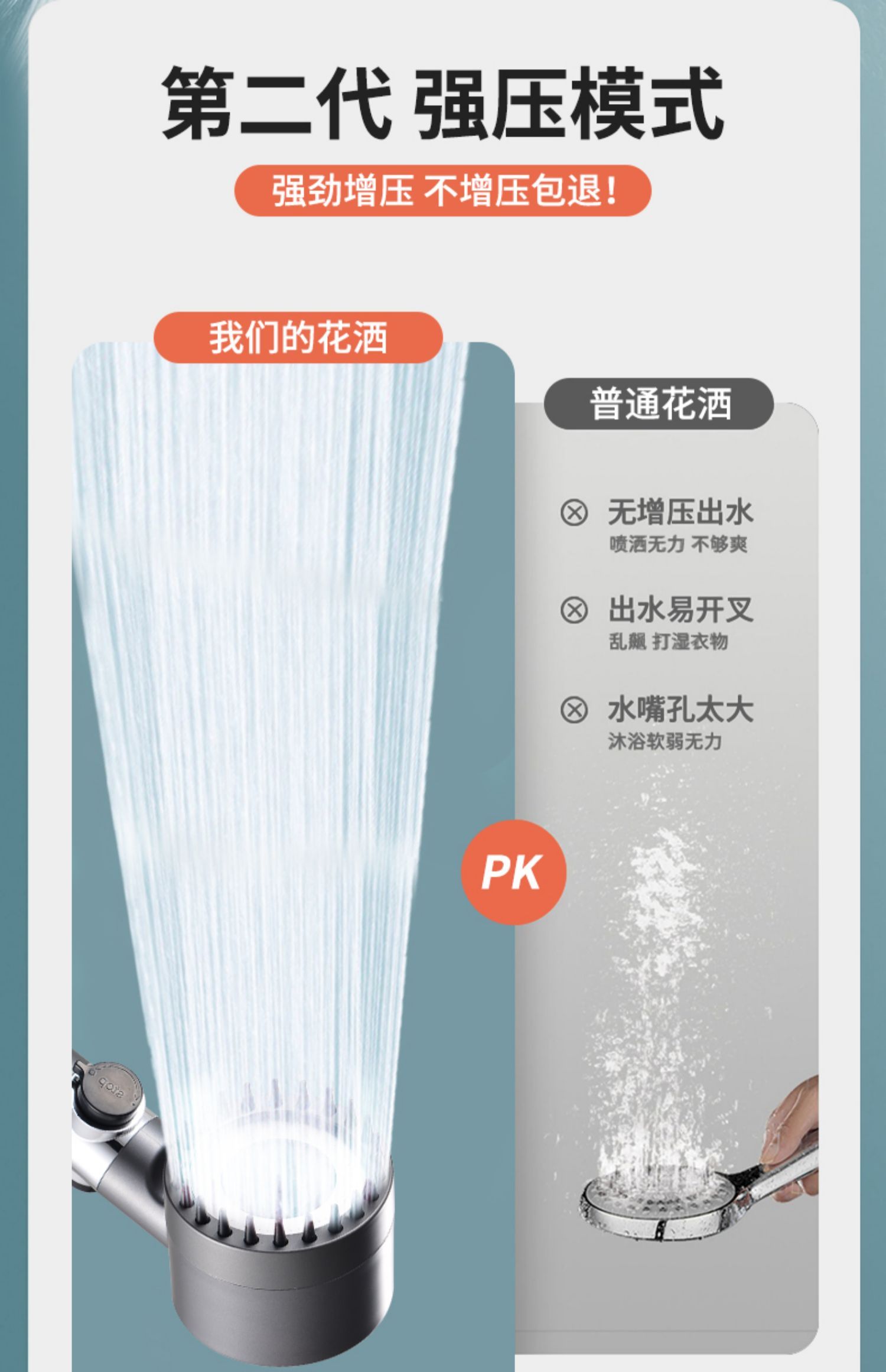 【小来】ceker强力增压花洒,戴森款花洒头,自带按摩,超强增压,三挡模式,一键开关水温不变