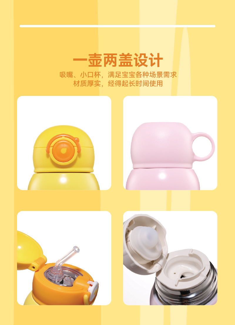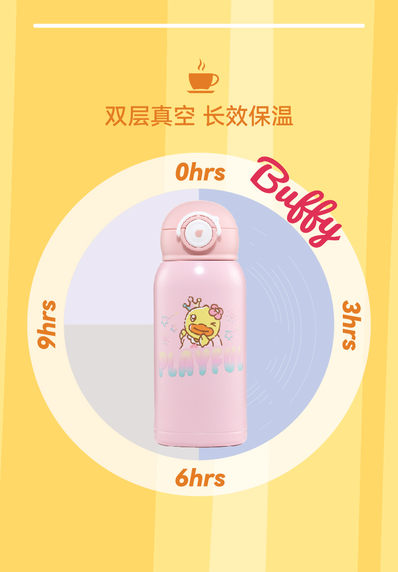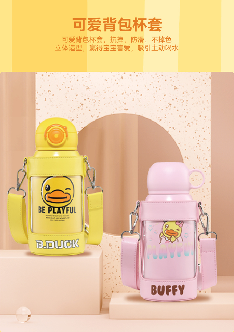 B.Duck小黄鸭精品四季316L不锈钢儿童数显保温杯(双盖带杯套)500ml BP5306901