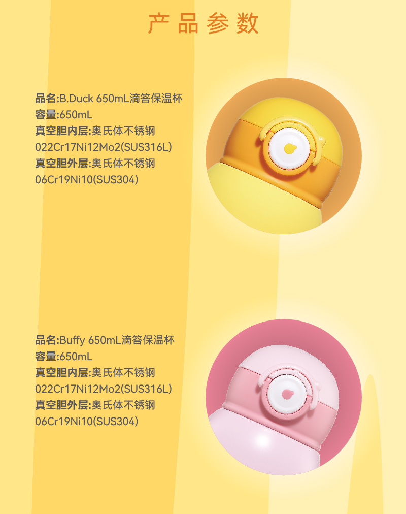 【专柜同款精品】B.Duck滴答保温杯(一杯两盖)650ml