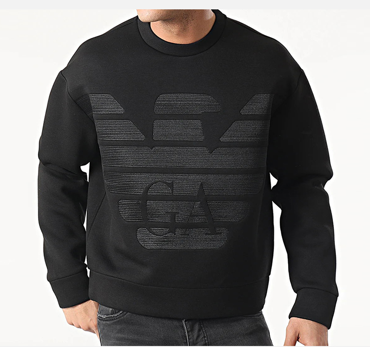 ARMANI 阿玛尼 男士标志刺绣圆领长袖卫衣 黑色 3K1MD5 1JUWZ 0029