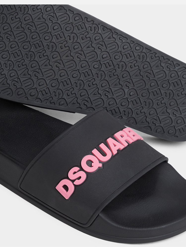 DSQUARED2 女士字母徽标拖鞋 黑色 FFW0017 17205013 M4074