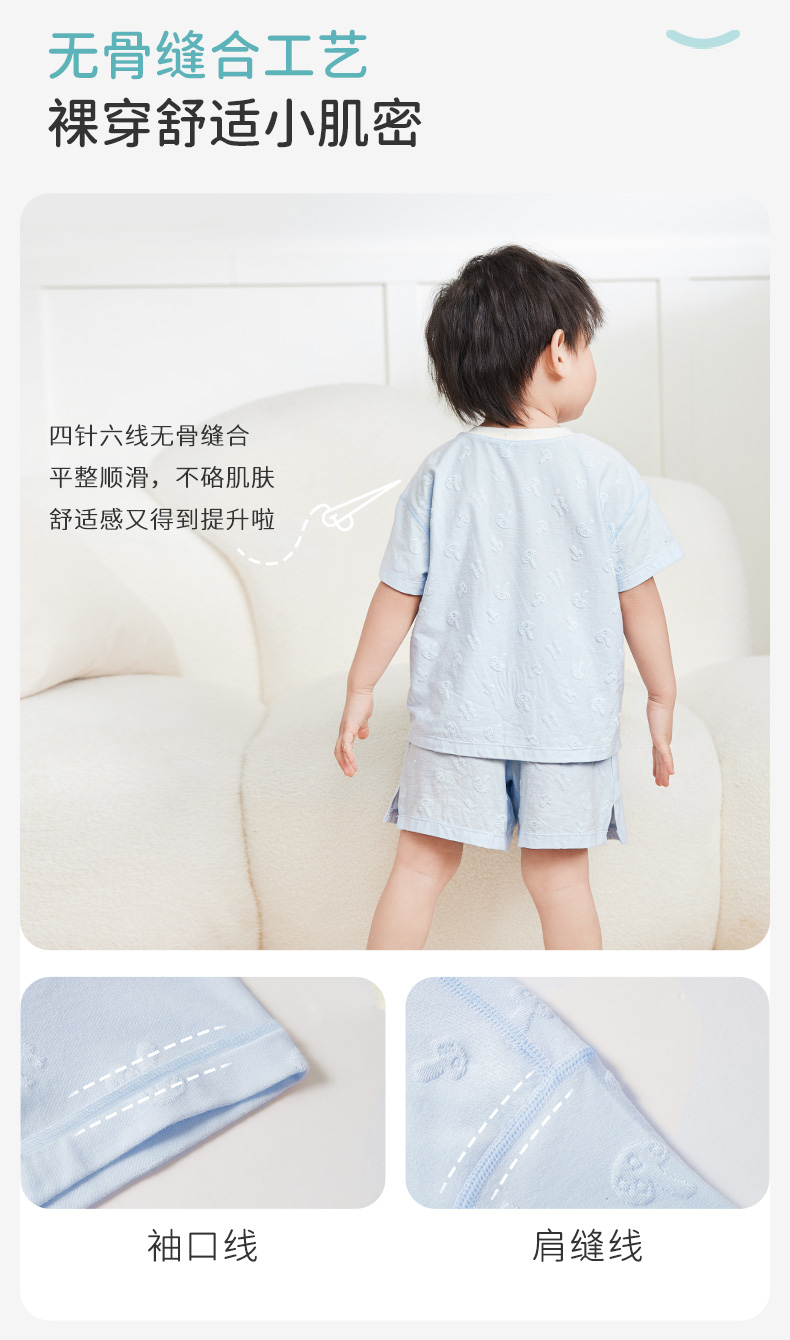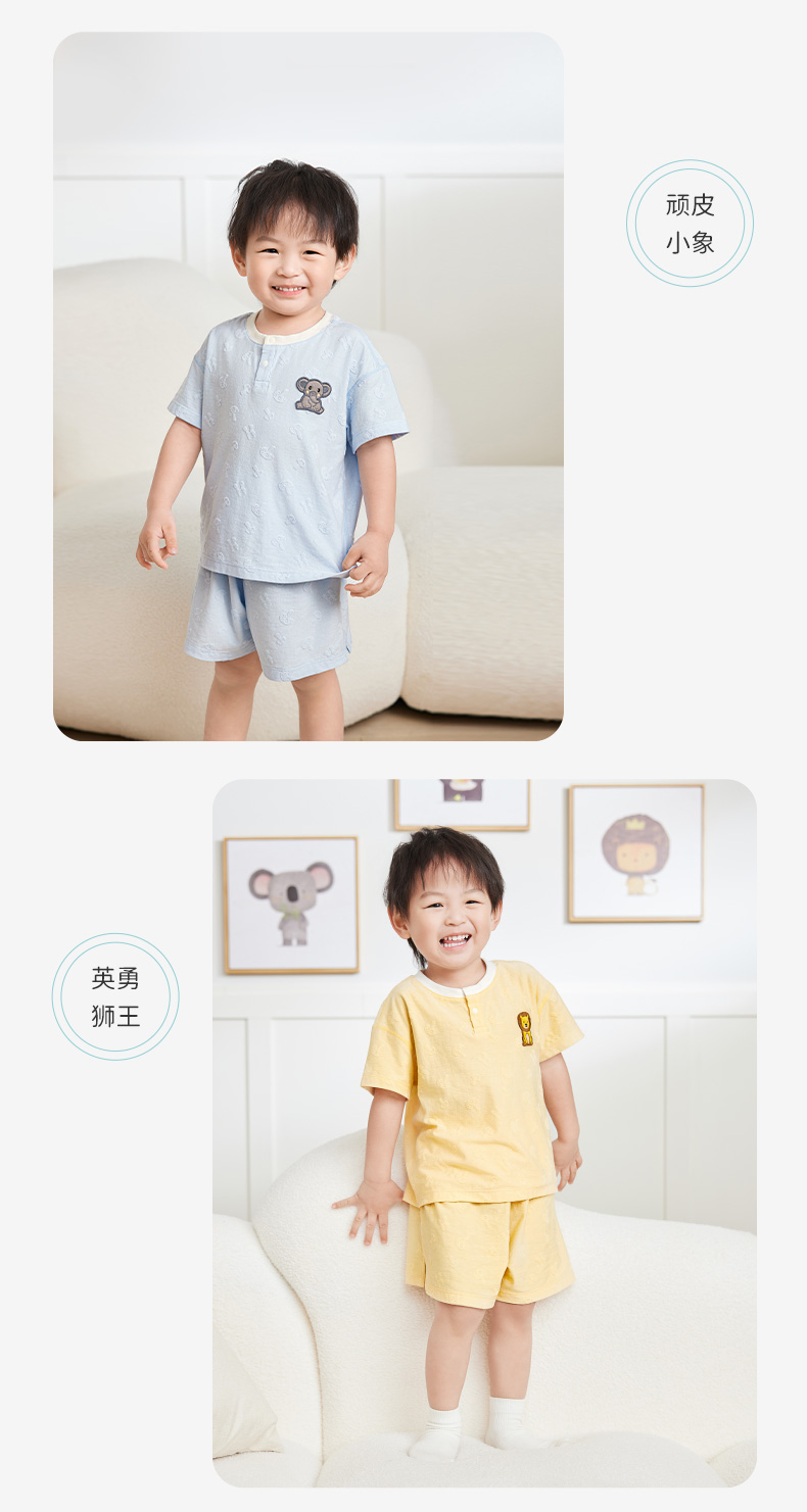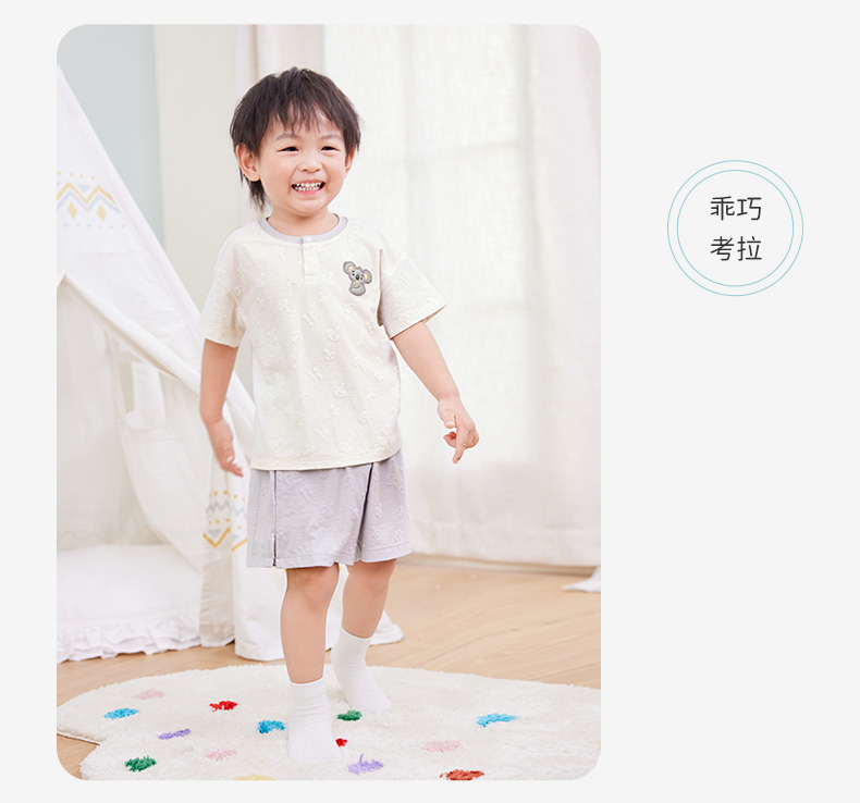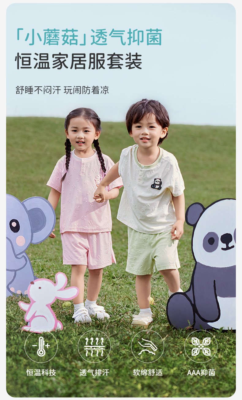i-baby/英伦宝贝恒温抑菌针织小蘑菇短袖家居服套装 短袖短裤睡衣春夏季薄款