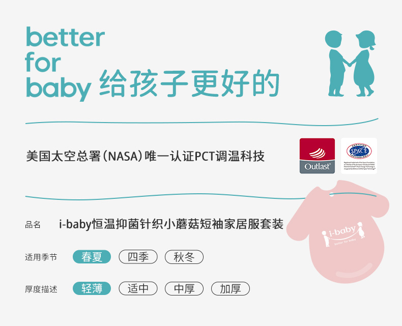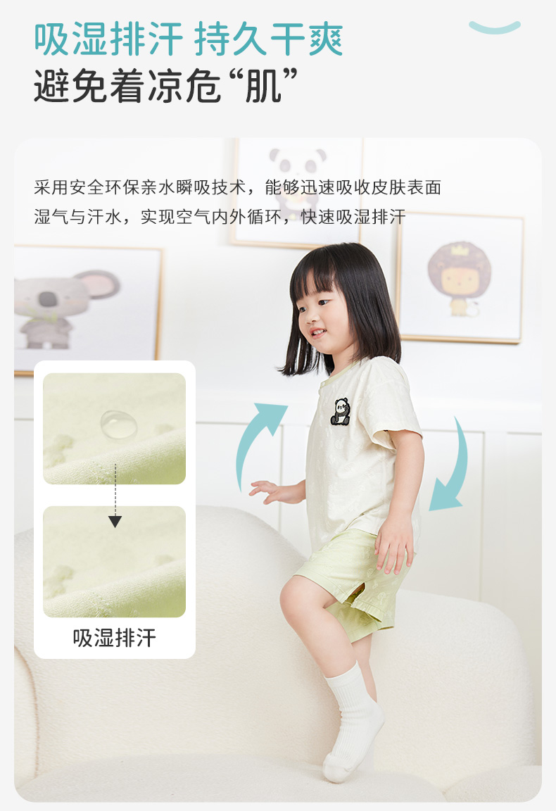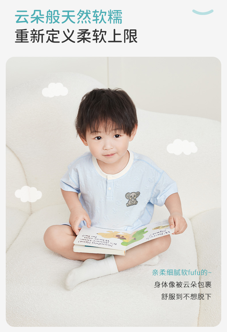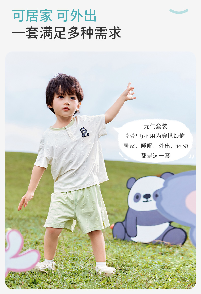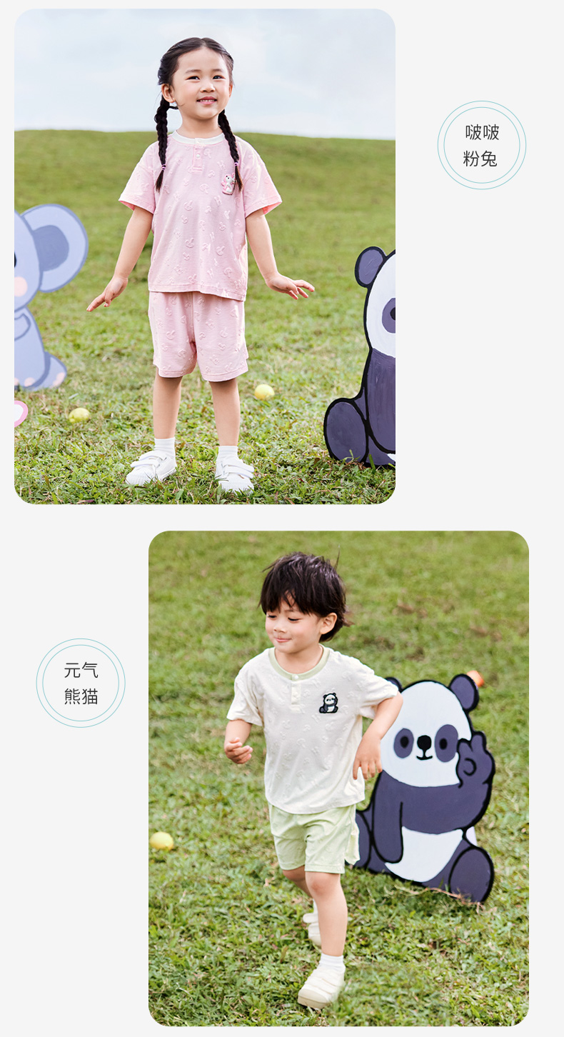 i-baby/英伦宝贝恒温抑菌针织小蘑菇短袖家居服套装 短袖短裤睡衣春夏季薄款