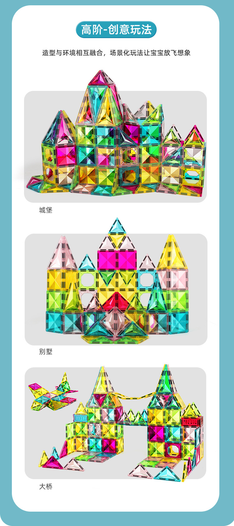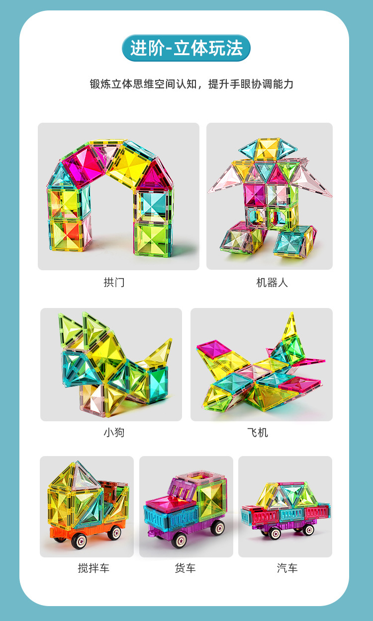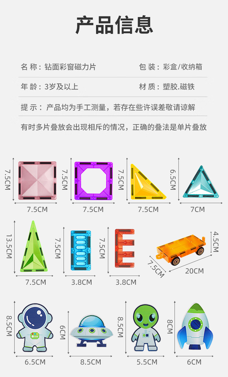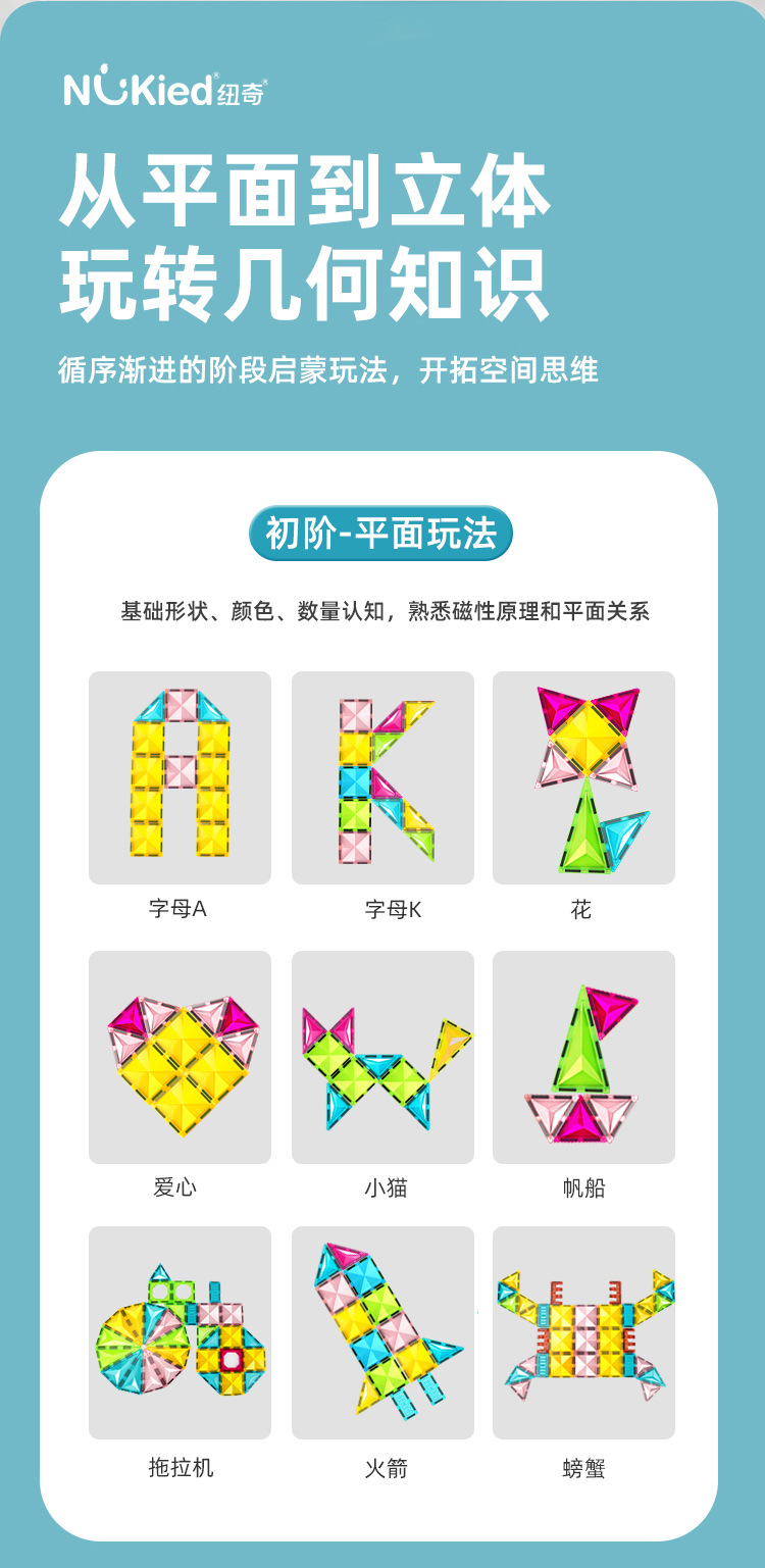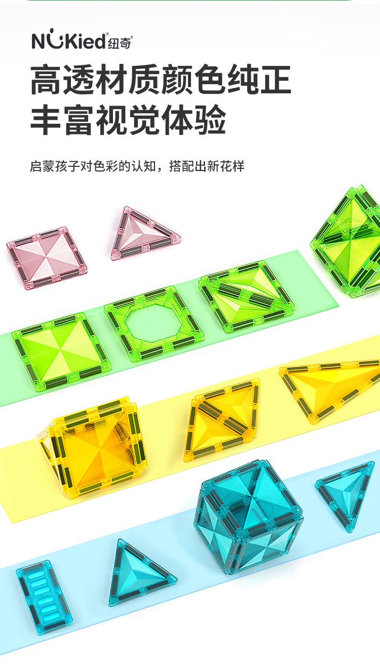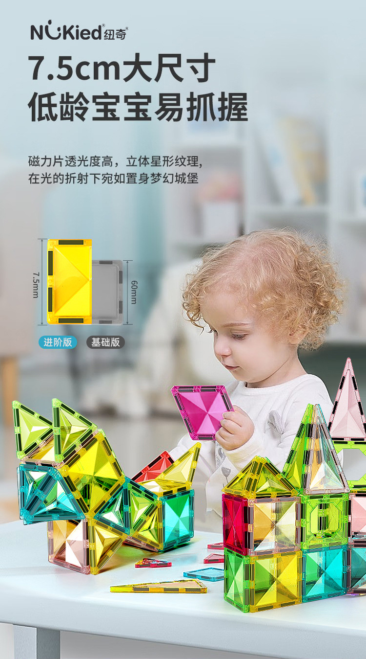 nukied纽奇钻面4D透光磁力片 7.5cm大尺寸 低龄宝宝易抓握 加厚磁芯 磁力强劲长久