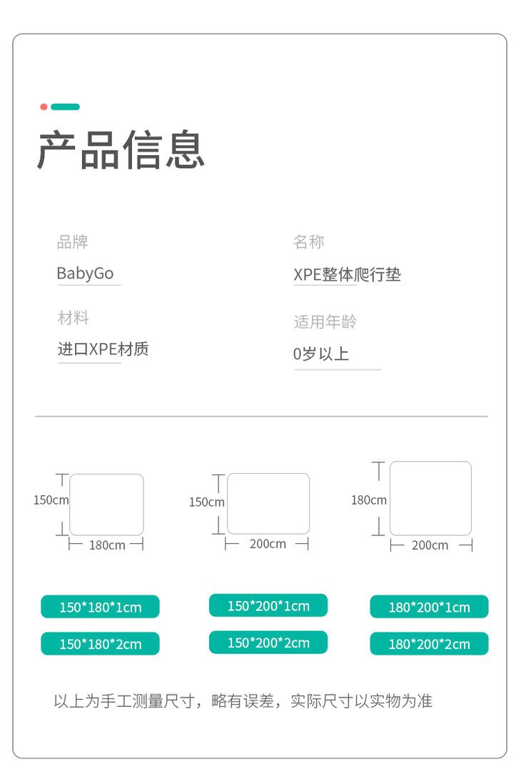(超值)babygo 宝宝爬行游戏XPE整体地垫 2cm加厚版