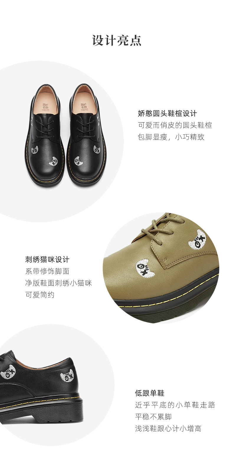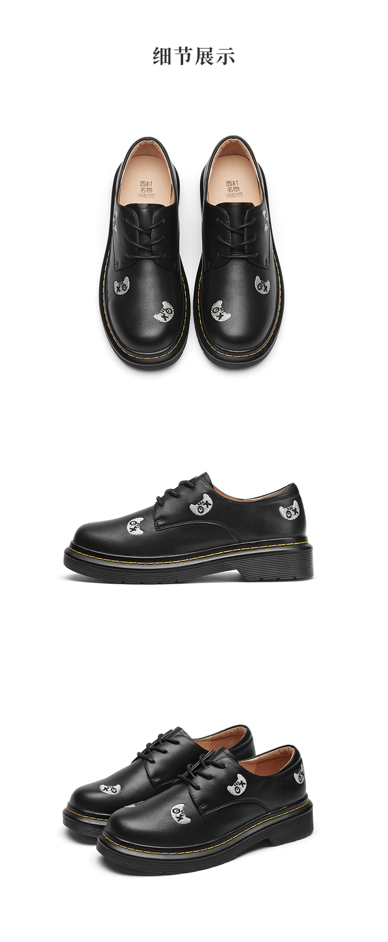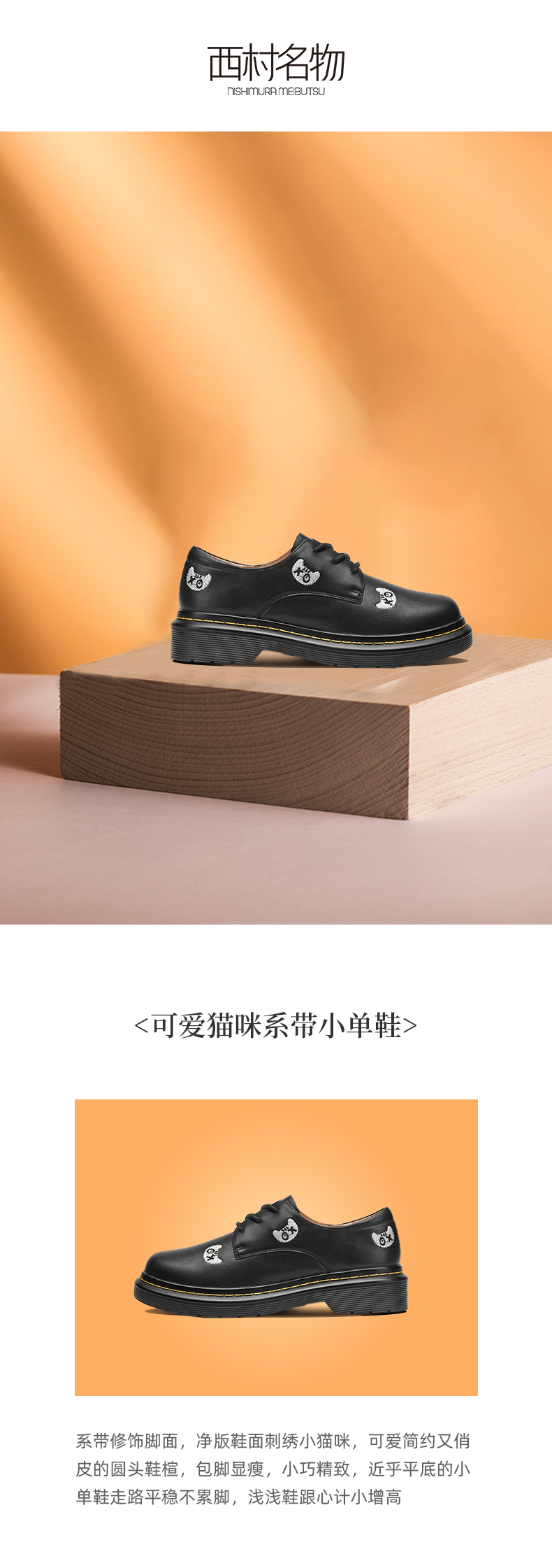 西村名物2021秋季新款松糕厚底大头复古英伦风系带小皮鞋女X21CM33011