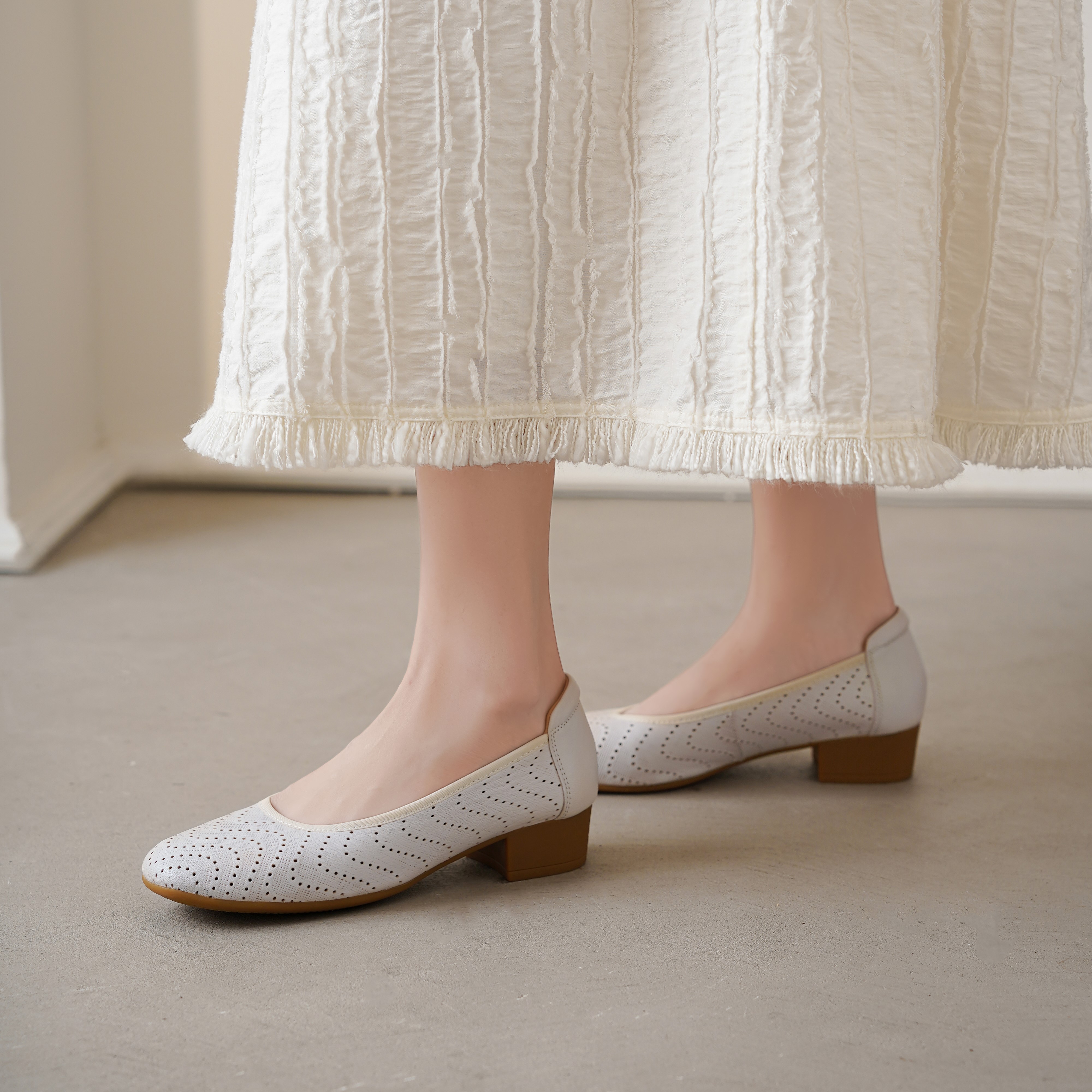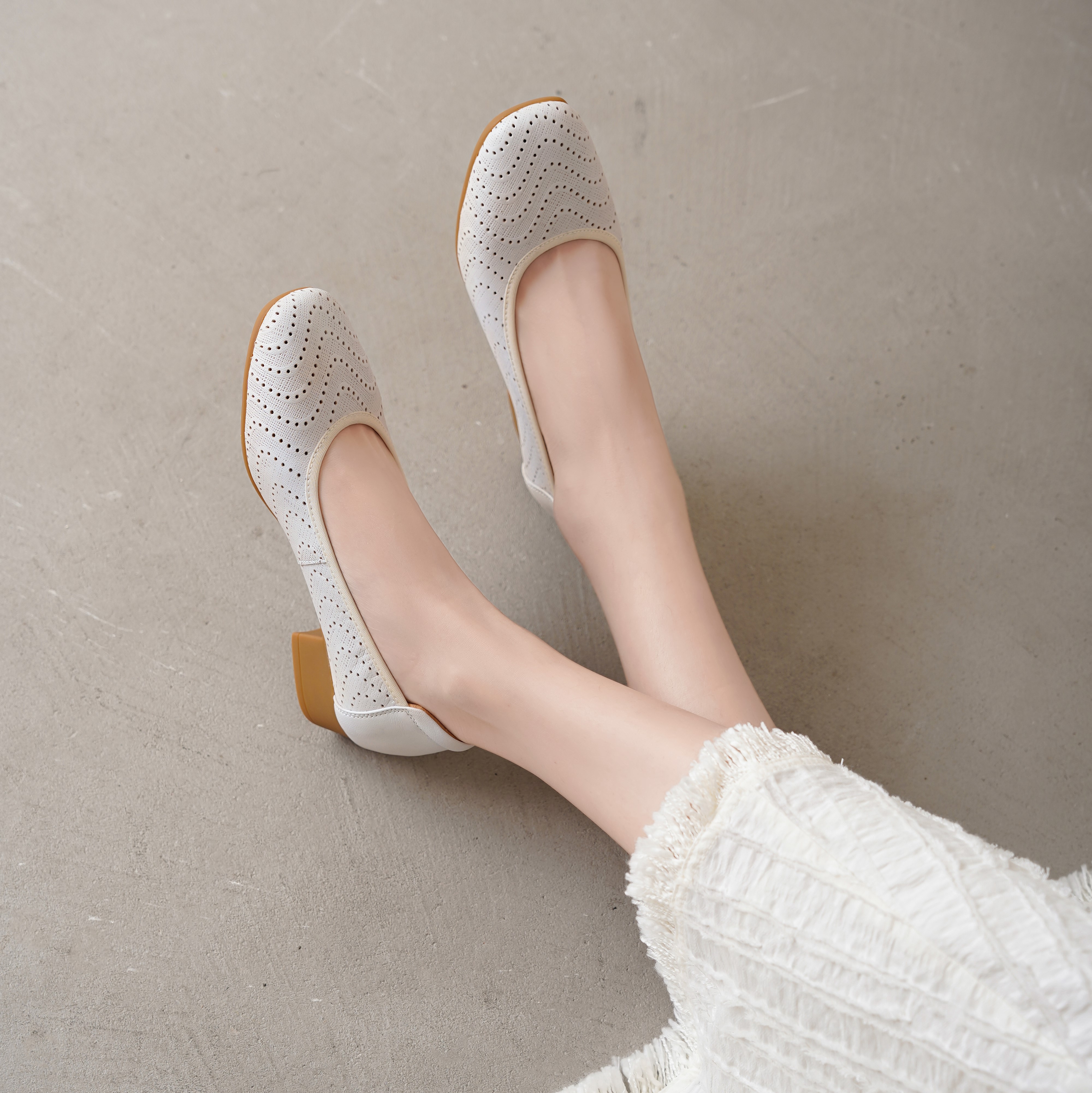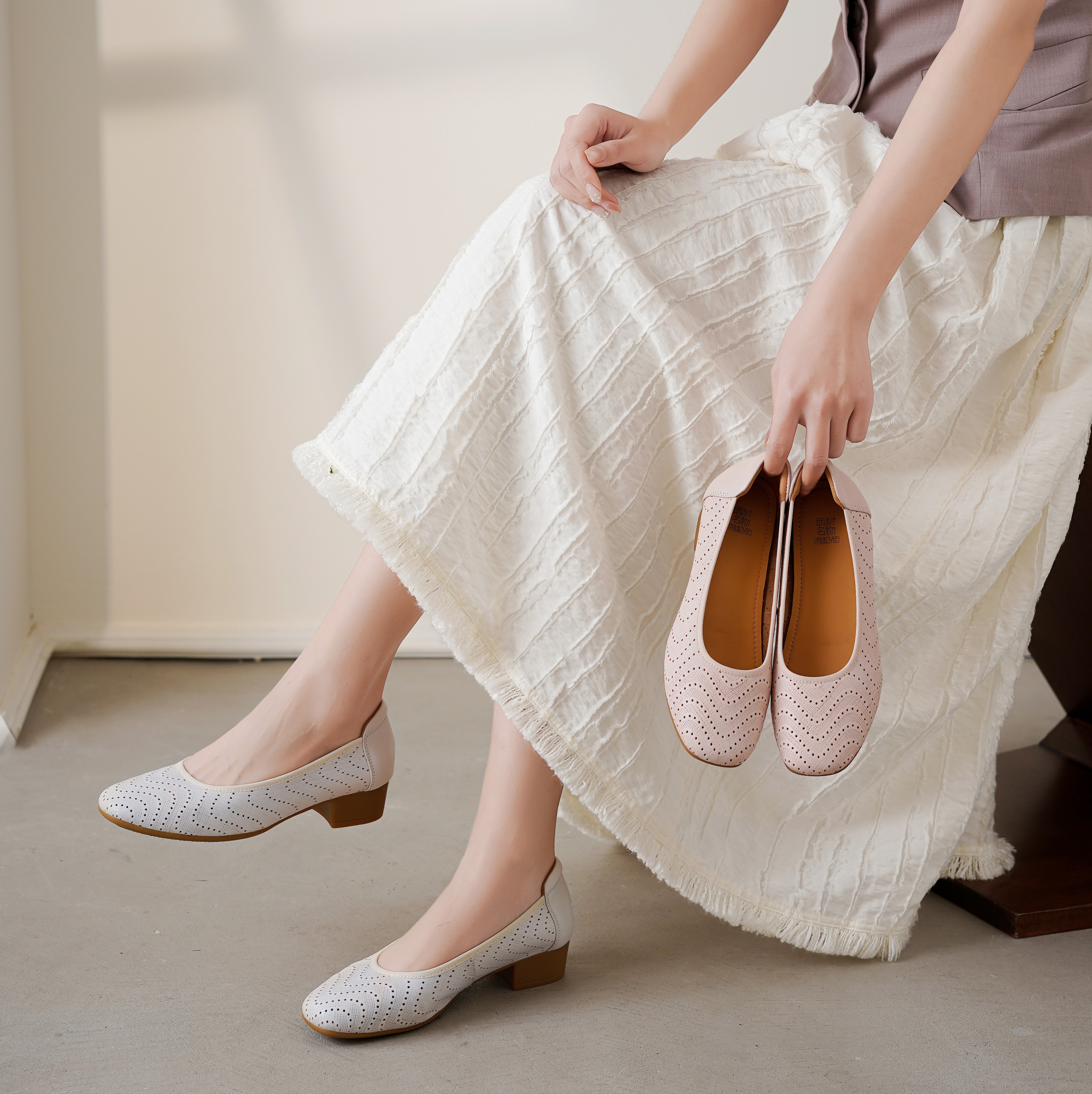 西村名物2025年夏季新款舒适低跟新中式风优雅镂空浅口单鞋T25AH16101