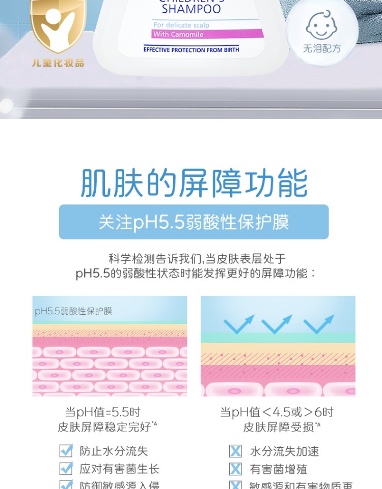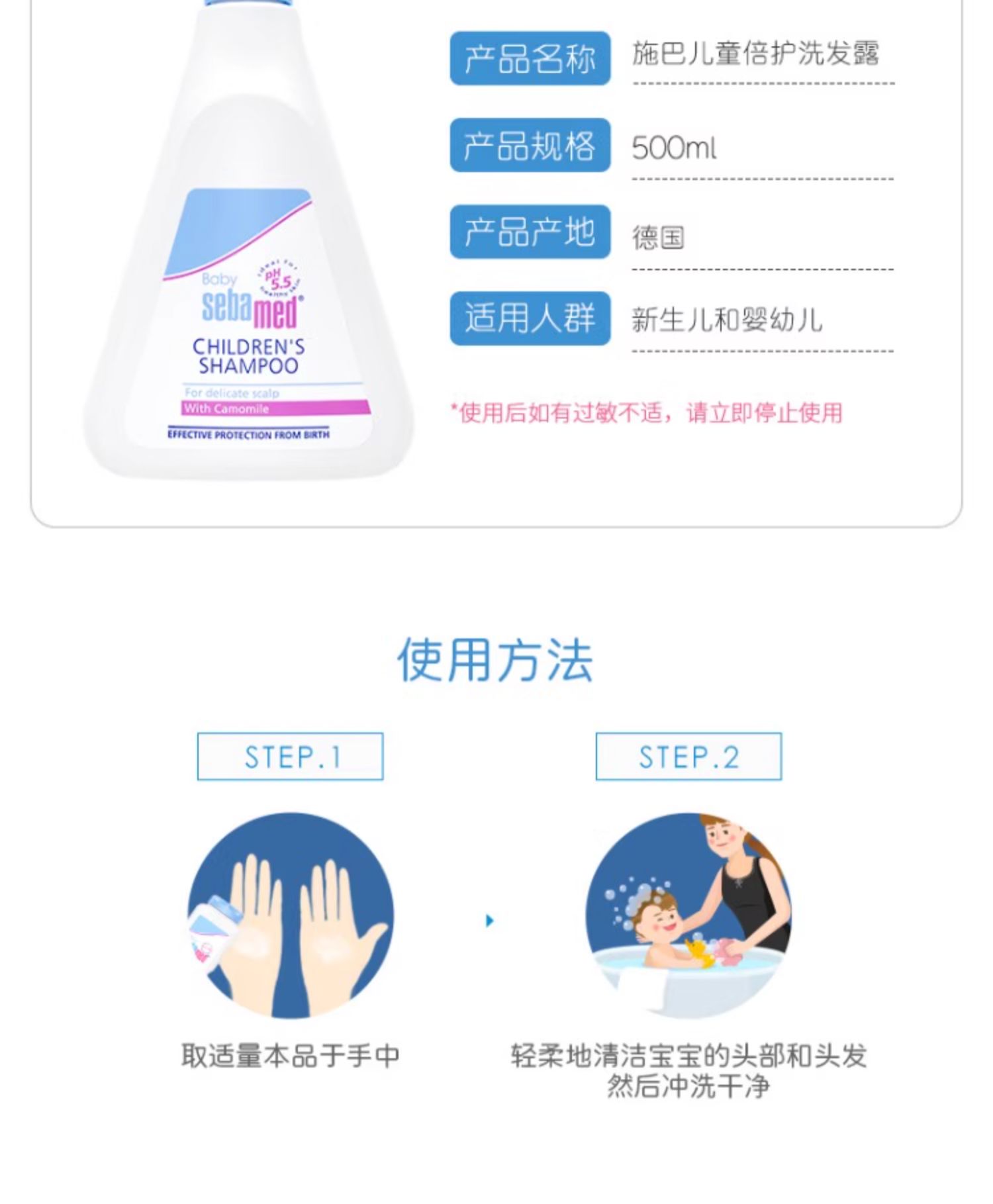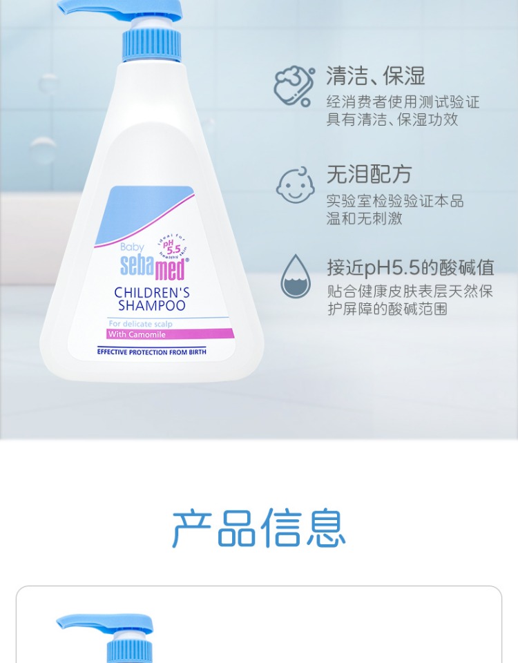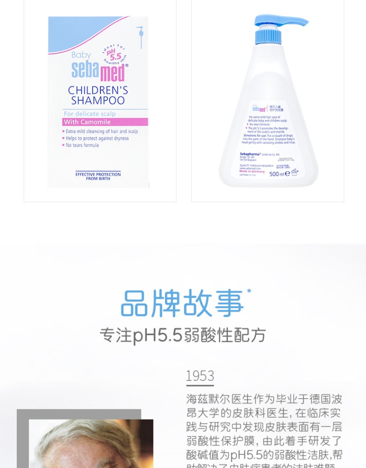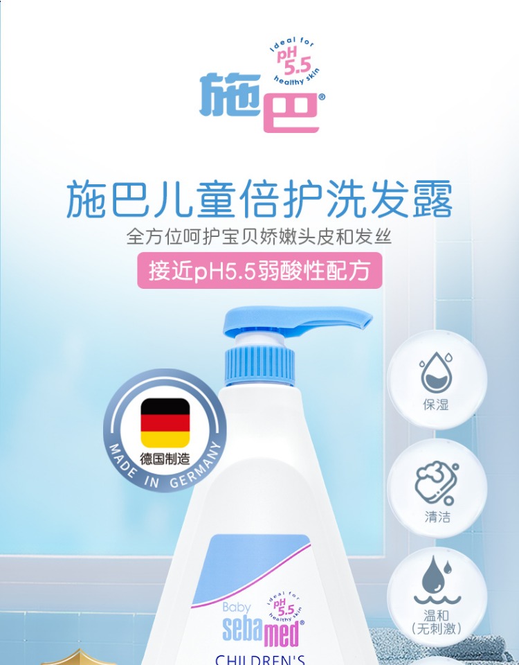 施巴儿童洗发水婴儿宝宝男女孩洗头露接近pH5.5德国500ml/4103040016089