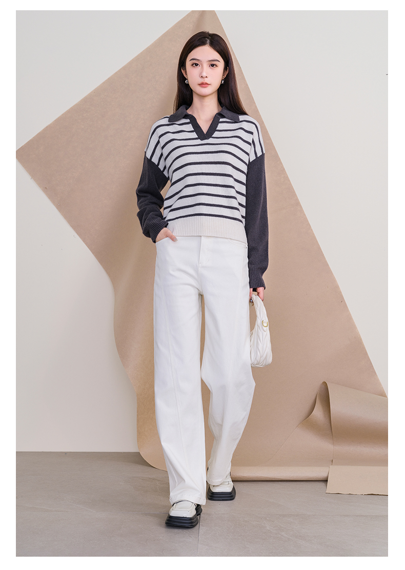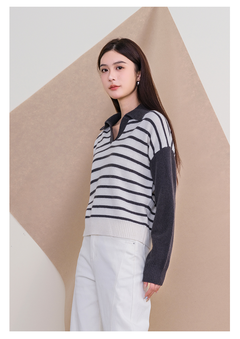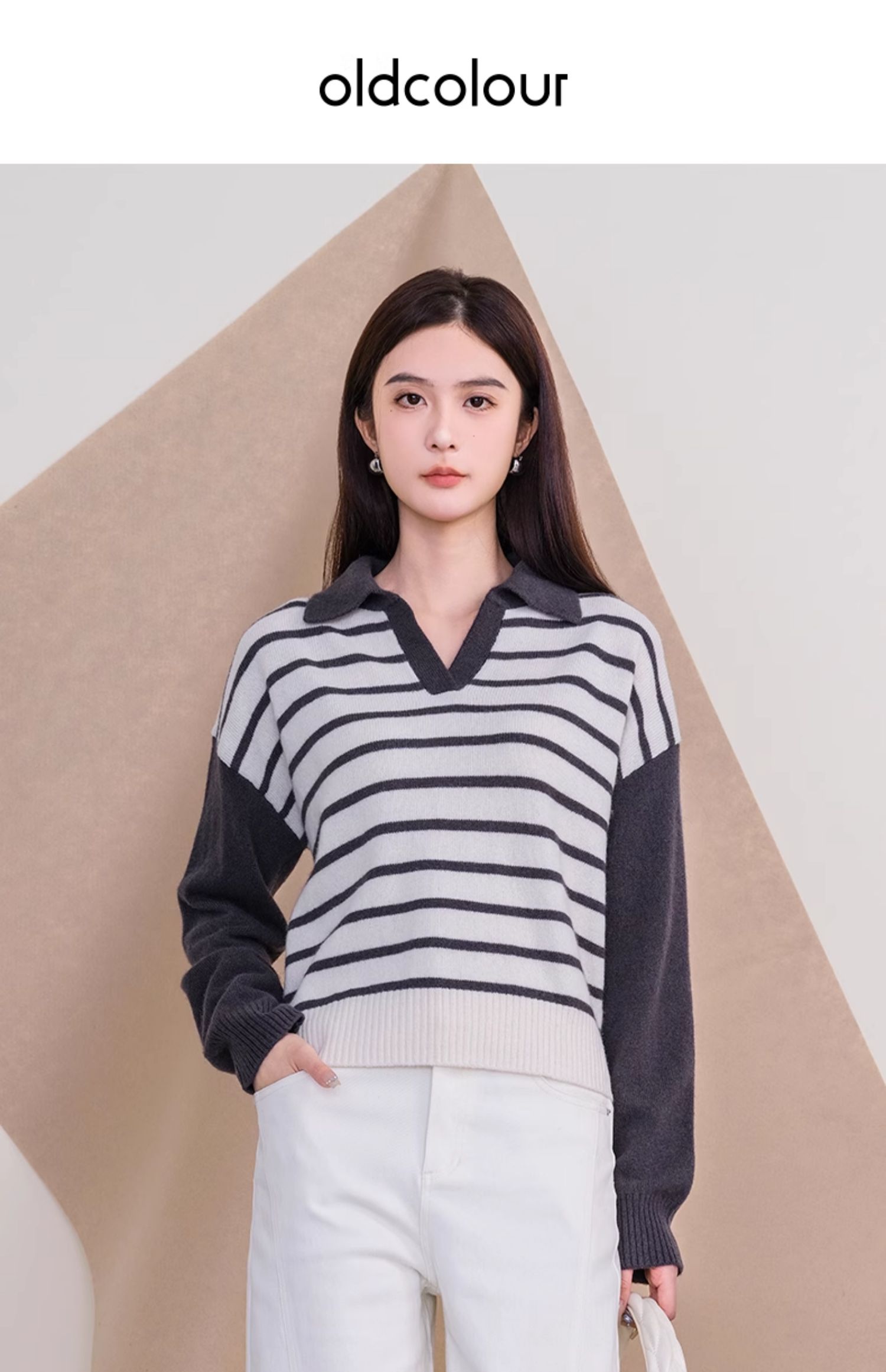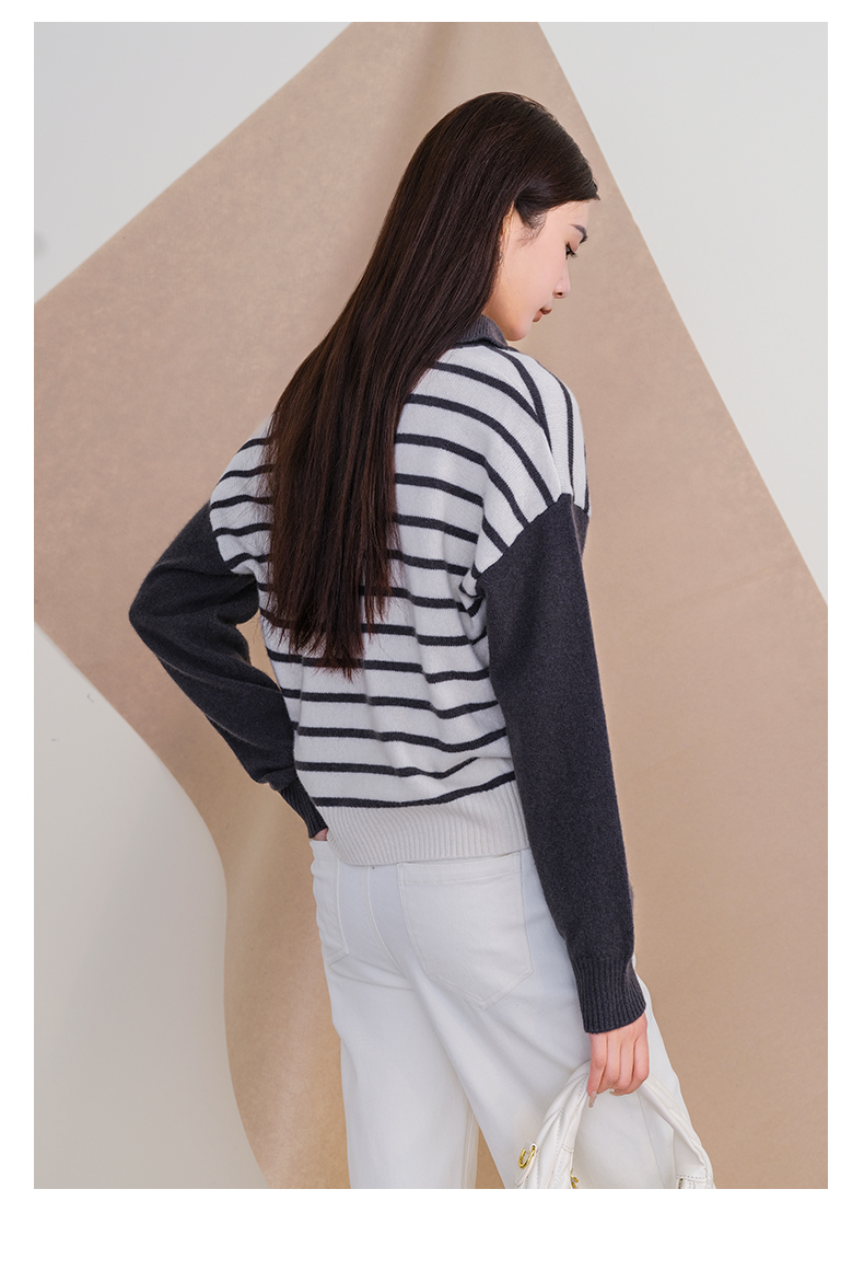oldcolour欧珂冬季时尚宽松横纹拼接休闲毛织套头衫女P420510A1