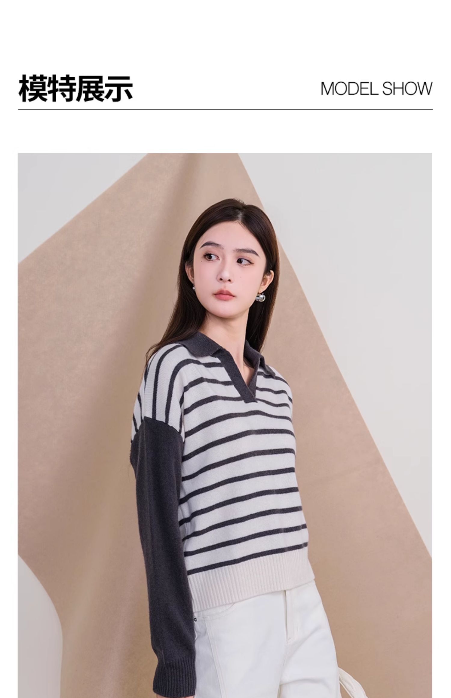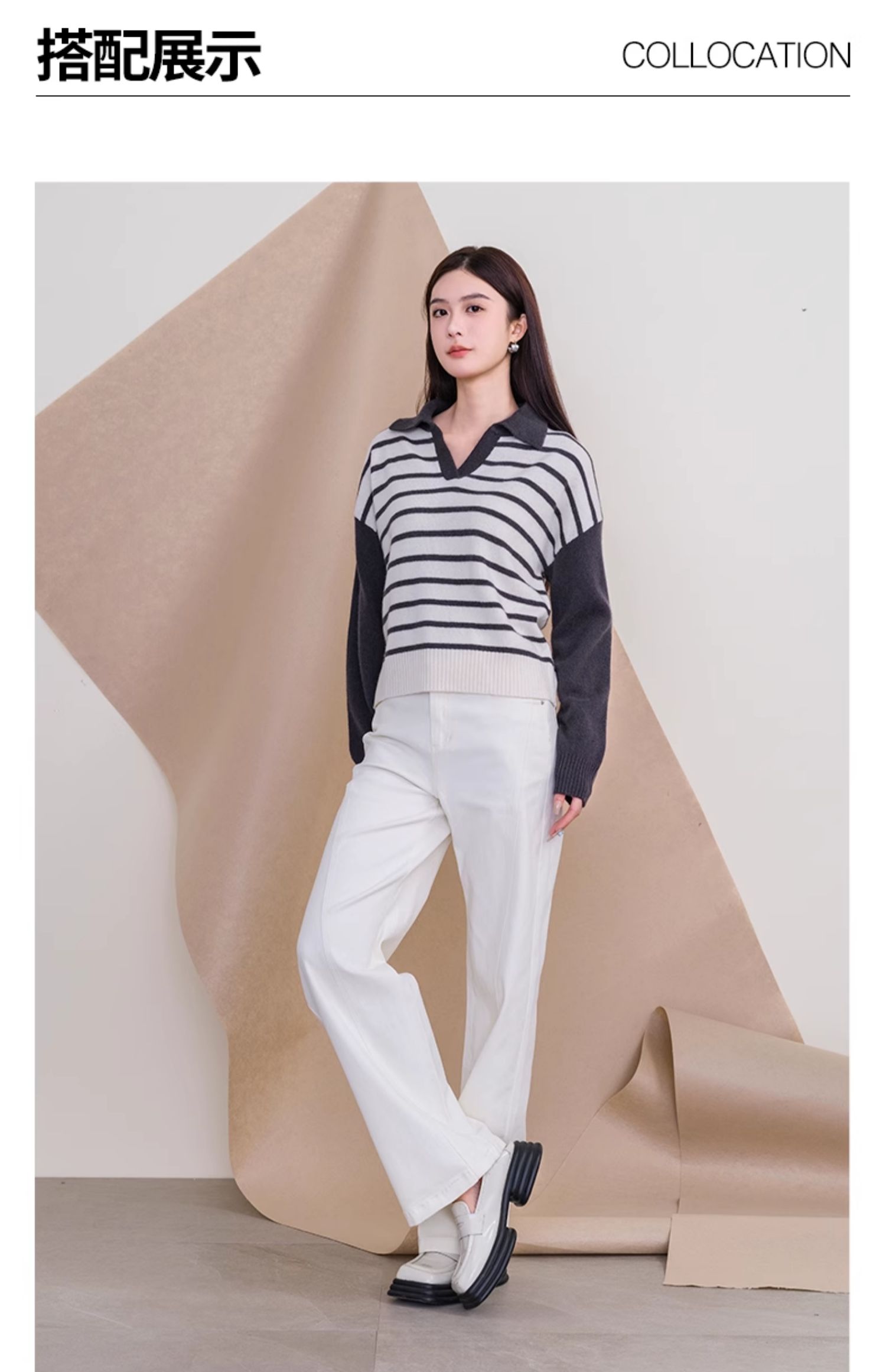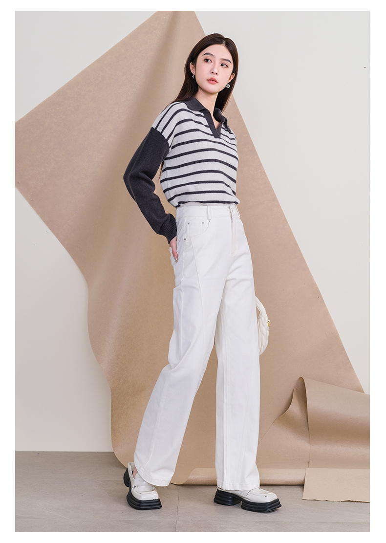 oldcolour欧珂冬季时尚宽松横纹拼接休闲毛织套头衫女P420510A1
