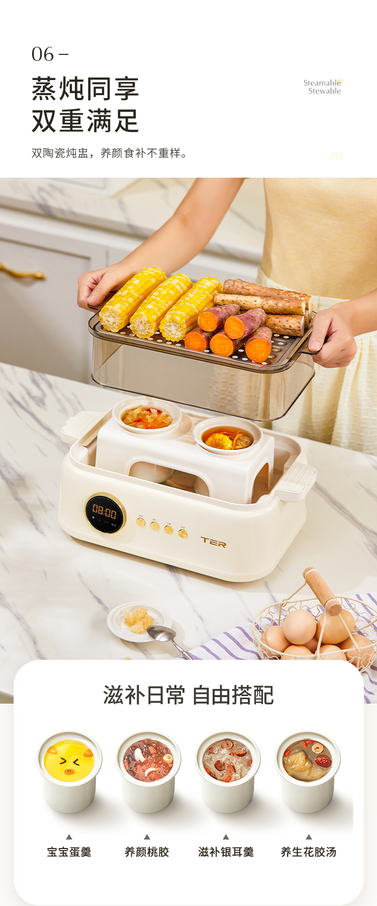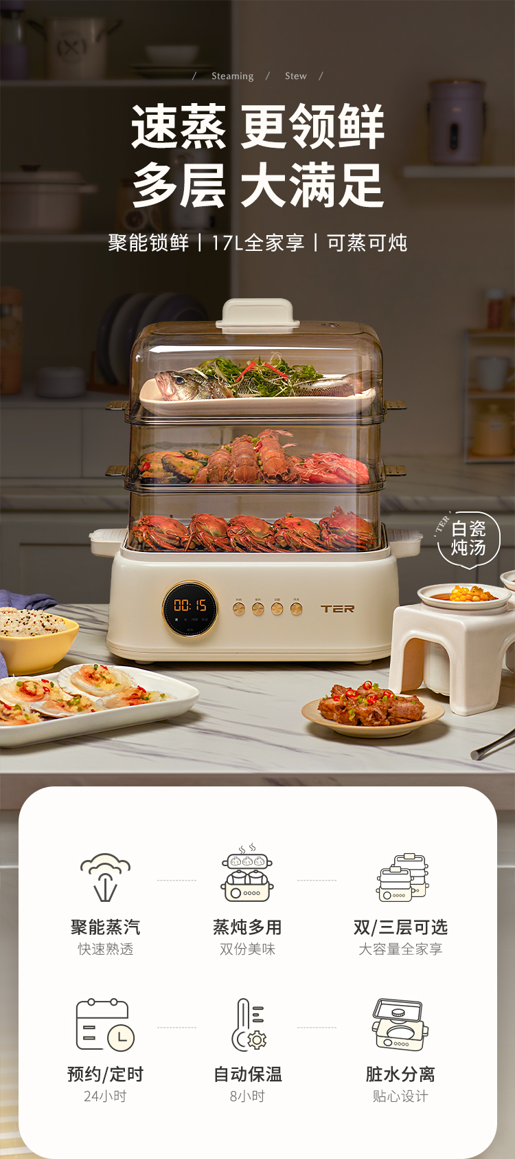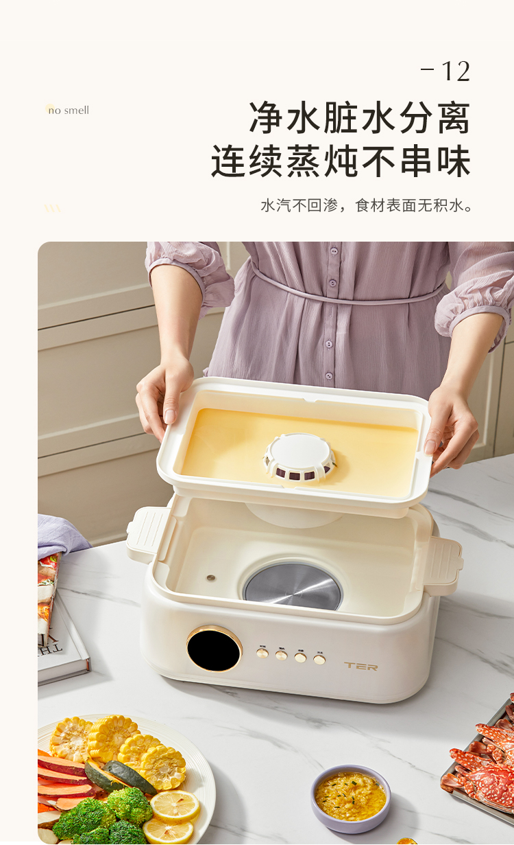 TER电蒸锅分区控制多功能家用大容量蒸炖锅蒸炖一体全自动蒸汽锅