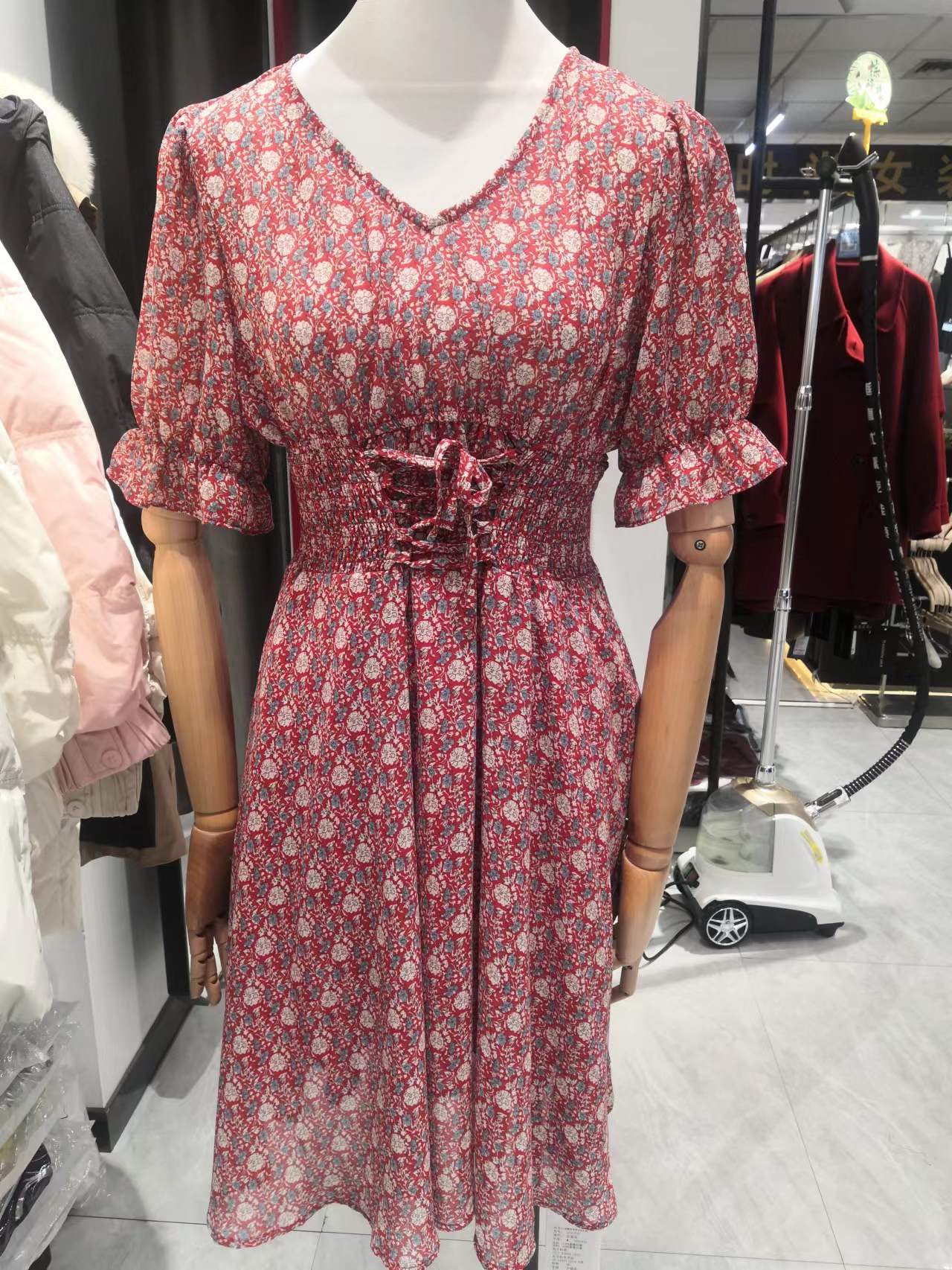 特点:碎花连衣裙,柔软舒适透气,适合90-130斤穿着