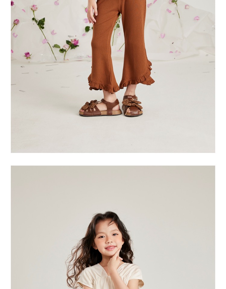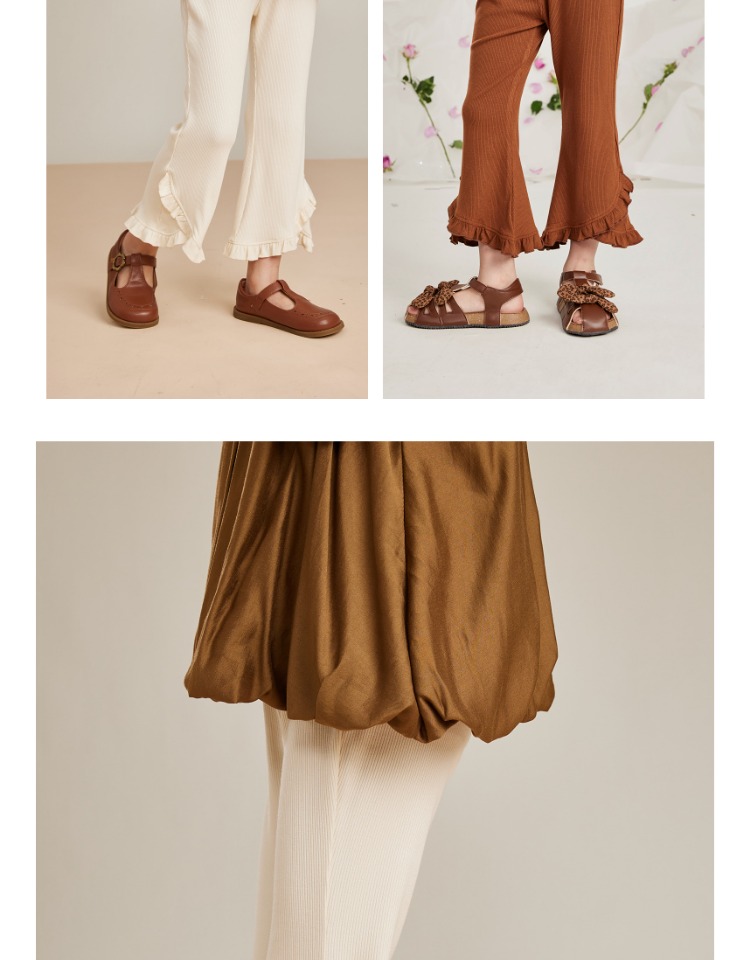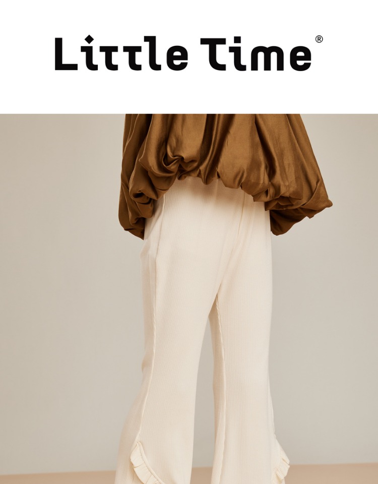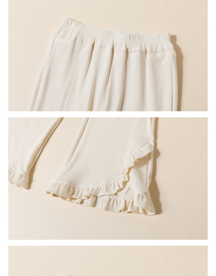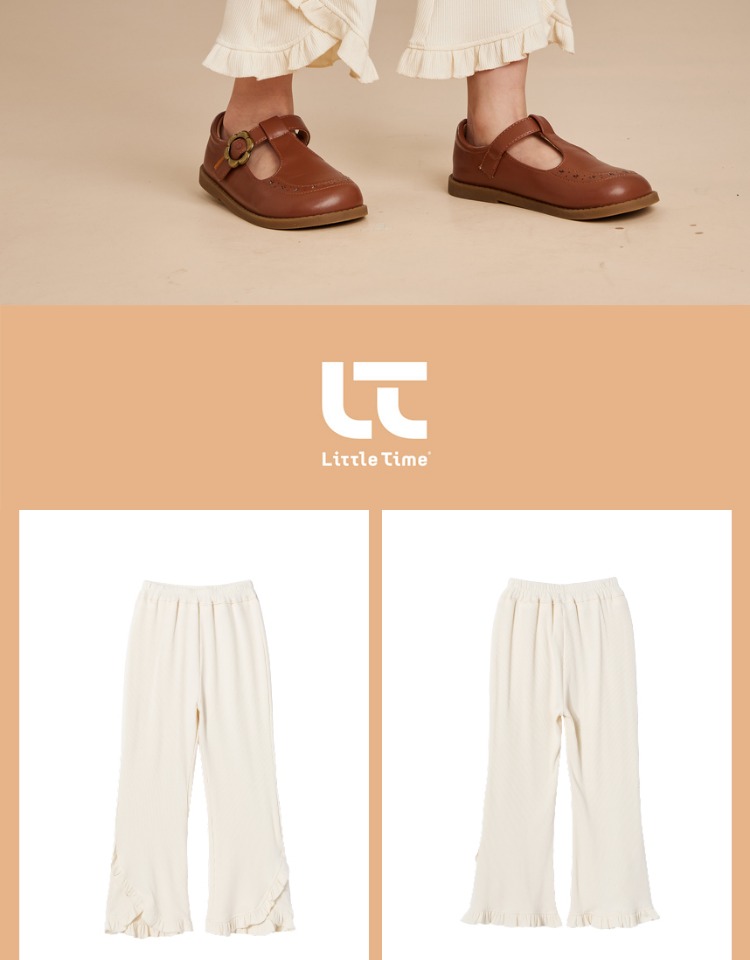 littletime女童荷叶边休闲裤2023新款白色微叭裤垂感九分长裤