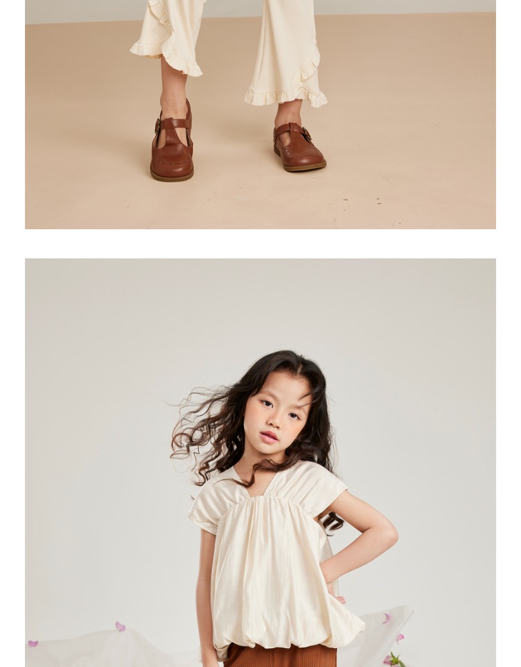 littletime女童t恤法式优雅2025夏季洋气韩版儿童纯棉宽松短袖