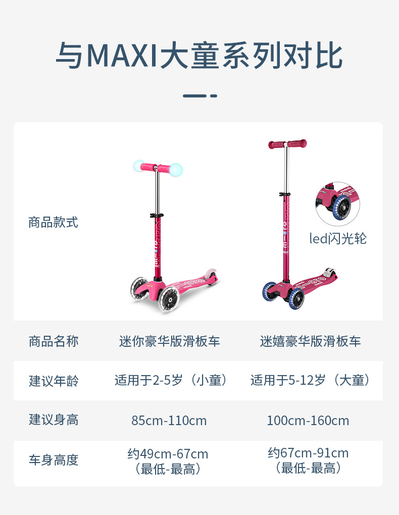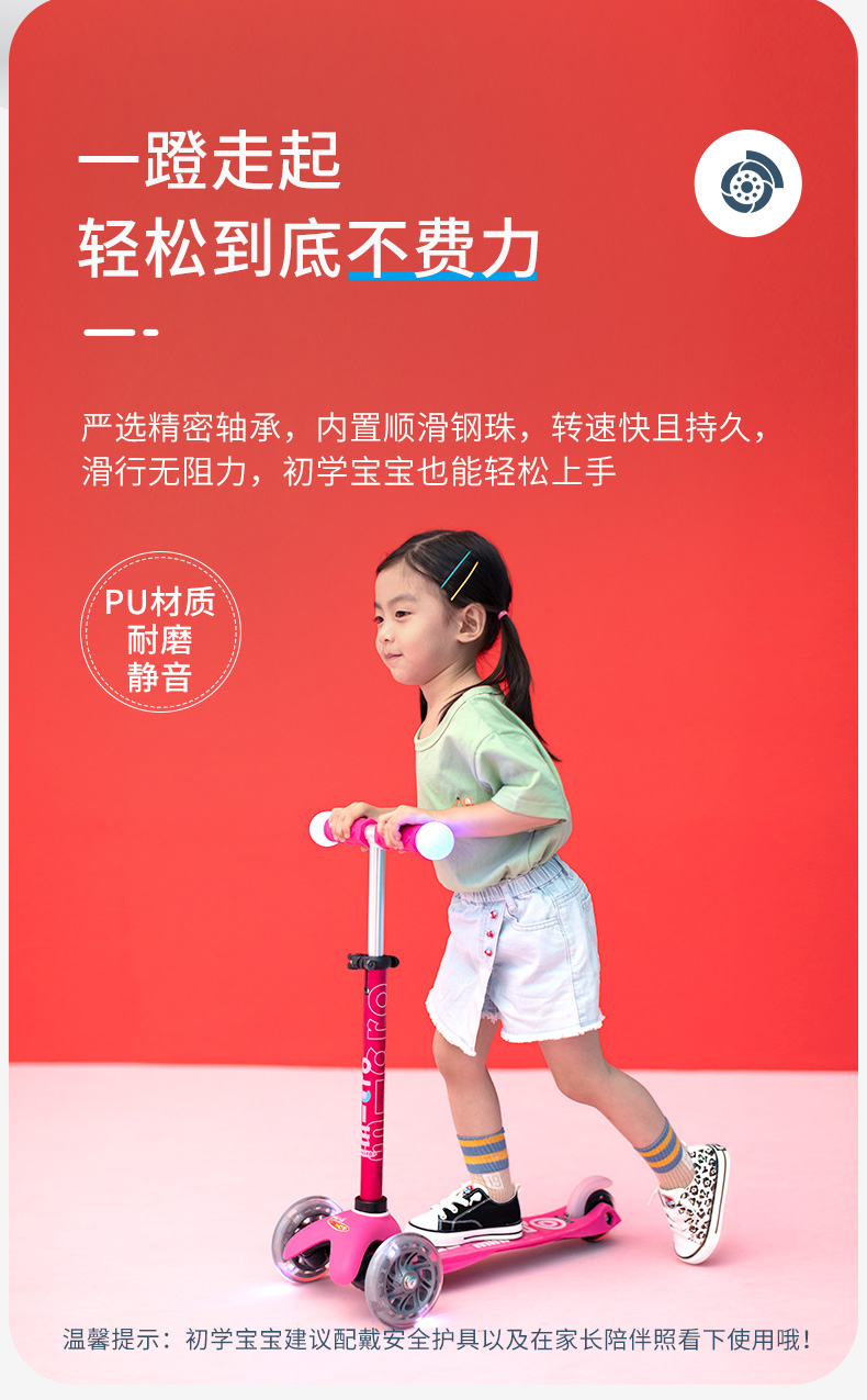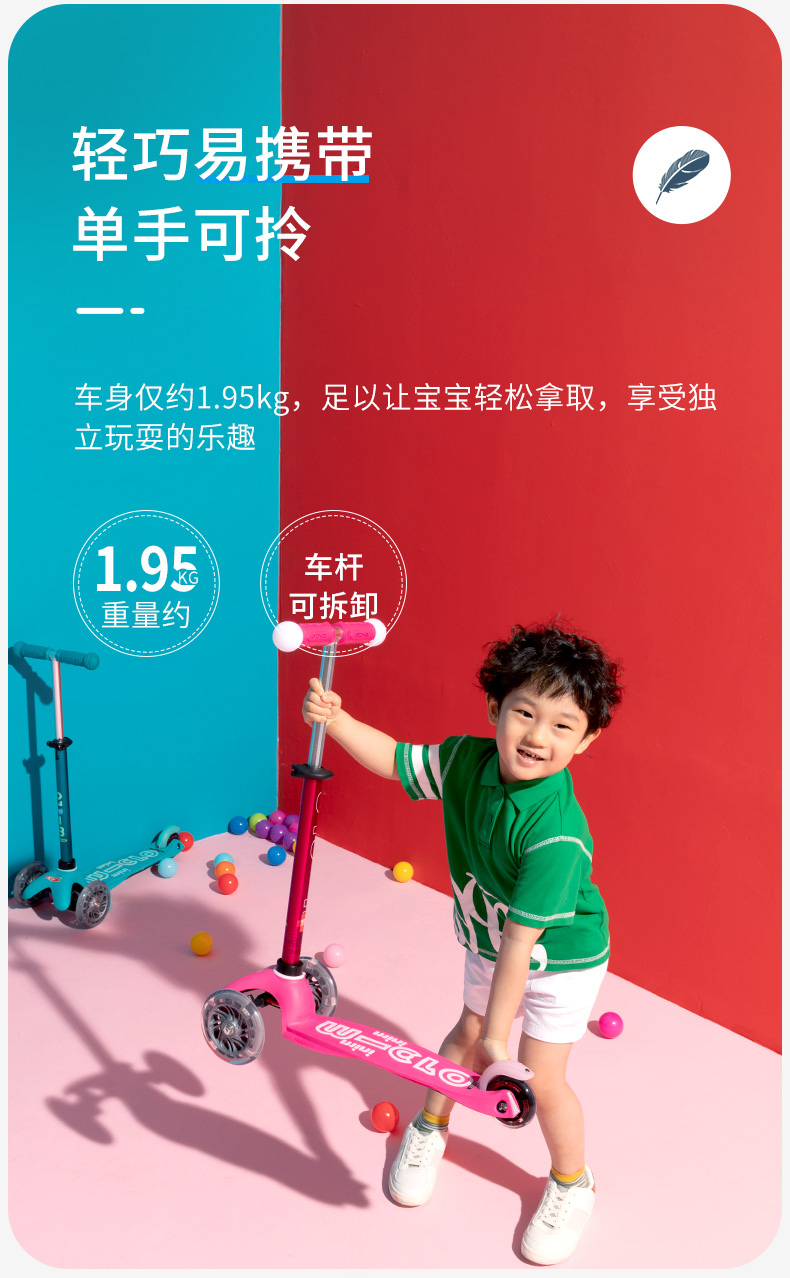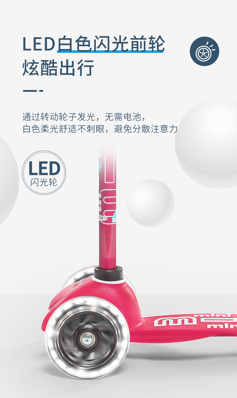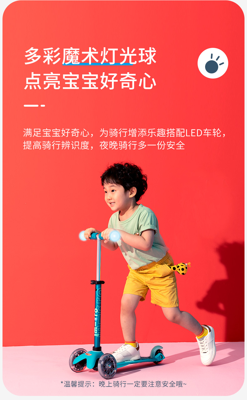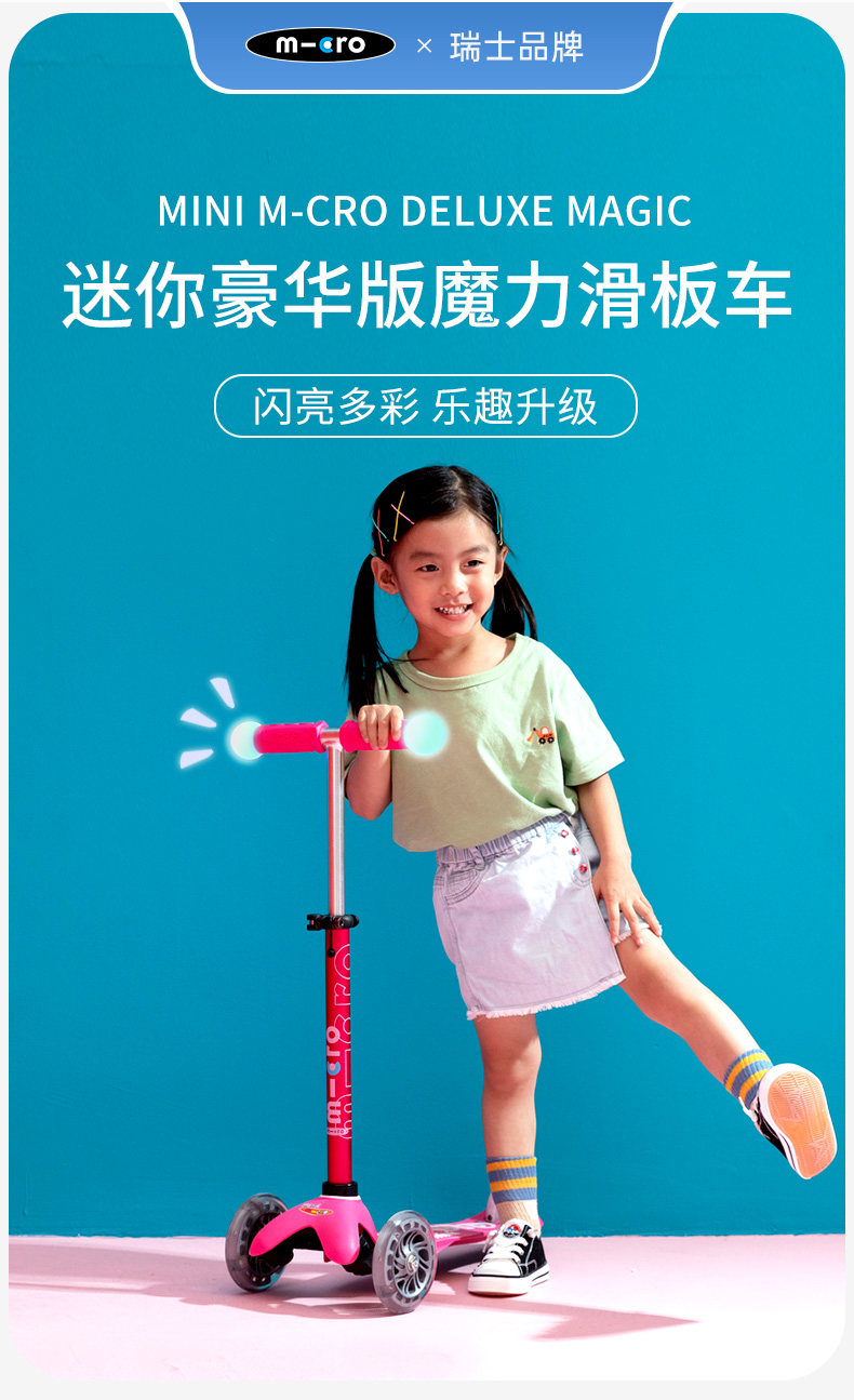 瑞士Micro迈古|Mini Delux Magic 迈古儿童豪华版魔力滑板车|闪光轮和魔术灯手柄| 迈古溜溜车初学者发光宝宝滑滑车2-5岁