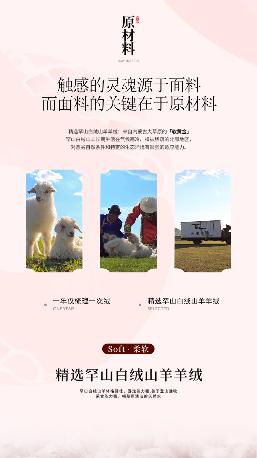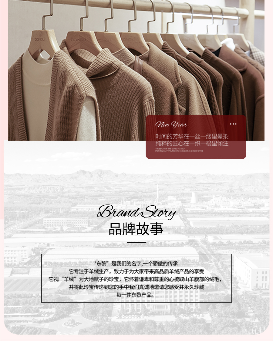 东黎羊绒是赤峰东荣集团自主品牌,自有牧场/羊绒制品全产业链优势,实现了羊绒从“牧场”到“商场”的华丽转变。