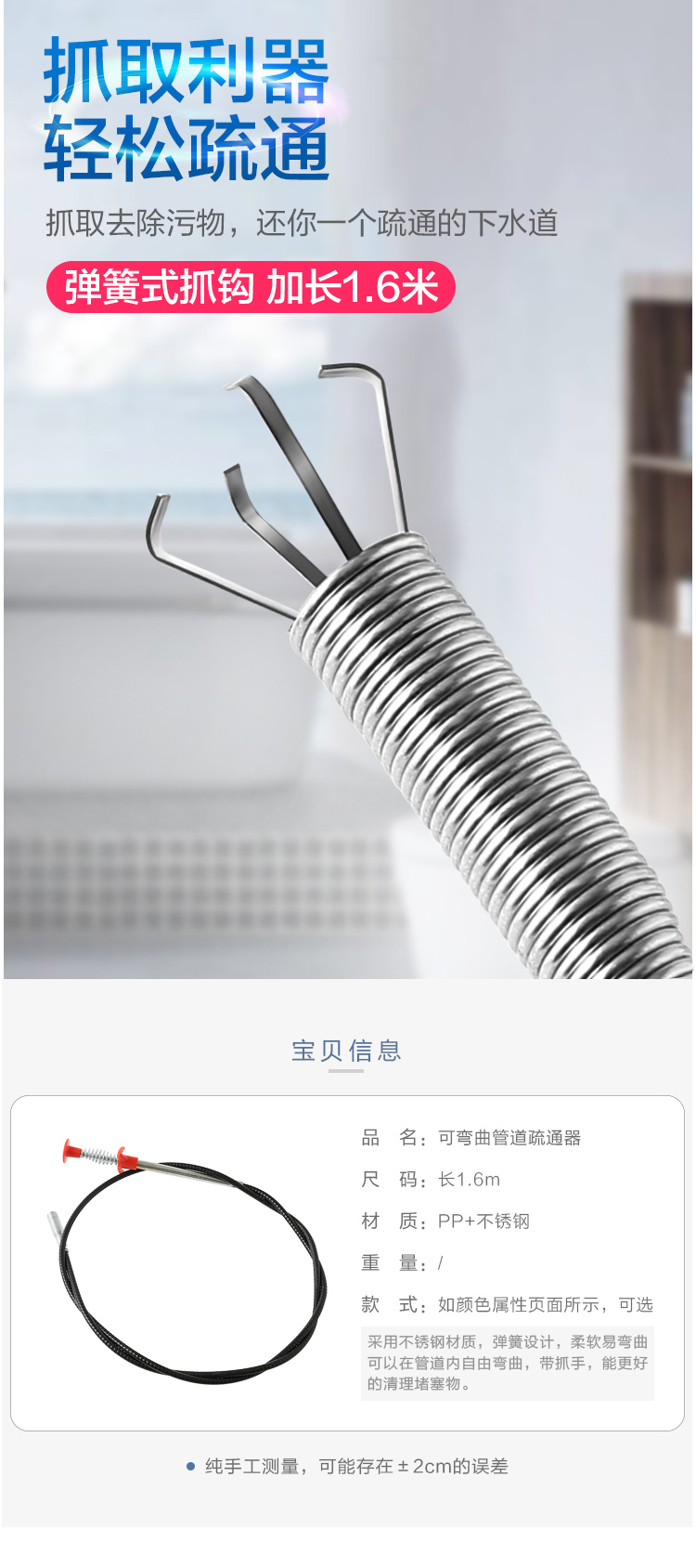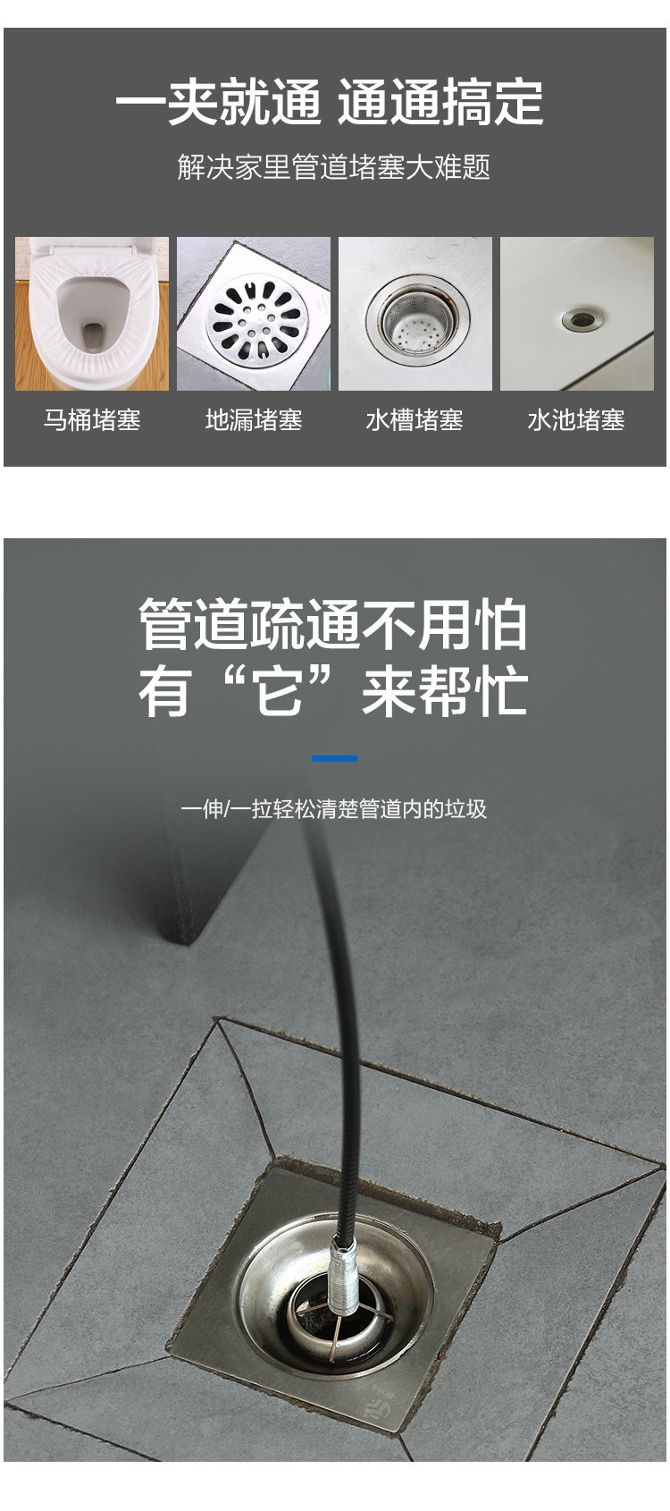 下水道管道疏通器马桶堵塞家用通厕所神器神爪疏通下水道专用工具