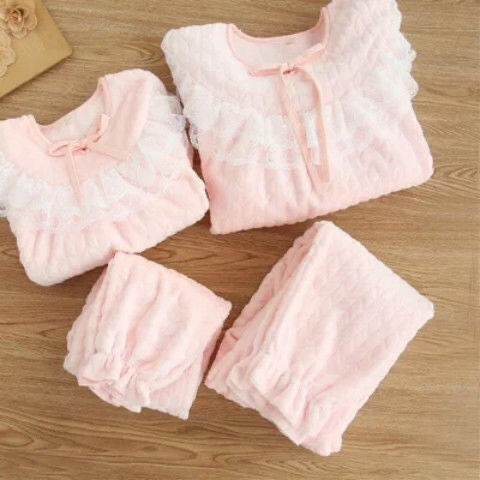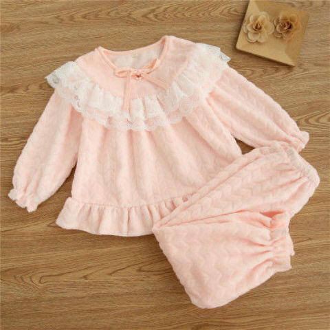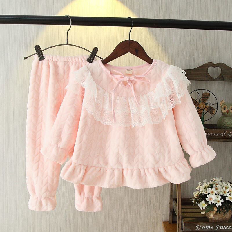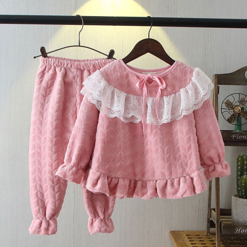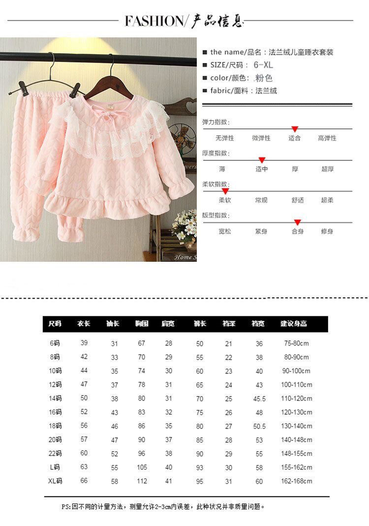 儿童睡衣女童秋冬季法兰绒加厚款珊瑚绒女孩母女装亲子家居服套装