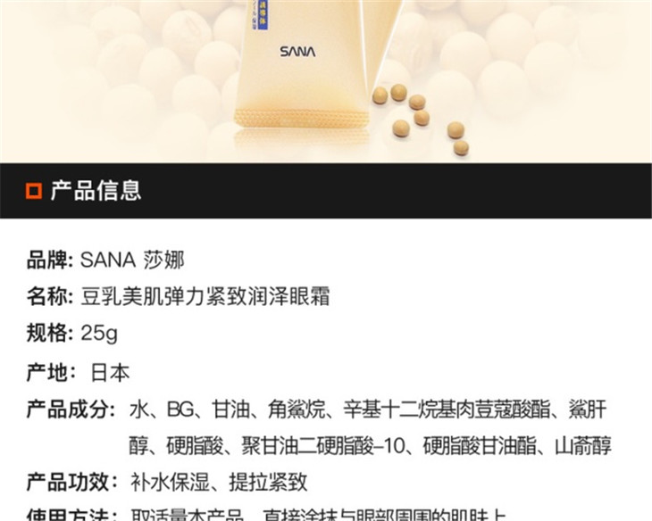 【香港直邮】SANA 莎娜 豆乳美肌弹力眼霜 25g