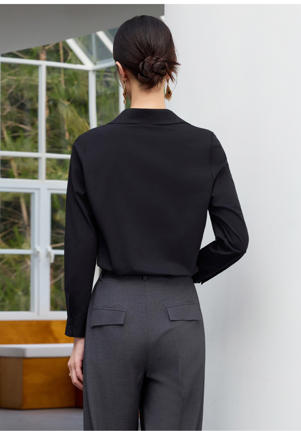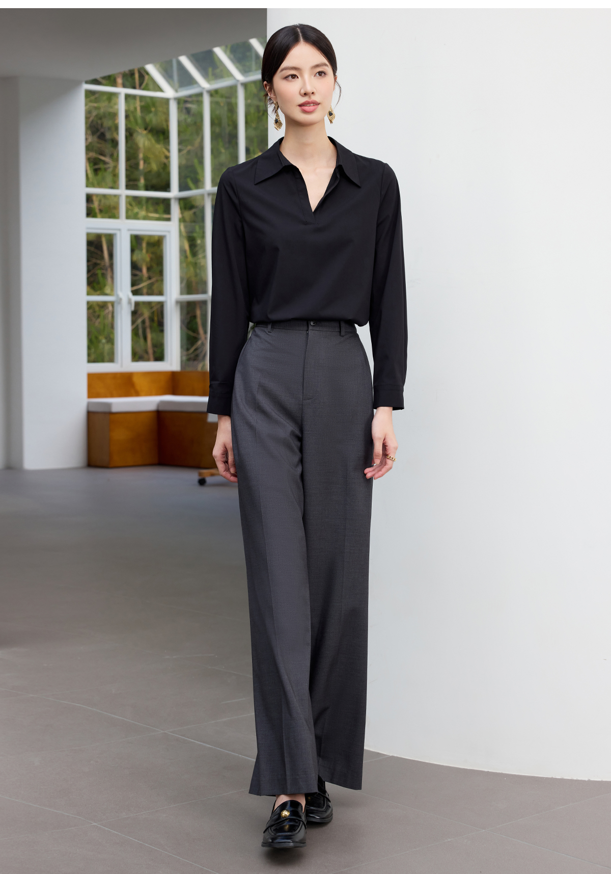 IWY/黑色V领职业衬衫女气质百搭衬衣工装高级感教资面试职业装25B755