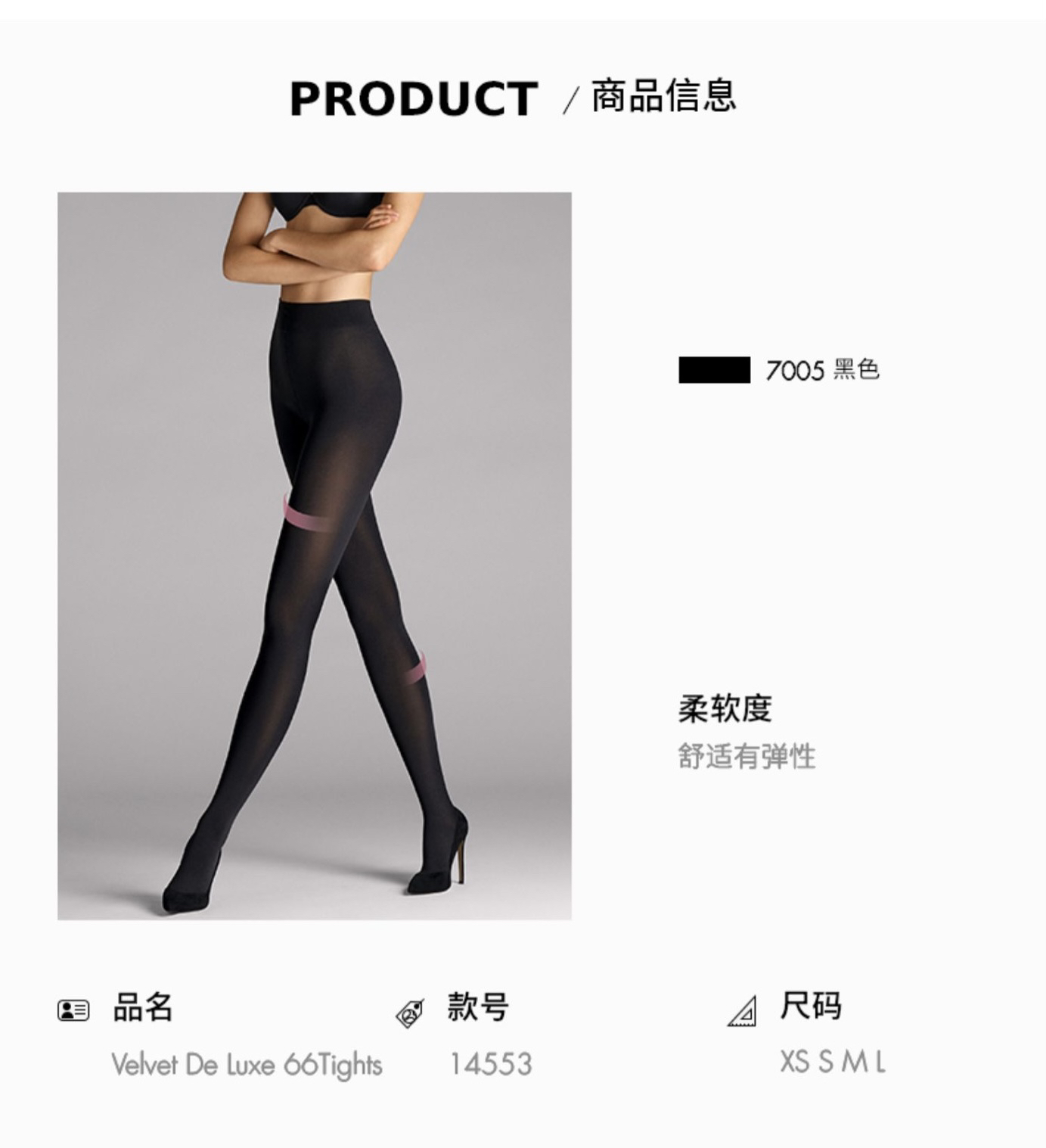 wolford 14553 天鹅绒66D塑腿连裤袜 700元/2双