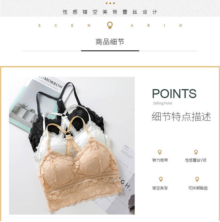 2020新款蕾丝美背裹胸抹胸后背交叉吊带小背心防走光加厚杯胸垫七夕情人节