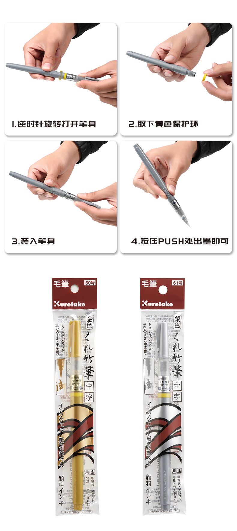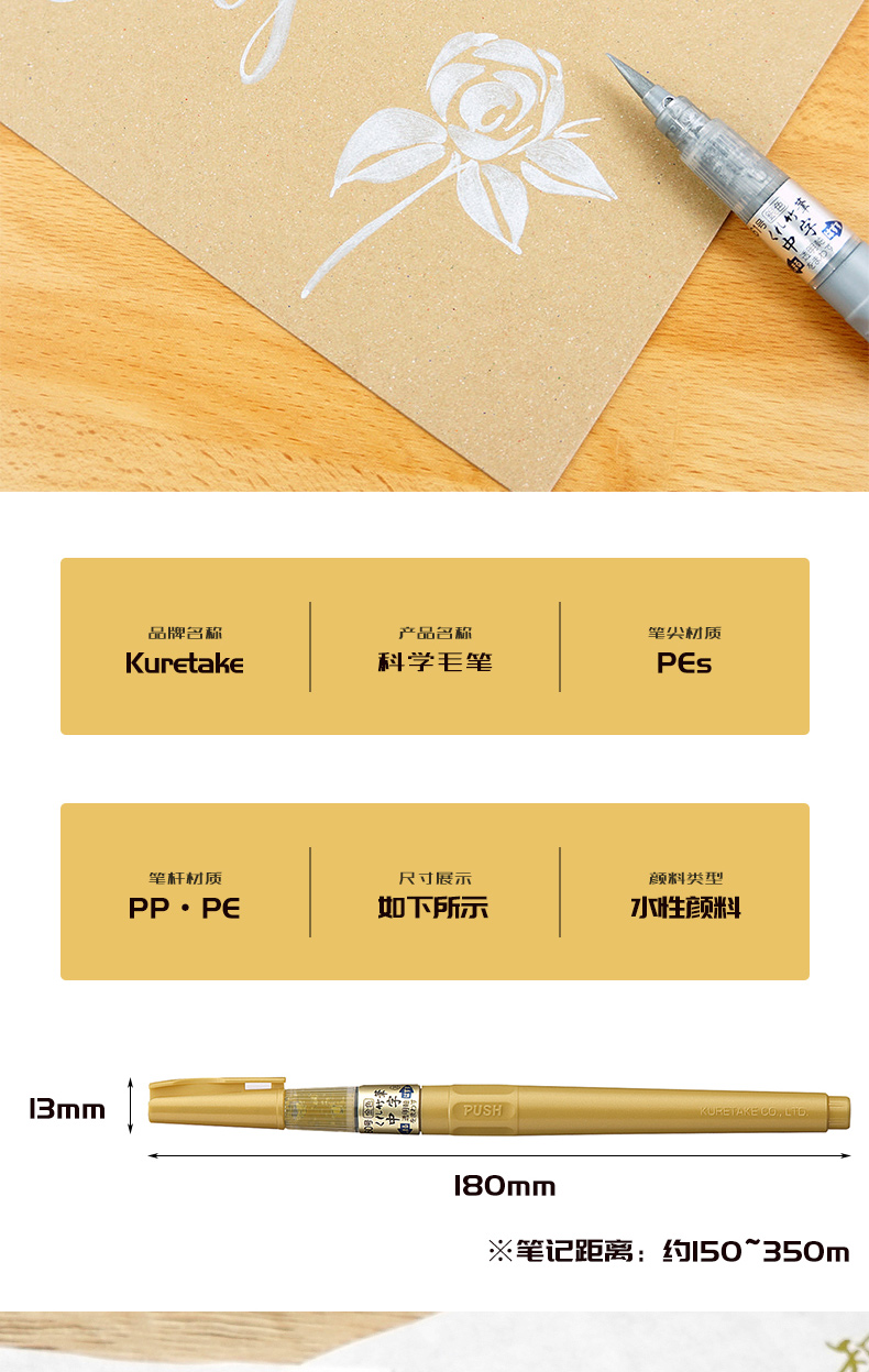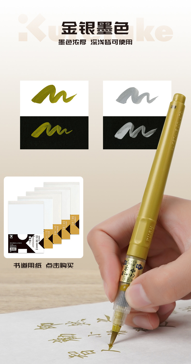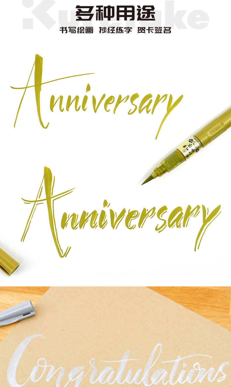 日本Kuretake吴竹/金银科学毛笔/抄经/便携/练字/绘画/贺卡/秀丽笔