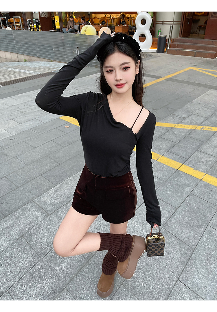 清仓捡漏 LINCHAOZHNAG 【栗子棕】老钱秋冬丝绒短裤 LK240455