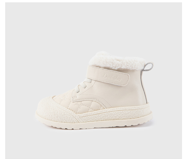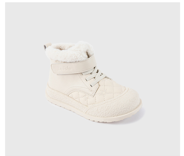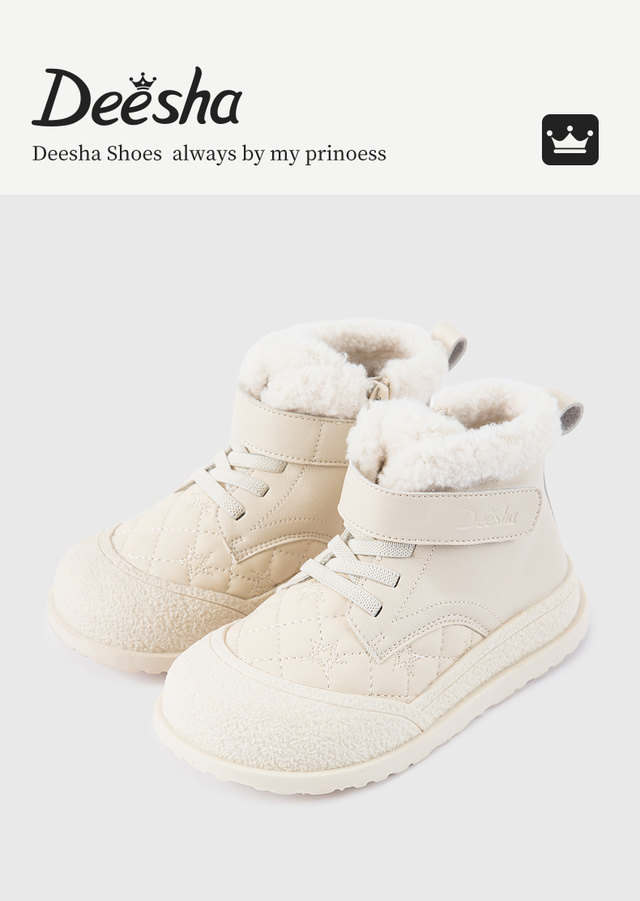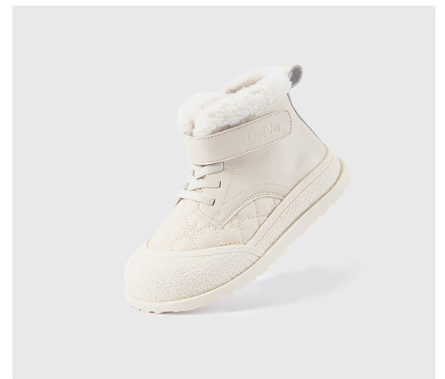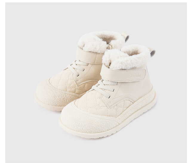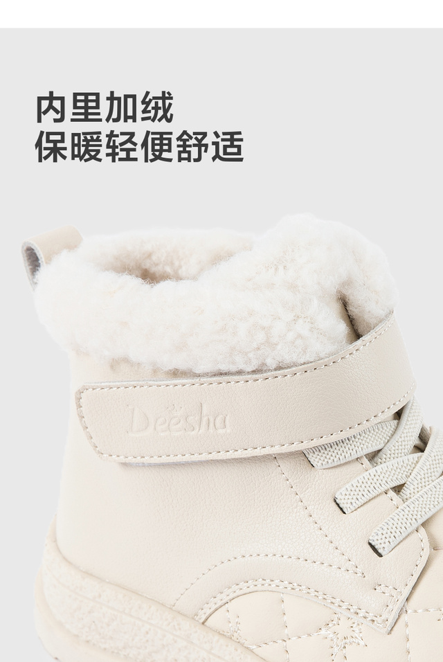 笛莎Deesha 女童童鞋2025冬季新款保暖加绒短筒皮靴