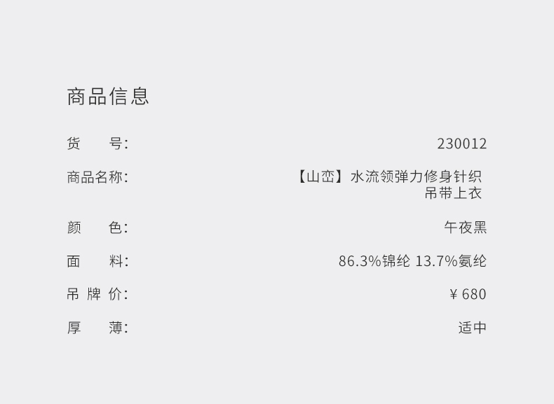 【山峦】水流领弹力修身针织吊带上衣/230012
