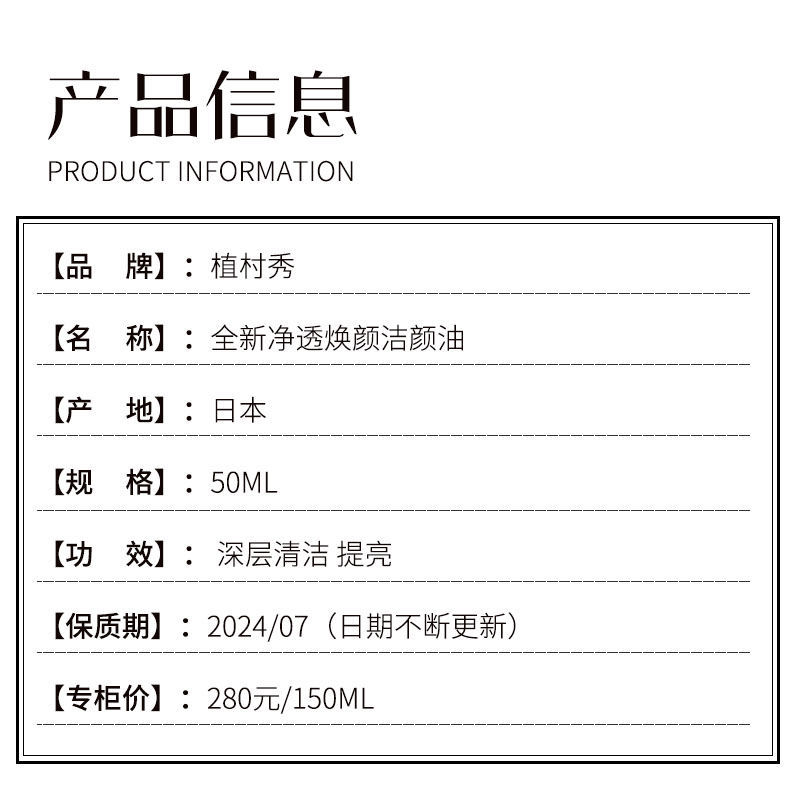 【爆款超低价预售 急单慎拍】植村秀全新净透焕颜洁颜油50ml中小样 温和卸妆改善暗沉 国内专柜
