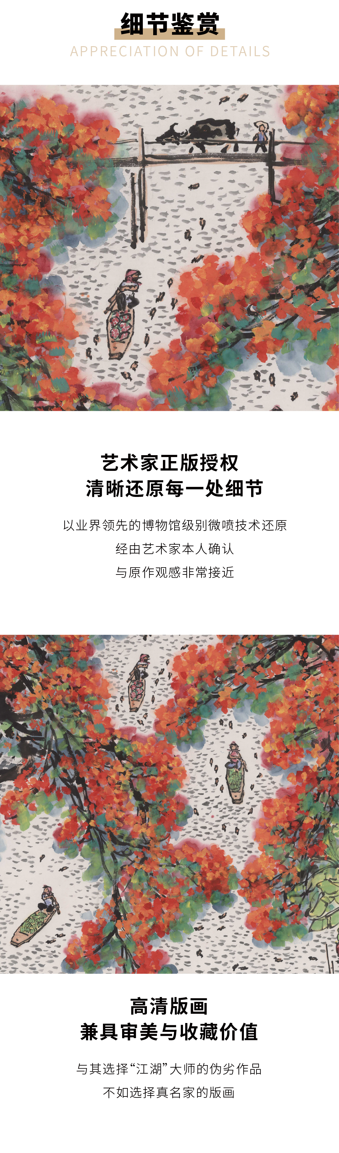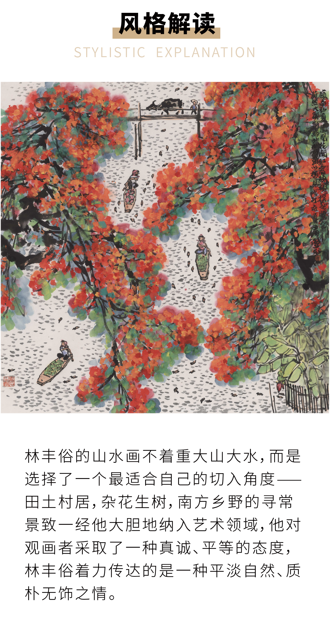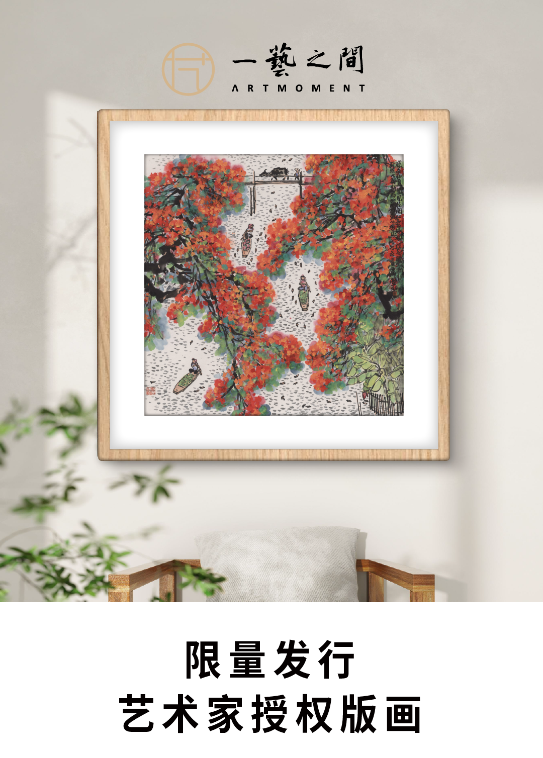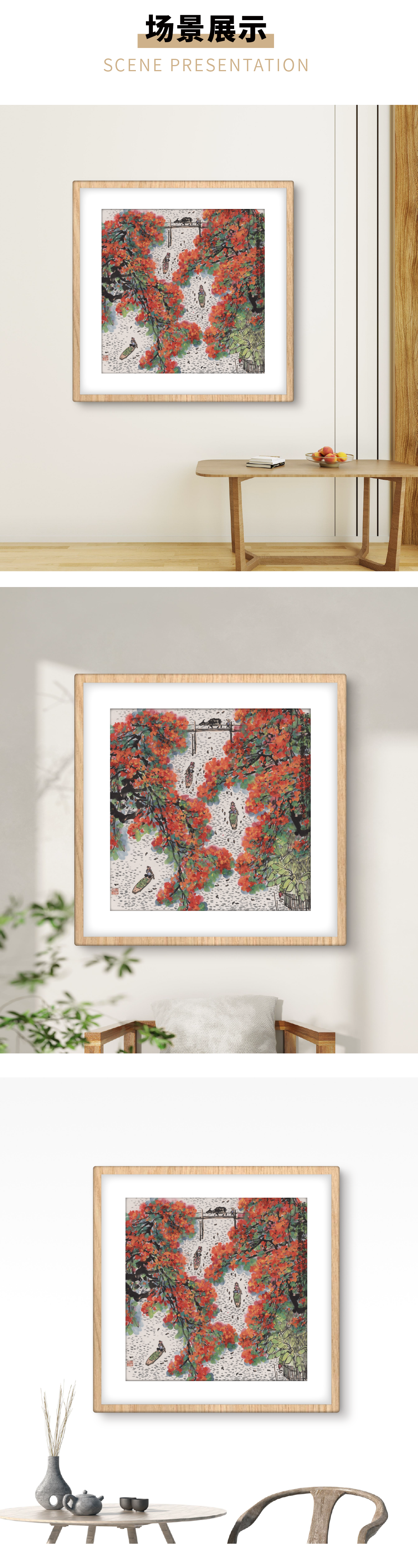 高清复制画 林丰俗《岭南初夏》48cm*48cm 含框 复制装饰画 新中式风格轻盈高清雅致好搭配茶室客厅书房办公室已装框