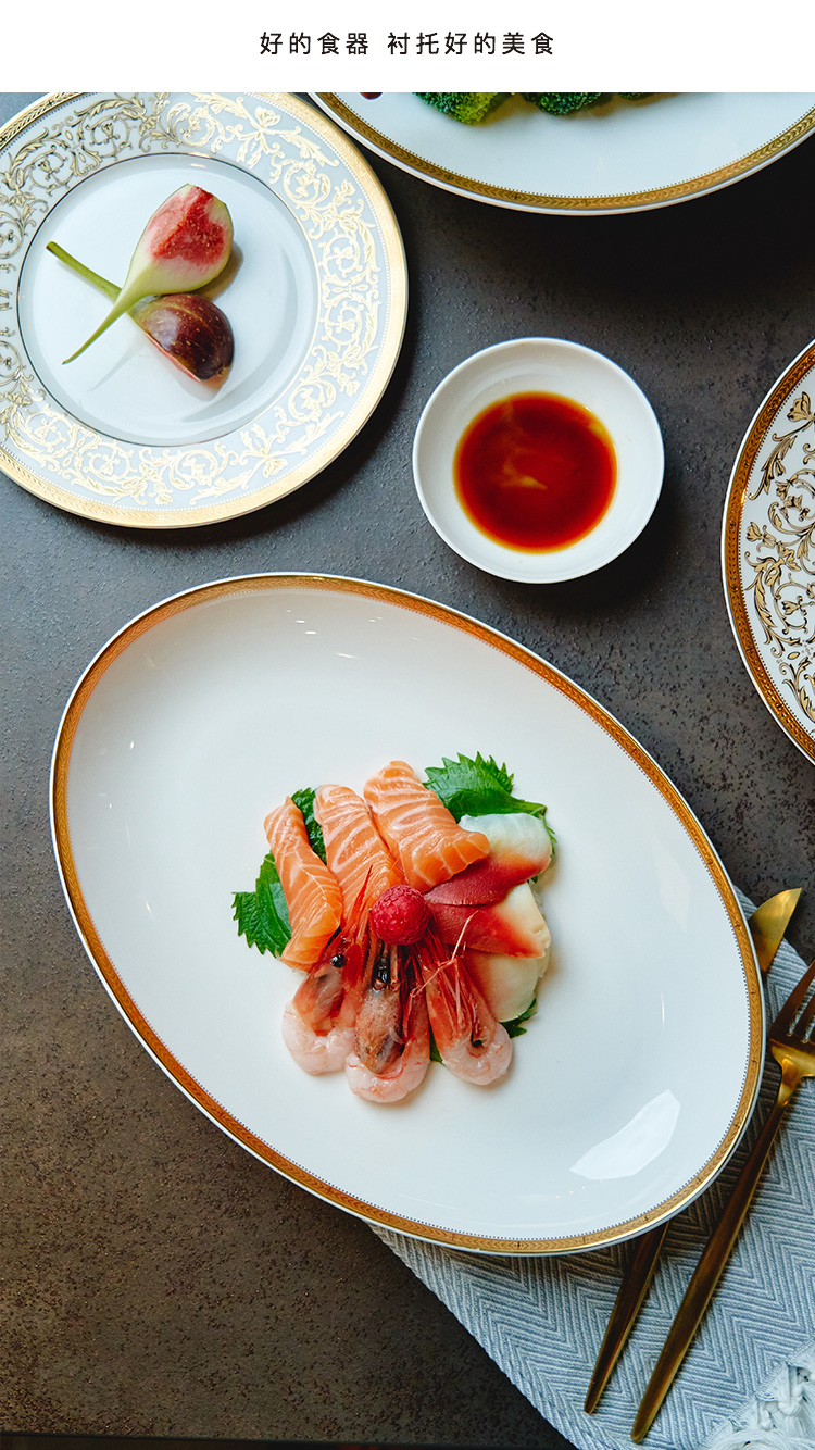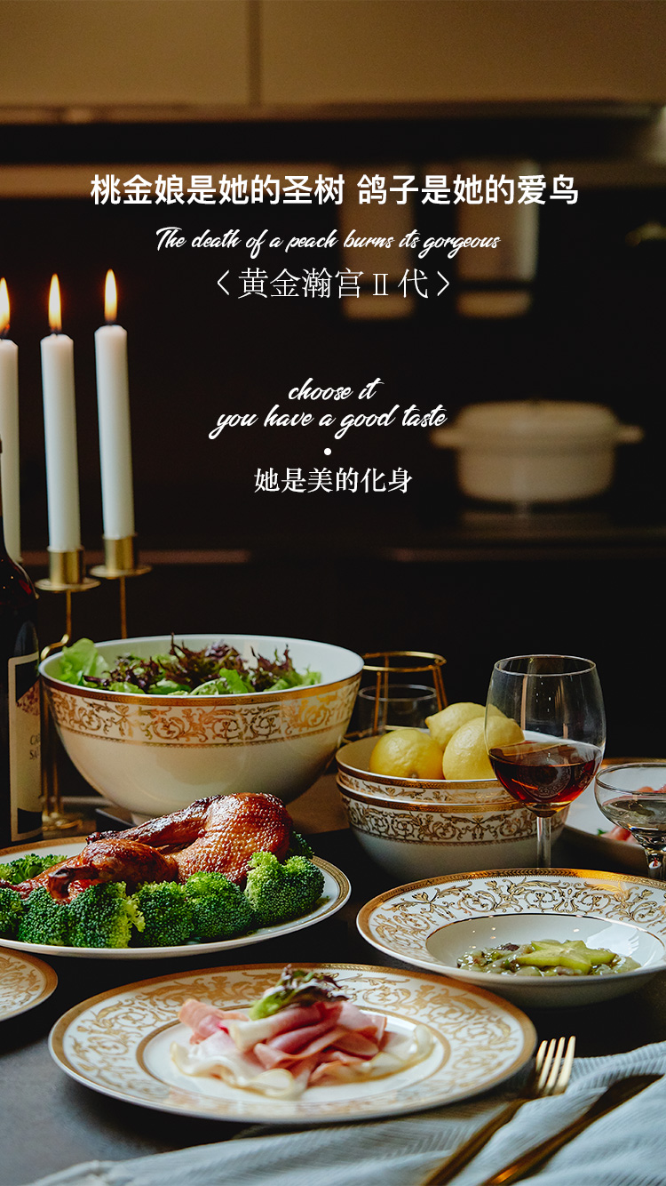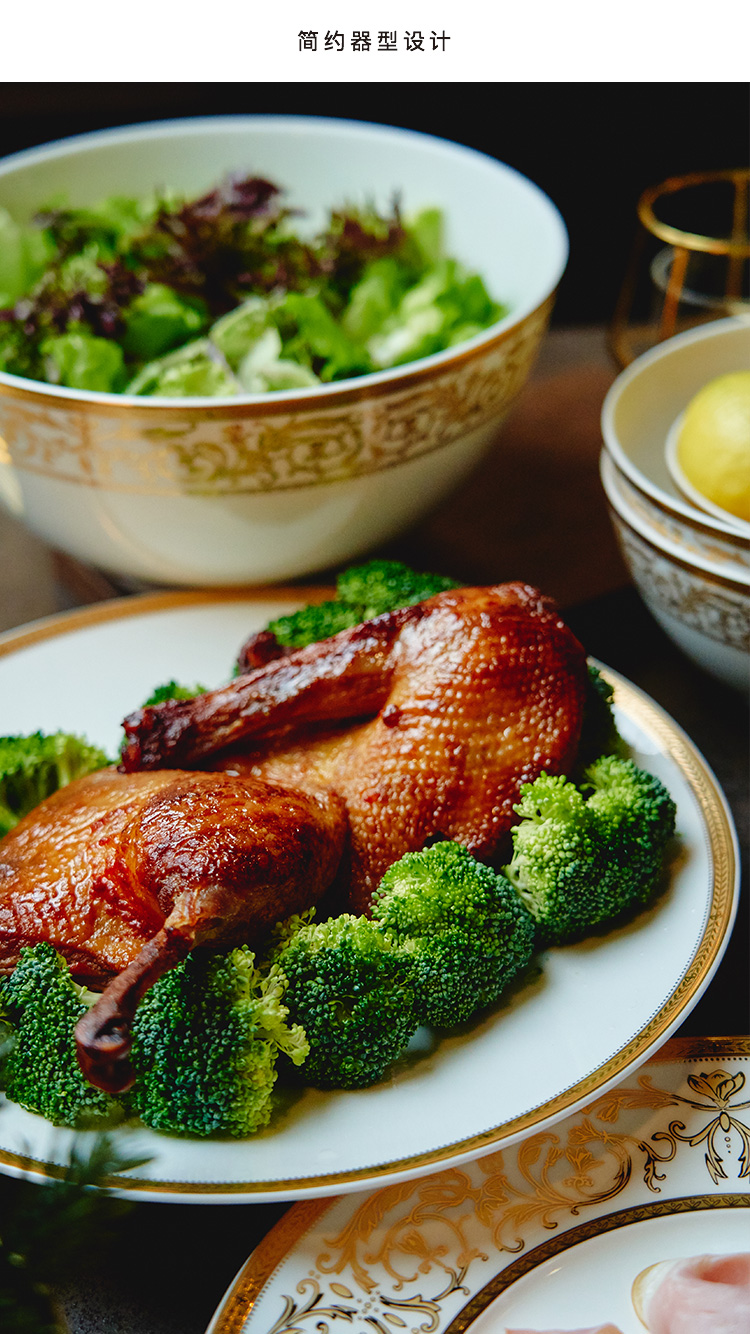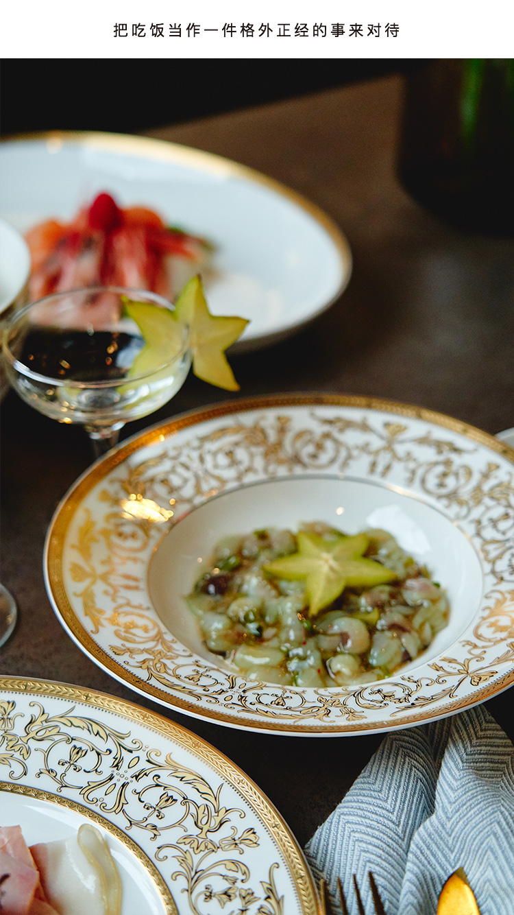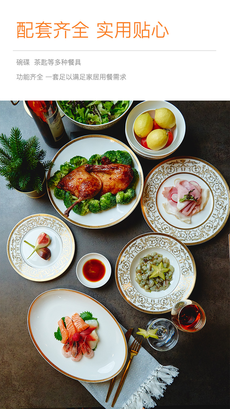 【玛戈隆特】B7F 10人骨瓷餐具套装碗碟套装 欧式轻奢家用碗盘碟 礼盒礼品包装 66头黄金瀚宫