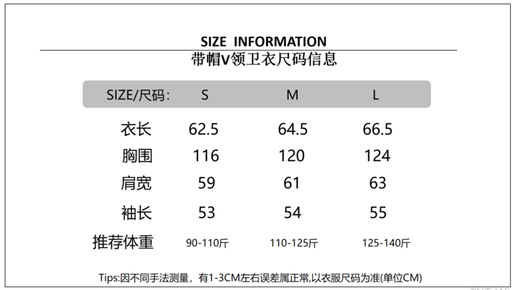 Gesamy带帽V领卫衣尺码表⬇⬇⬇