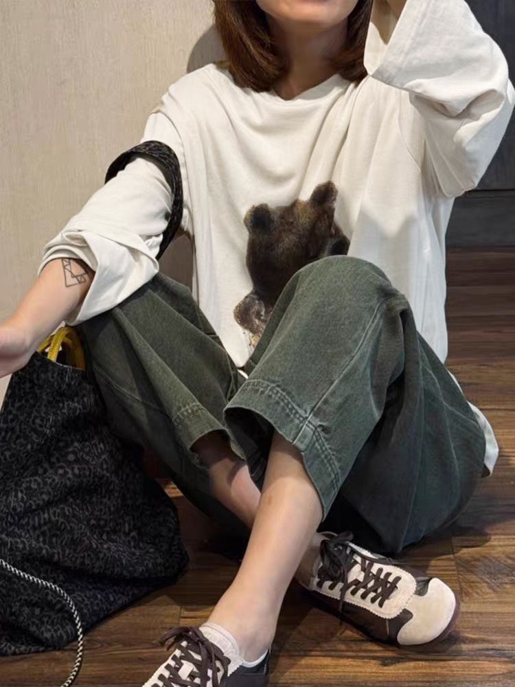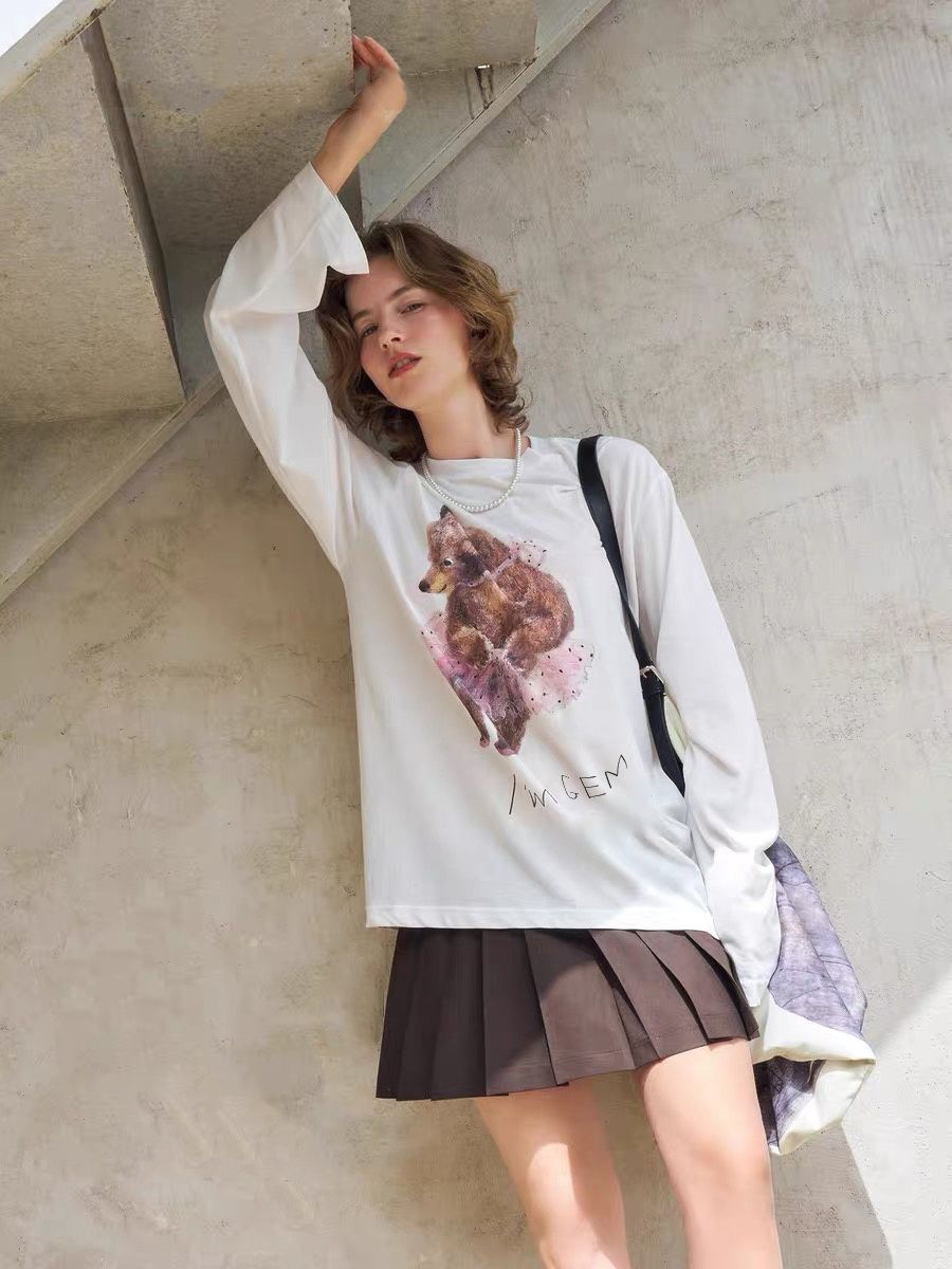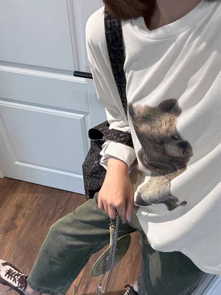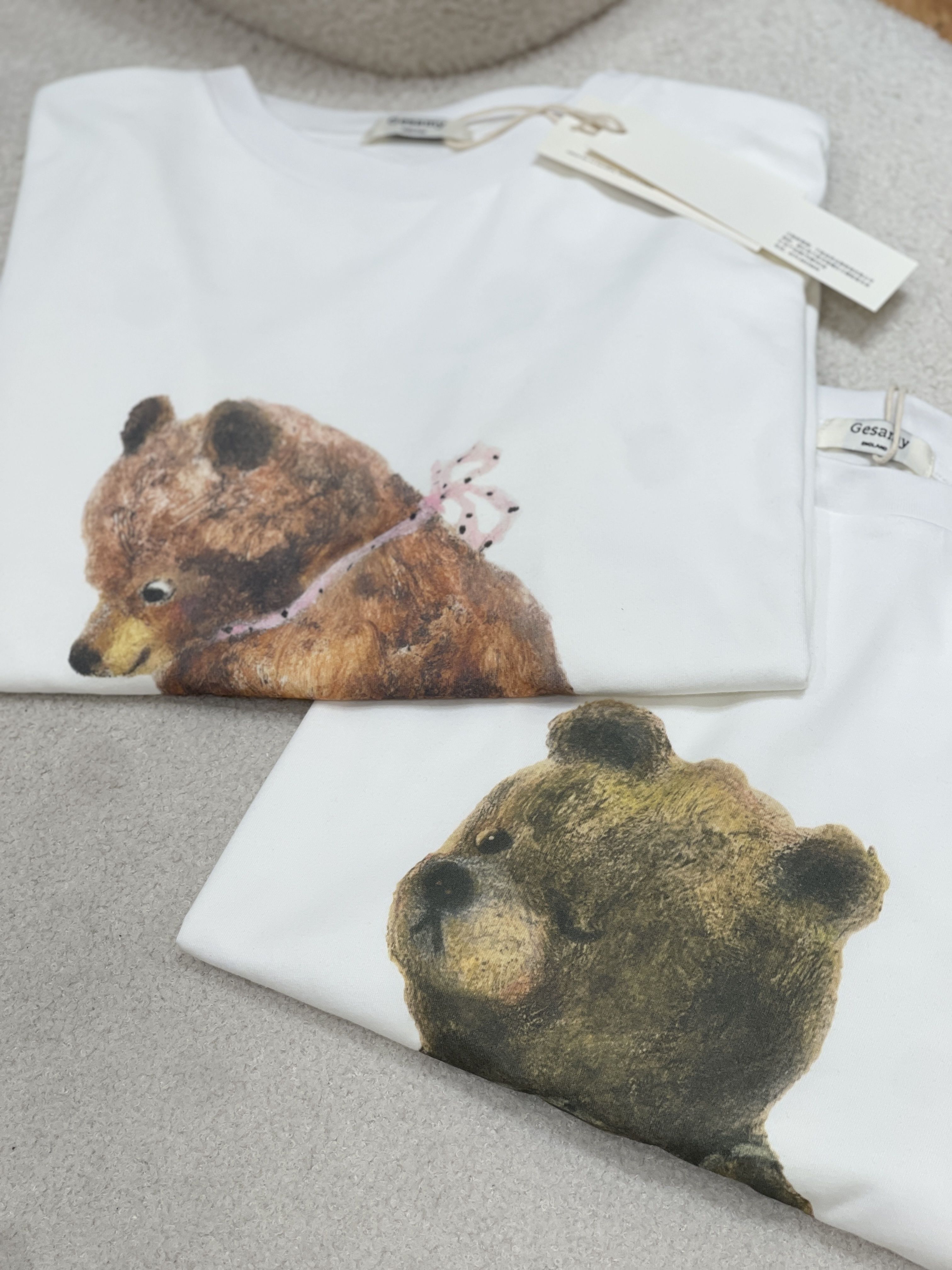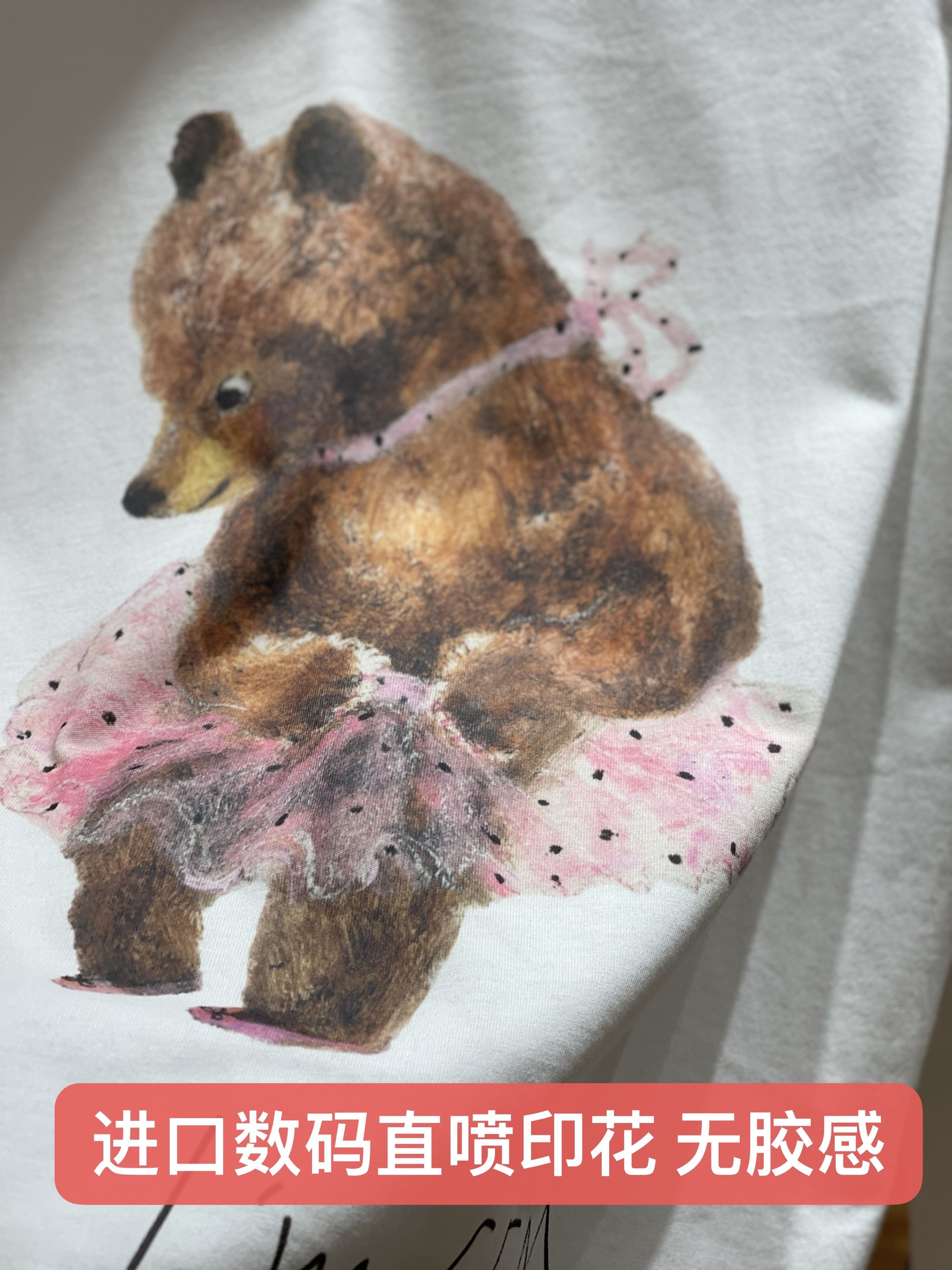手绘小熊印花,进口数码直喷多次洗涤不易掉色