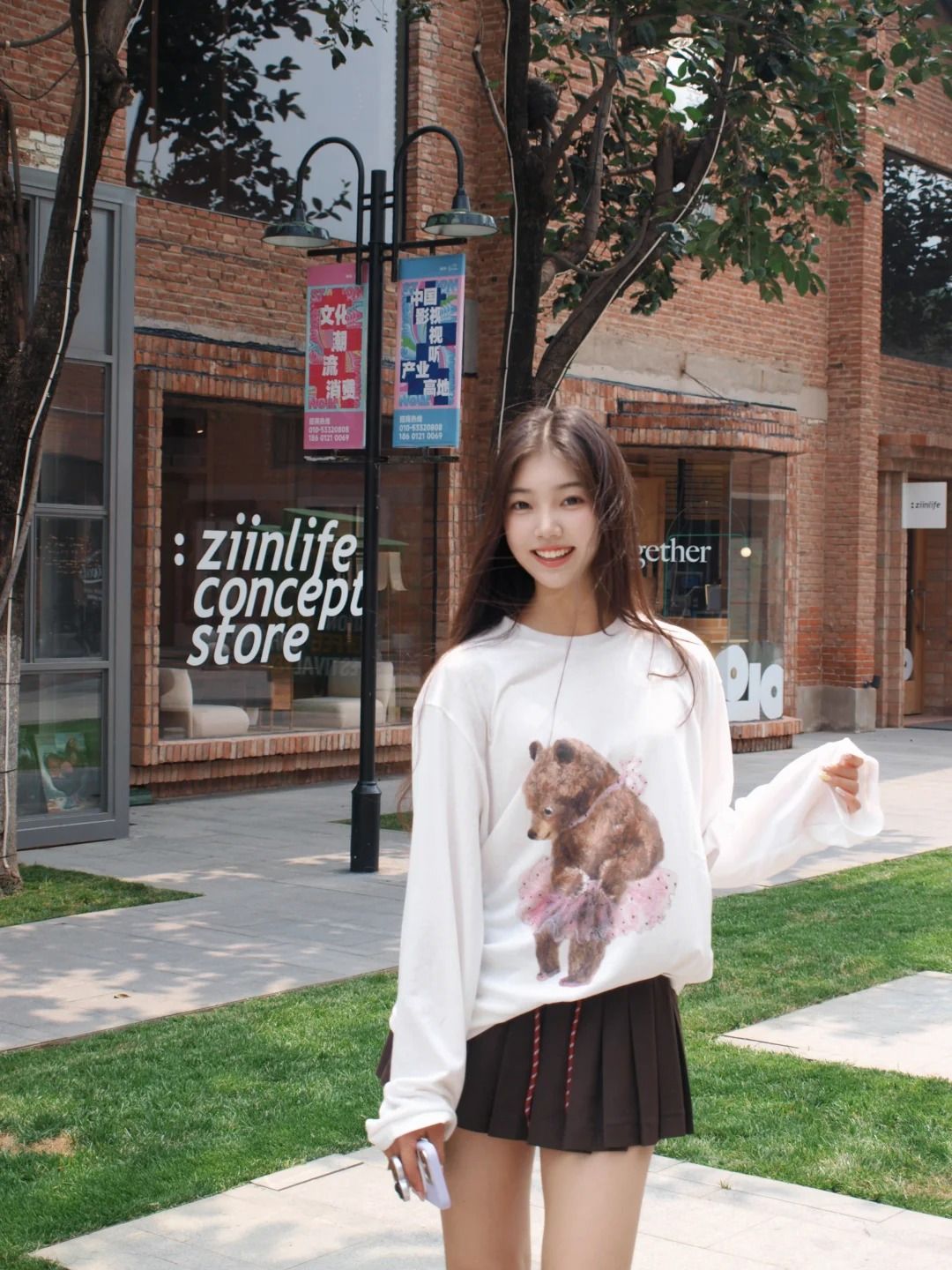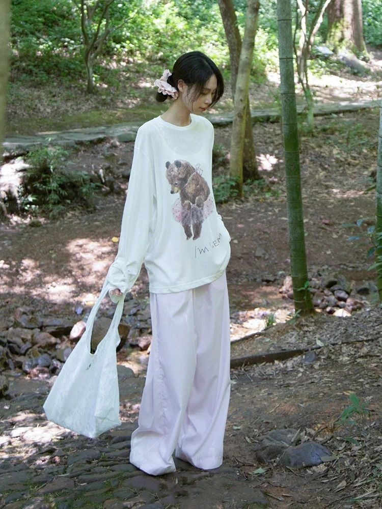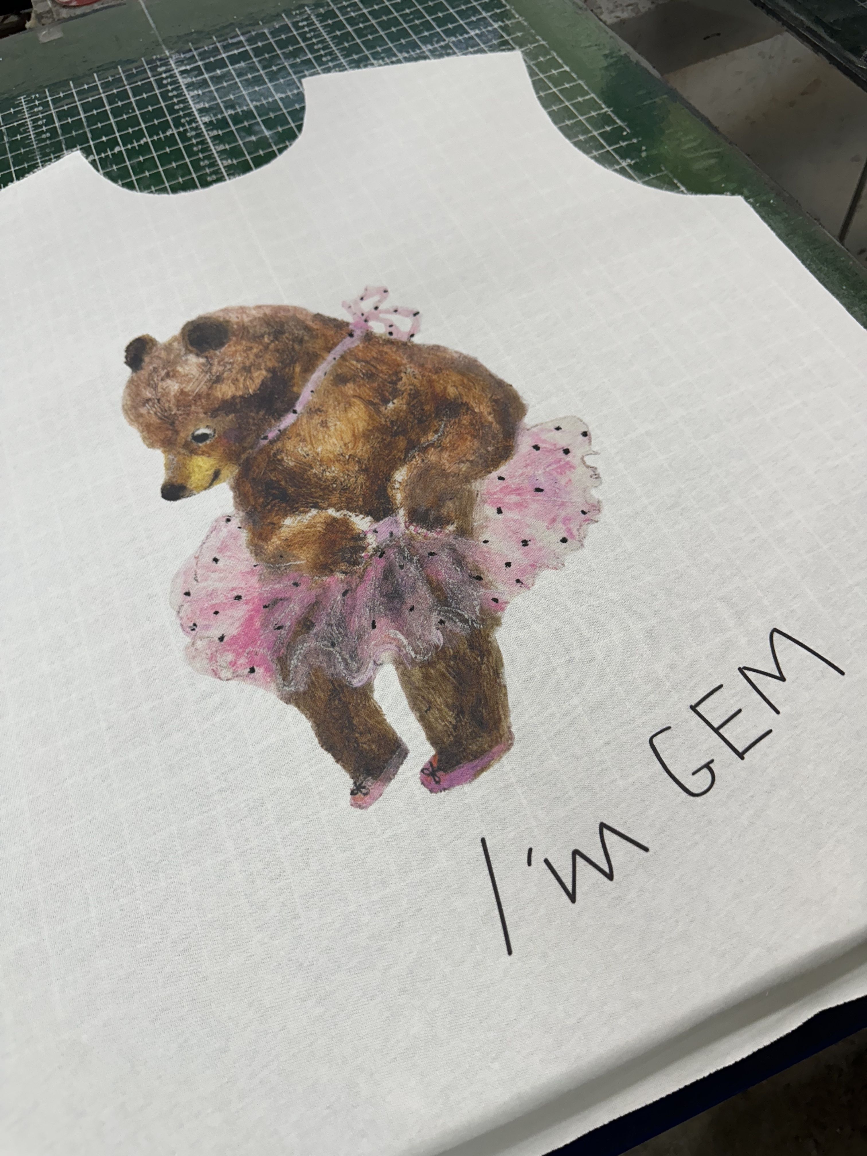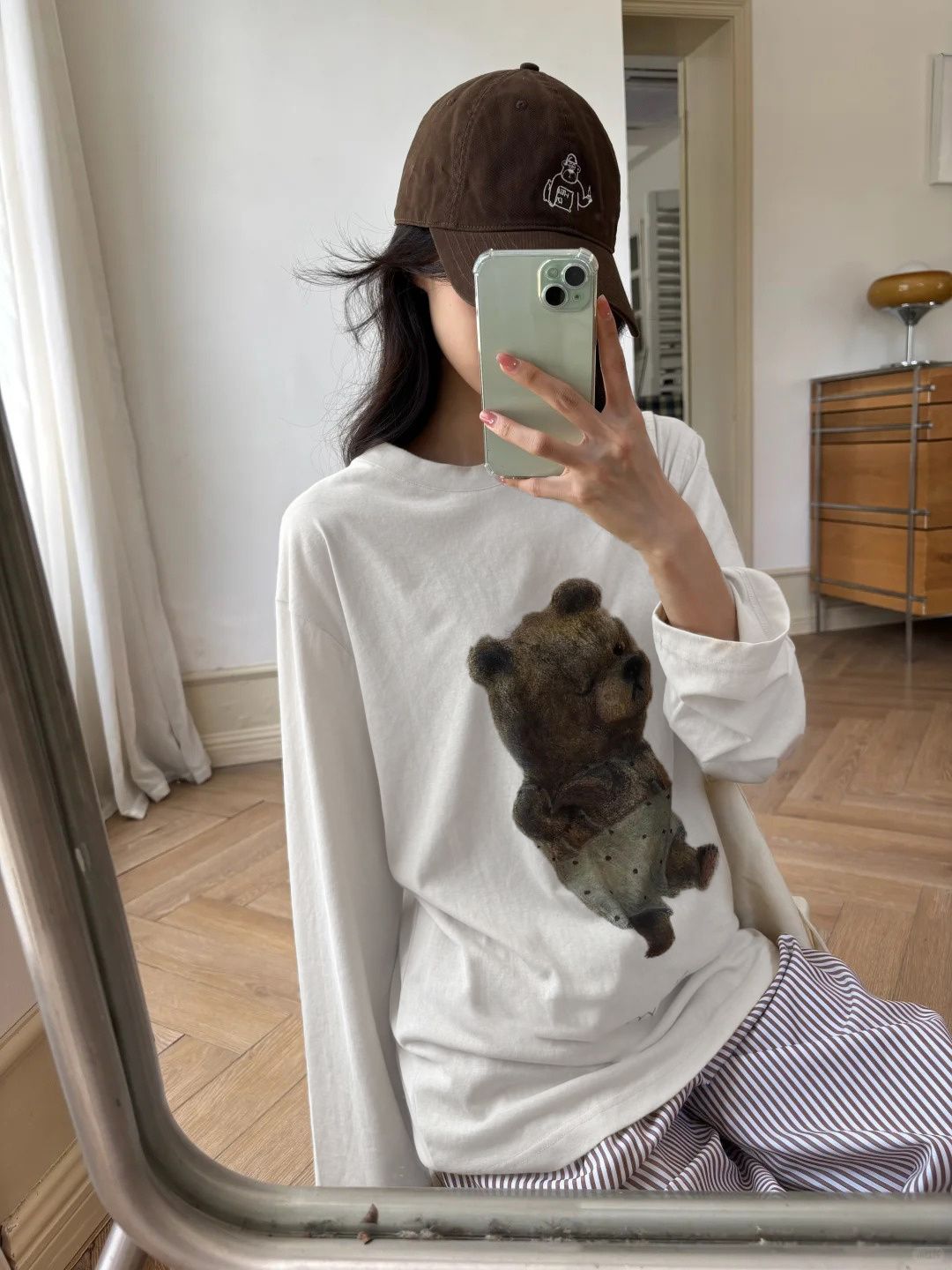 手绘小熊印花,进口数码直喷多次洗涤不易掉色