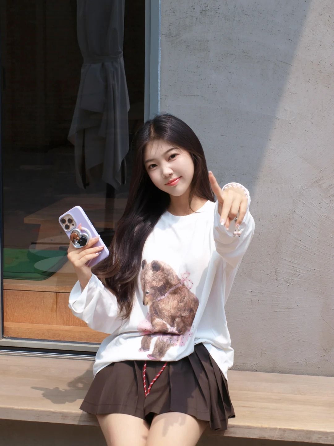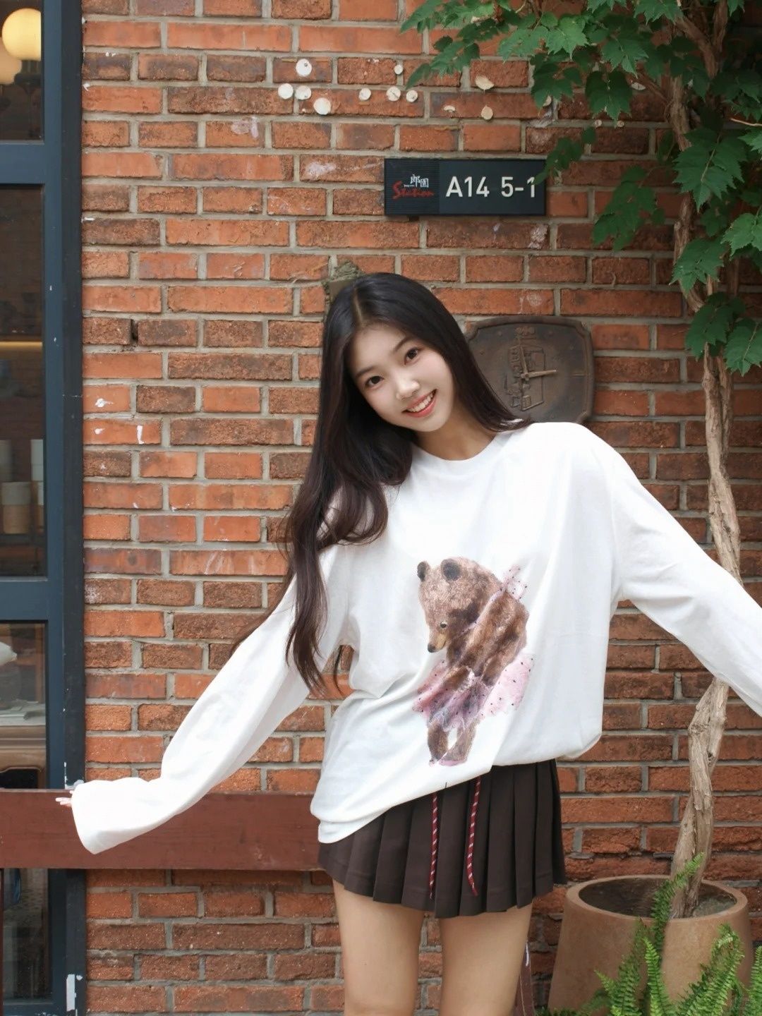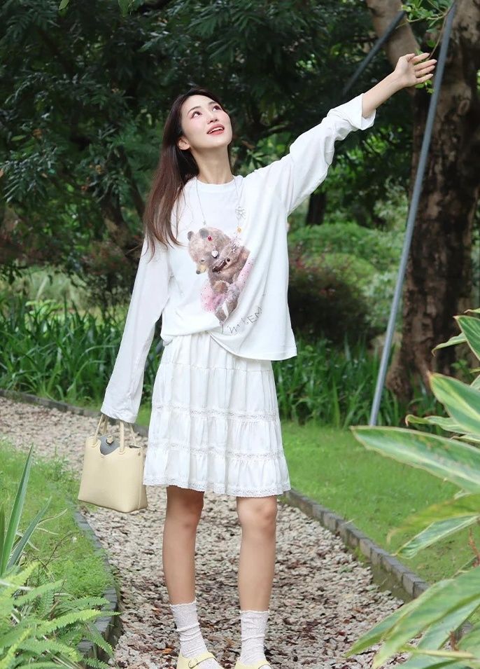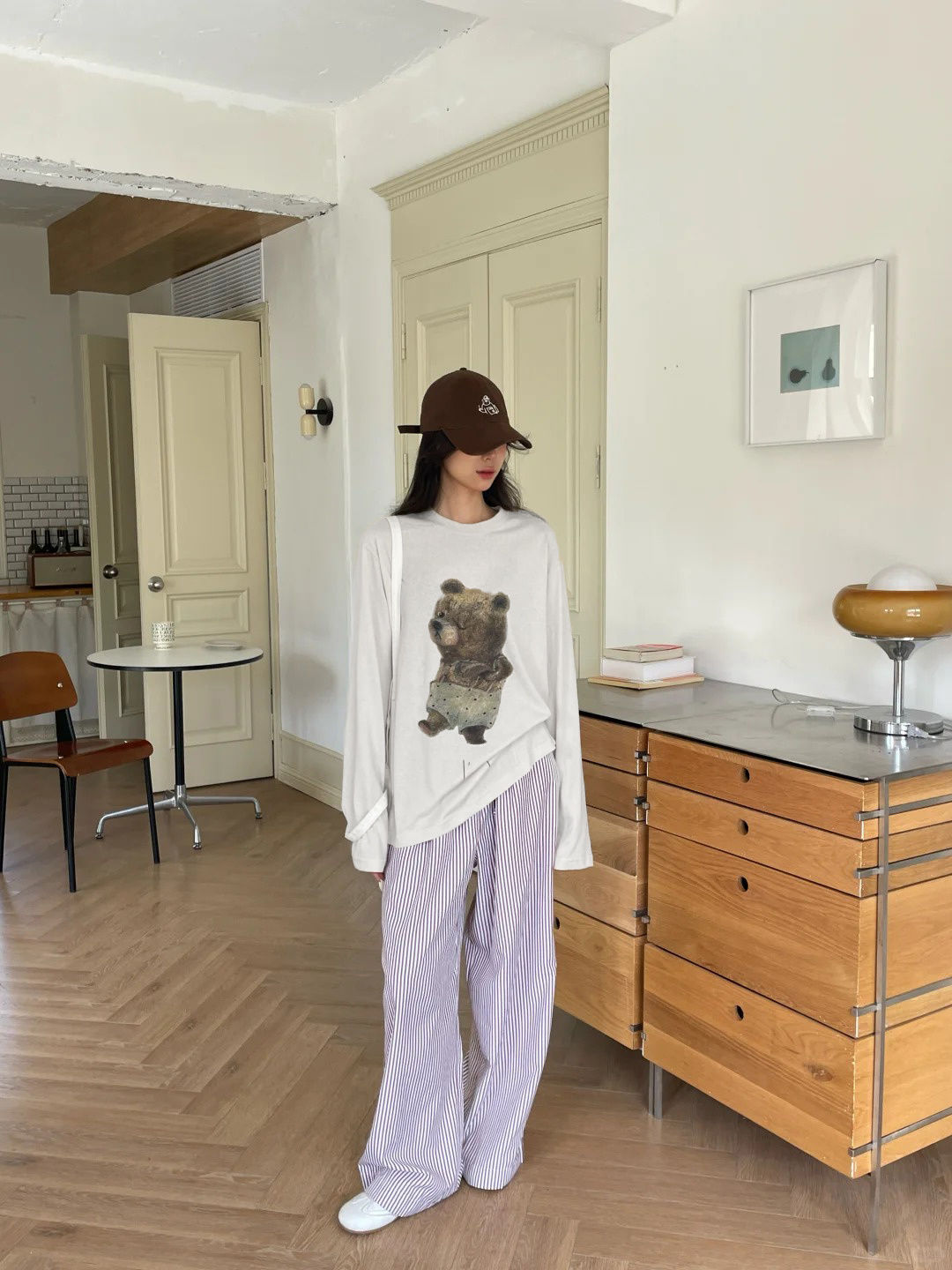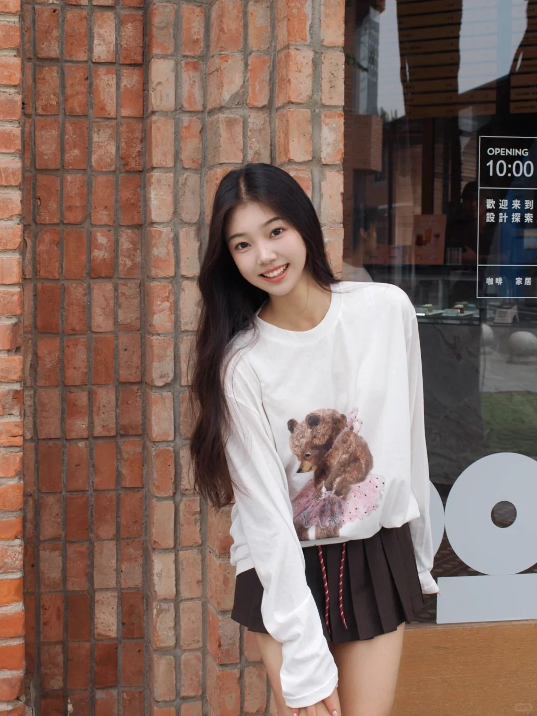 手绘小熊印花,进口数码直喷多次洗涤不易掉色