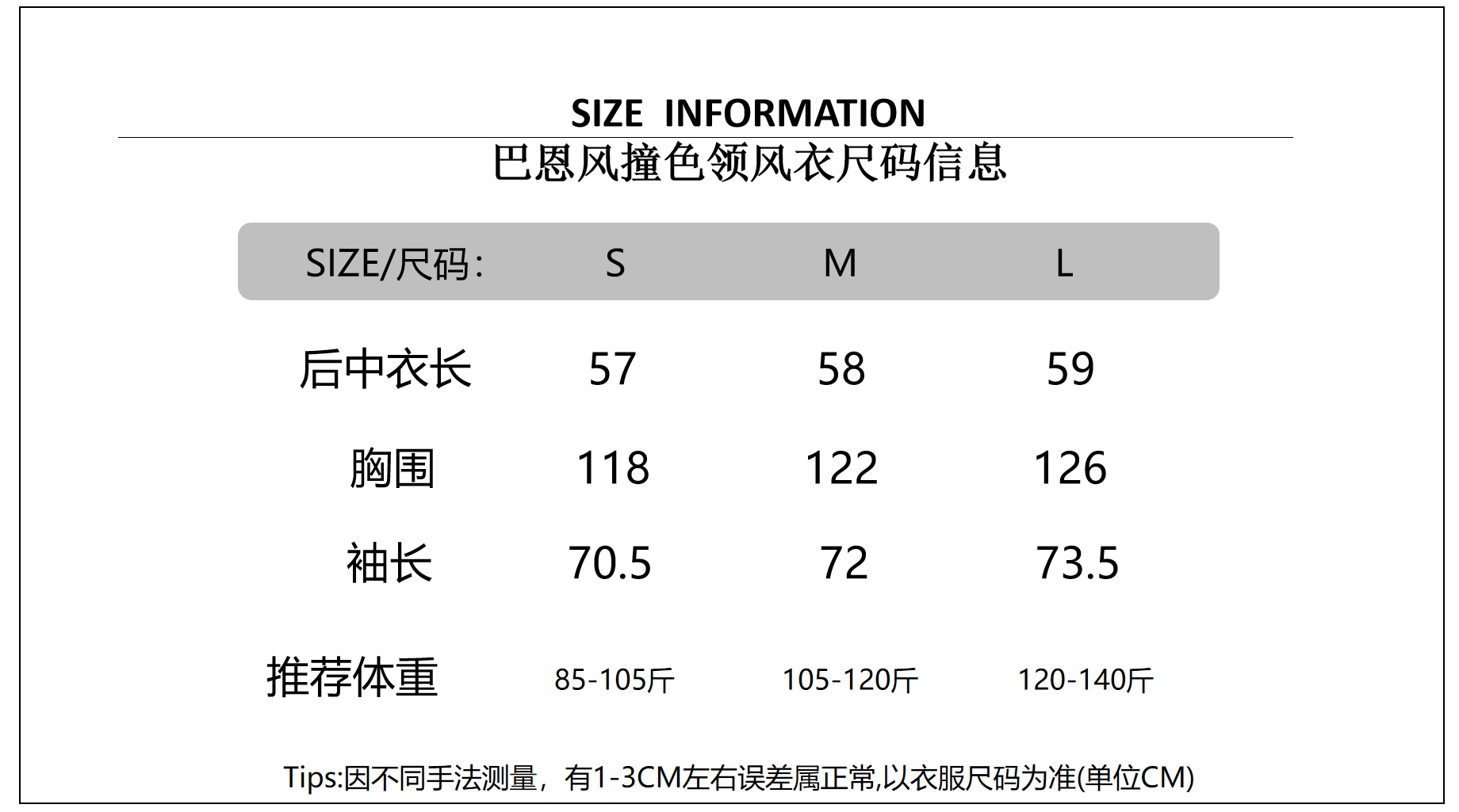 Gesamy巴恩风撞色领风衣尺码表⬇⬇⬇