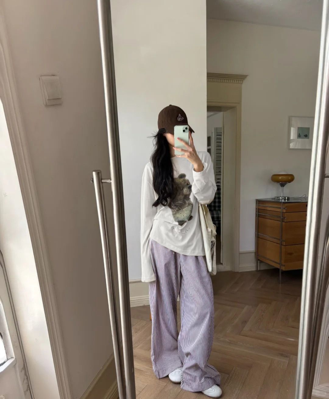 阔腿裤摆随着步伐轻轻晃动,没有紧绷感,只有自在。