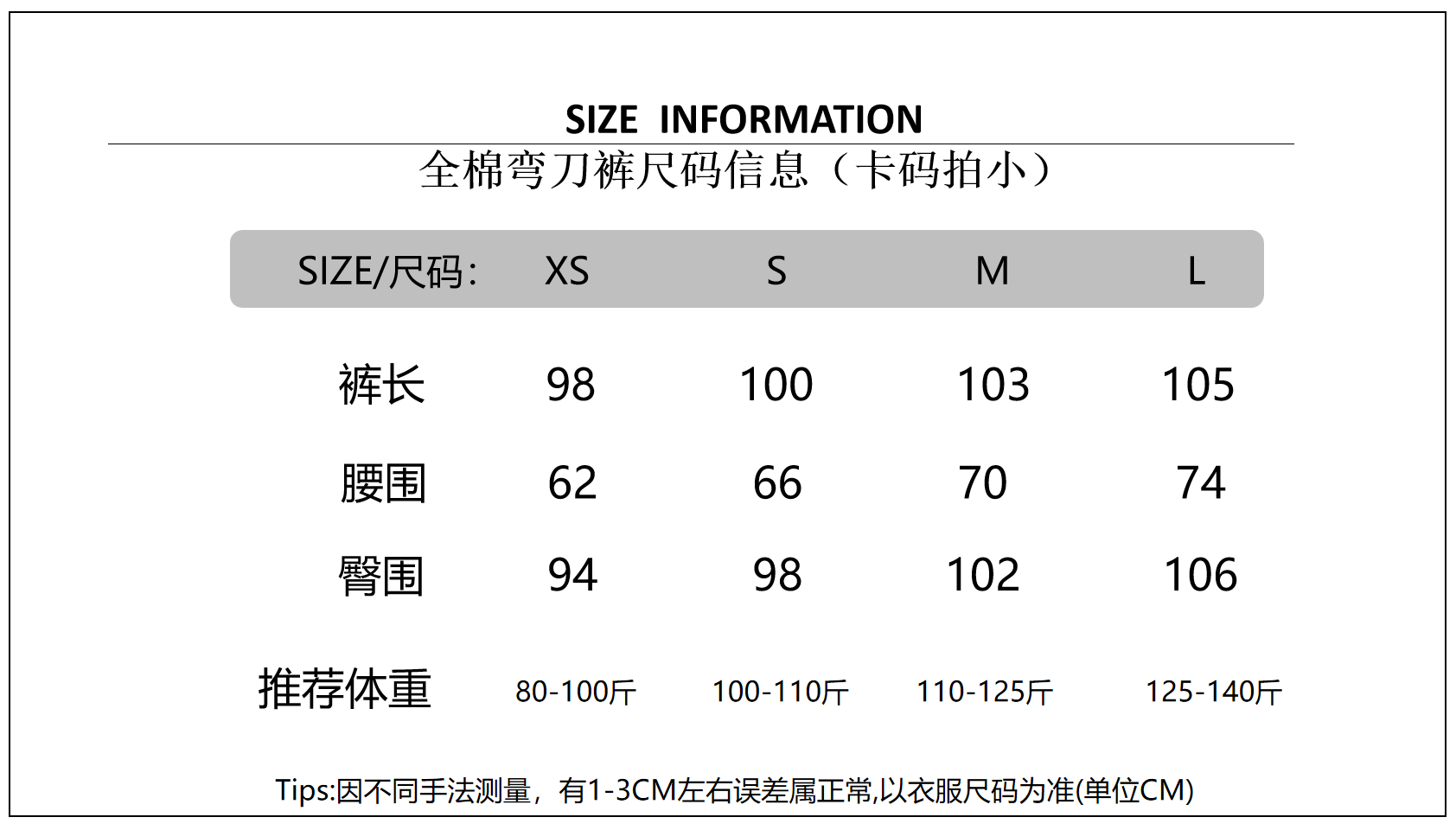 Gesamy全棉弯刀裤尺码表⬇⬇⬇