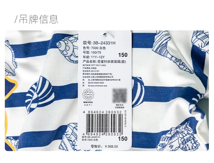 【亲子莫代尔】 SCHIESSER德国舒雅儿童男童夏日海洋系列莫代尔亲肤柔软短袖短裤套装3B/24331H