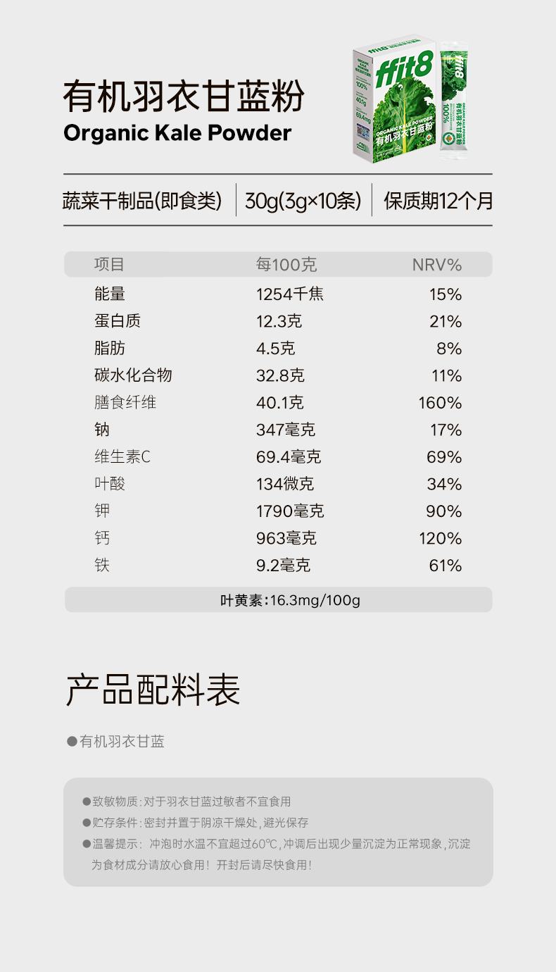 【会员专享】ffit8有机羽衣甘蓝粉30g/盒